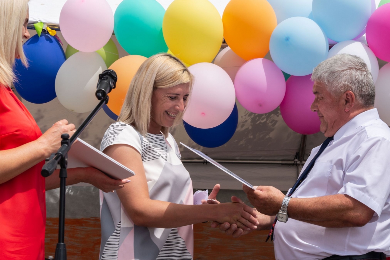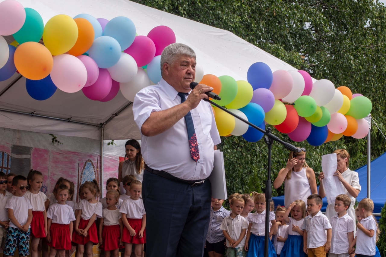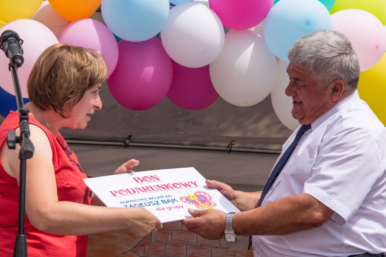 Wszystkich przybyłych jak co roku przywitała dyrektor placówki pani Katarzyna Kura wraz z Burmistrzem Wojnicza – Tadeuszem Bąkiem. Podczas oficjalnego rozpoczęcia festynu z inicjatywy Burmistrza Wojnicza przekazanych zostało pięć bonów okolicznościowych dla wszystkich oddziałów przedszkola o łącznej wartości 5 tyś. zł. Środki finansowe przeznaczone będą na doposażenie sal placówki, w której będą się uczyć i bawić jej podopieczni.