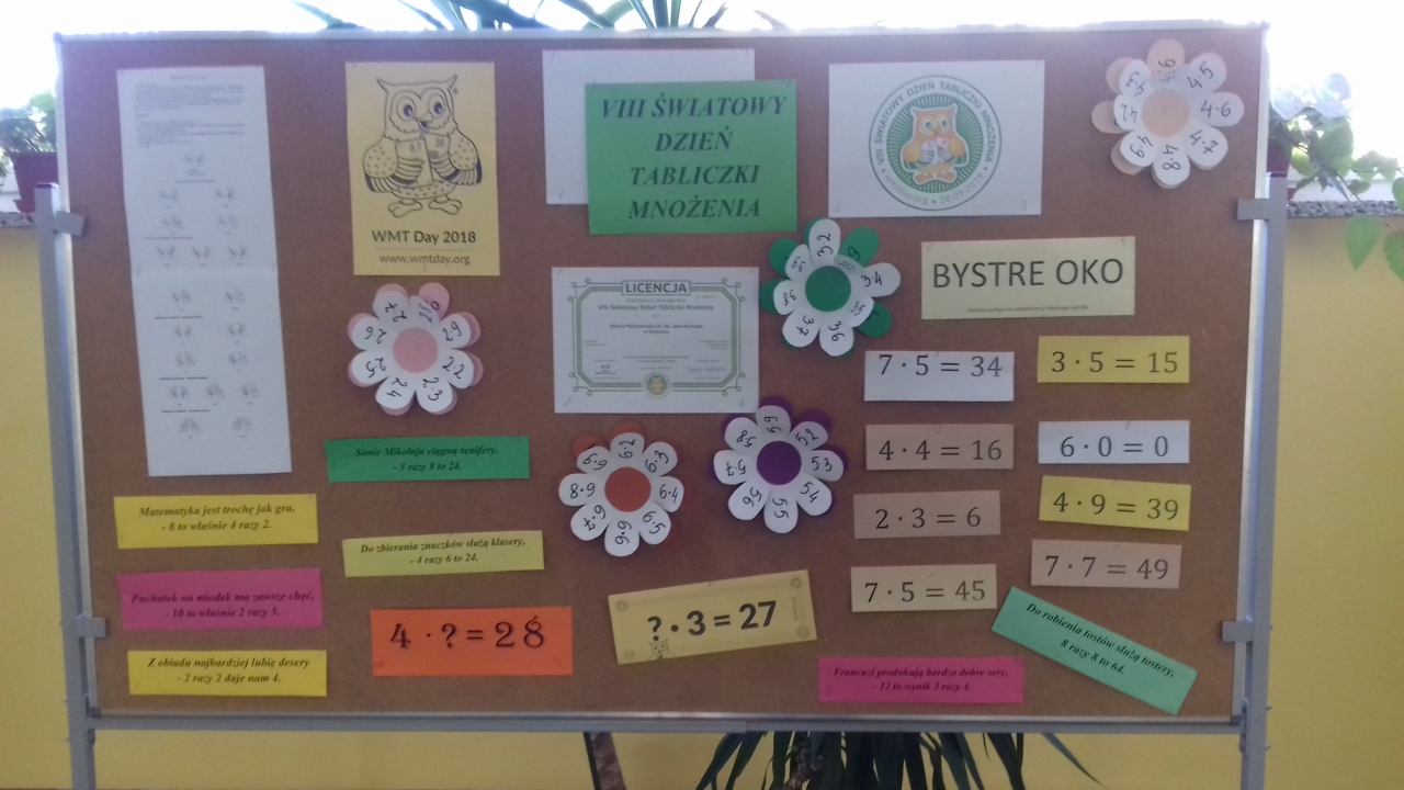 Obchody Światowego Dnia Tabliczki Mnożenia wzbudziły w uczniach pozytywne emocje i pobudziły chęć rywalizacji. Szczególnie podczas towarzyszących wydarzeniu dodatkowych konkursach i zabawach. Między innymi na zajęciach wychowania fizycznego uczniowie uczestniczyli w nietypowych, matematycznych wyścigach. Zadaniem ich uczestników było postawienie w odpowiednim miejscu kubeczka z wynikiem mnożenia lub przyczepienie kolorowej nakrętki do właściwego działania. Dużym zainteresowaniem uczniów cieszyło się też zadanie polegające na stworzeniu plakatu promującego tabliczkę mnożenia oraz konkurs „Bystre oko” sprawdzający u dzieci spostrzegawczość w wyszukiwaniu błędnych wyników mnożenia przedstawionych na tablicy.