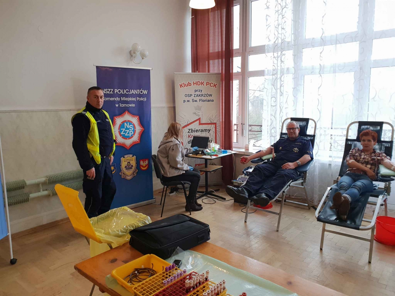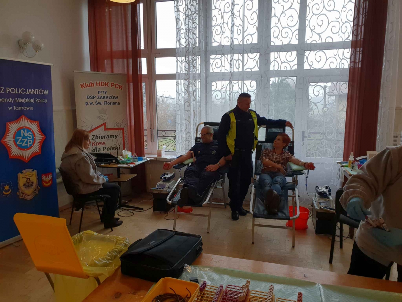 Przybyli mieszkańcy mogli spróbować wykwintnych wypieków przy pysznej kawie, przygotowanych przez strażaków z Łukanowic. Strażacy i policjanci serdecznie dziękują za frekwencję oraz członkom Klubu HDK PCK przy OSP Zakrzów za wsparcie przy współorganizowaniu akcji.