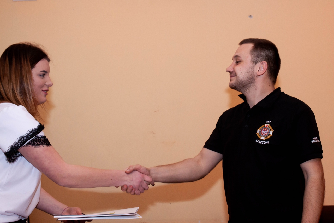 Spotkanie było formą pogratulowania za ich dotychczasową aktywność sportową. Burmistrz podziękował wszystkim zebranym za promowanie gminy, zarówno podczas zawodów, jak i za codzienną pracę na rzecz bezpieczeństwa mieszkańców naszej społeczności oraz w uznaniu ich osiągnięć wręczył dyplomy okolicznościowe oraz przekazał zestawy młodzieżowych kasków strażackich dla ich jednostek.