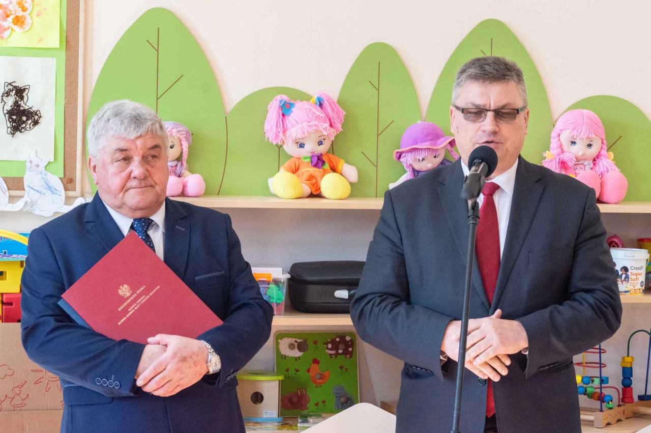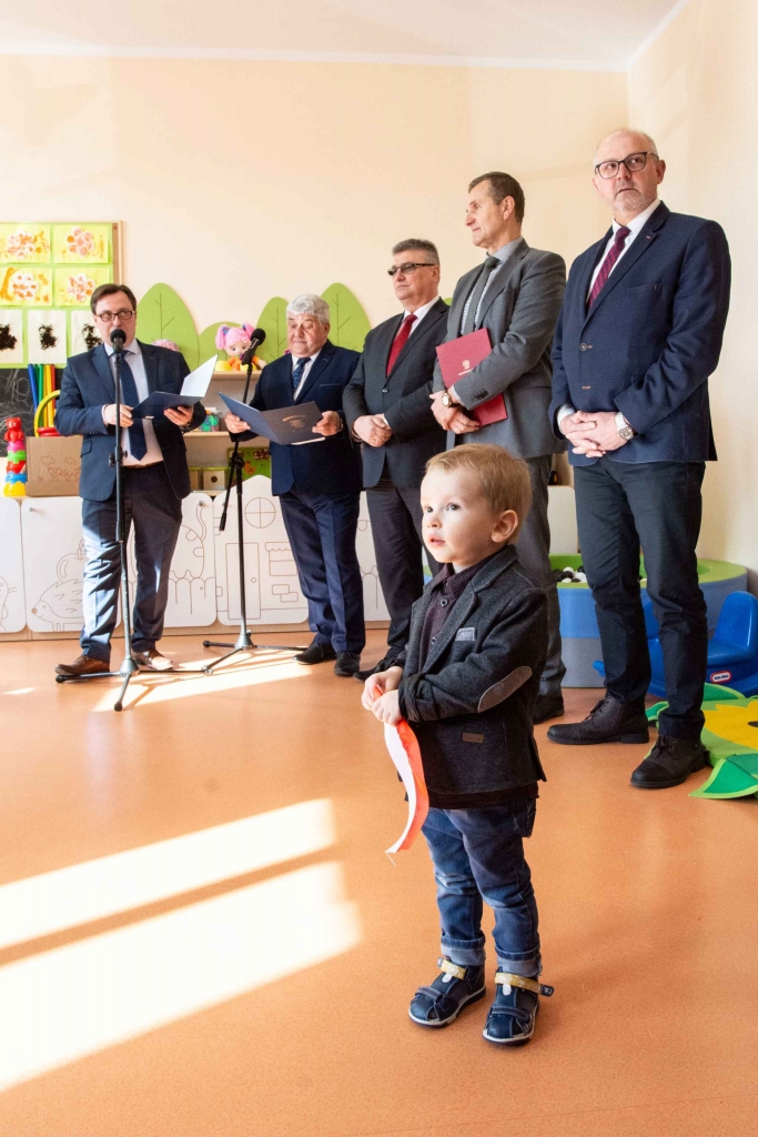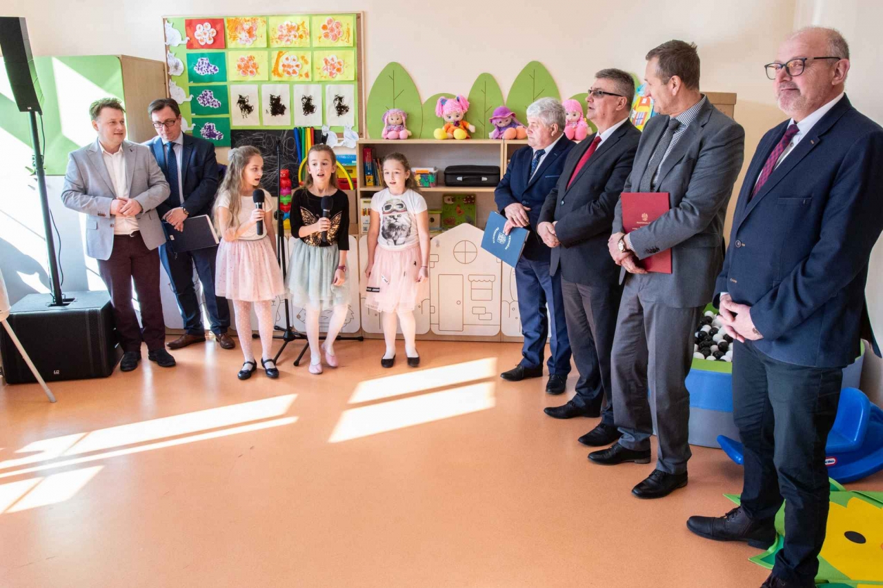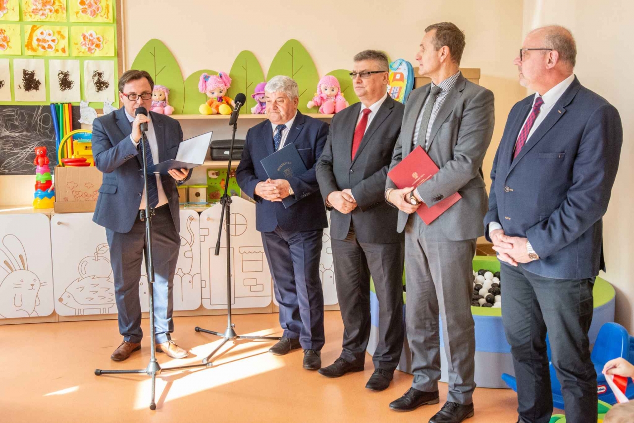 Po pokazie zaproszeni goście w okolicznościowych przemówieniach gratulowali władzom gminy tak ważnej i udanej inwestycji, a dzieciom i pracownikom życzyli radości z pobytu w nowej placówce. Odczytane zostały również listy okolicznościowe od Minister Rodziny, Pracy i Polityki Społecznej – Elżbiety Rafalskiej, Wiceminister Zdrowia – Józefy Szczurek – Żelazko oraz Marty Malec – Lech – Członka Zarządu Województwa Małopolskiego.