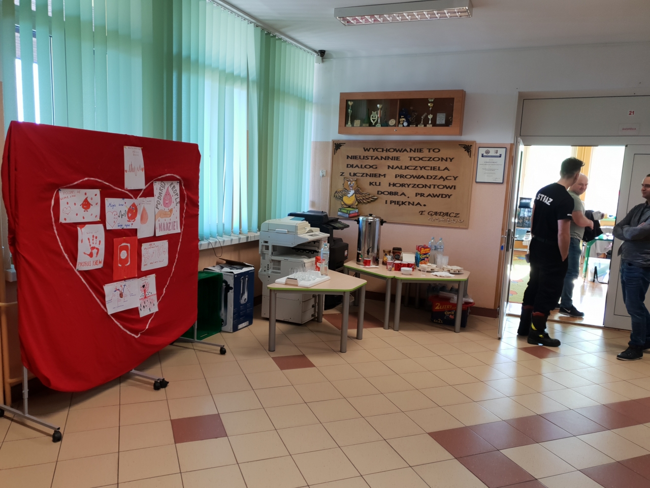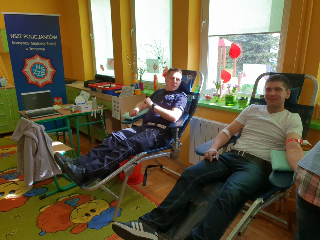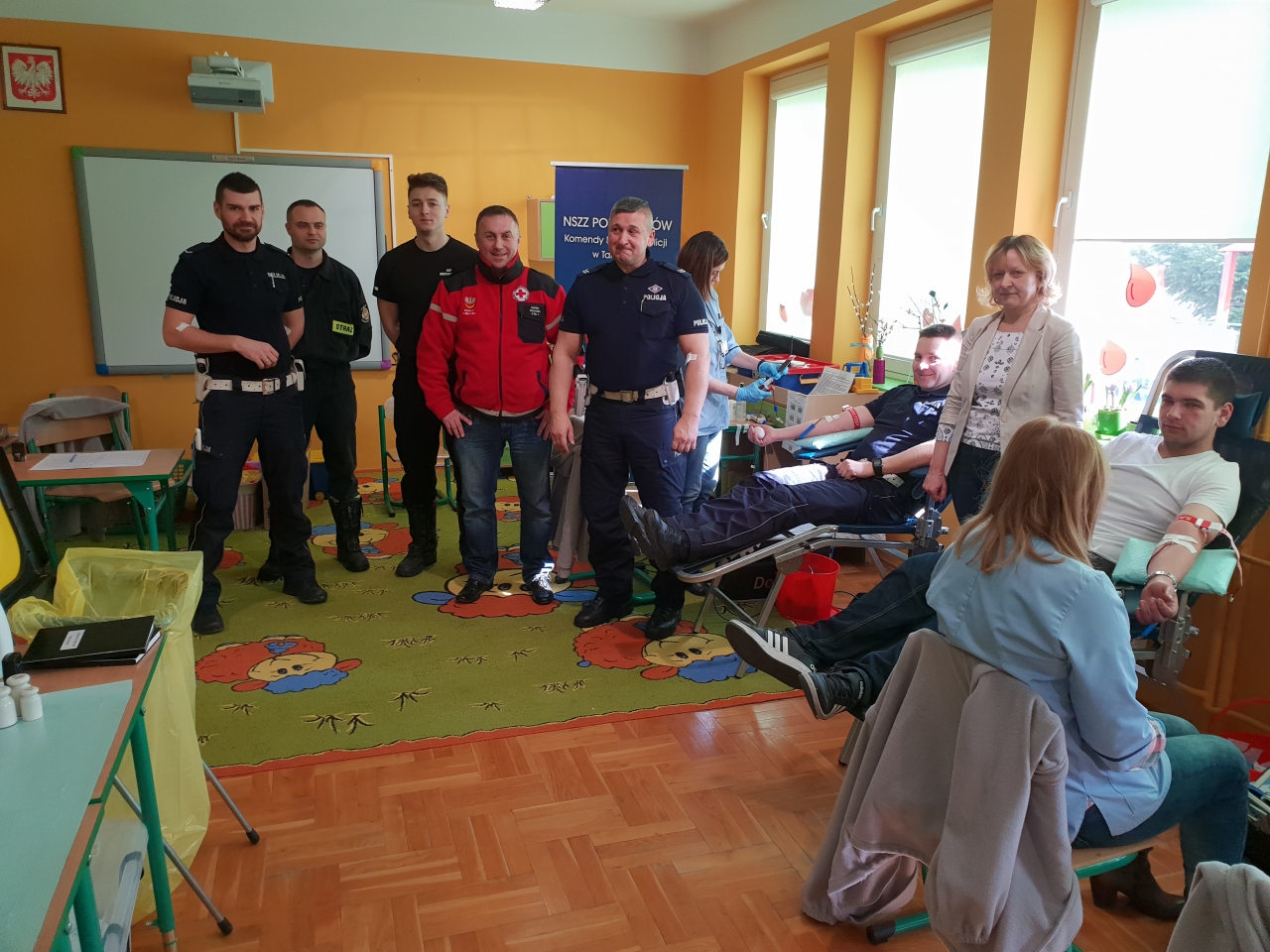 Akcję wsparli tarnowscy policjanci z Wydziału Ruchu Drogowego w Tarnowie zrzeszeni przy Zarządzie Terenowym Niezależnego Samorządnego Związku Zawodowego Policjantów KMP w Tarnowie na czele z podkom. Michałem Sudą. Dzięki niedzielnej akcji przybywający dawcy, uczestniczyli w pogadankach przeprowadzonych przez sierz. szt. Marka Bacharę. Uczestnicy otrzymywali porady na temat bezpieczeństwa w ruchu drogowym, interpretacje przepisów prawnych a także bezpiecznych zachowań na wodą i podczas różnych zagrożeń. Najmłodsi przygotowali dla honorowych krwiodawców wystawę prac na temat honorowego krwiodawstwa. Pani Dyrektor i pedagodzy oprócz pyszności i pobudzającej kawy gościli każdego życzliwością i serdecznością. Piękny przykład dał swoim parafianom ks. proboszcz, który również oddał krew. Każdy kto oddał krew, otrzymał ekwiwalent kaloryczny oraz pamiątkową koszulkę. Akcję wsparli min. druhowie z OSP Łętowic, Zakrzowa, Łukanowic, Koszyc Małych.