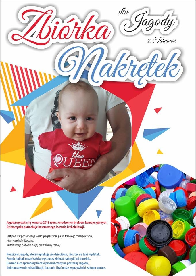 Podczas słonecznej niedzielni zbierano również zakrętki dla małej Jagódki z przeznaczeniem na rehabilitacje i zakup protez rączek. Mieszkańcy zebrali 5 worków zakrętek!