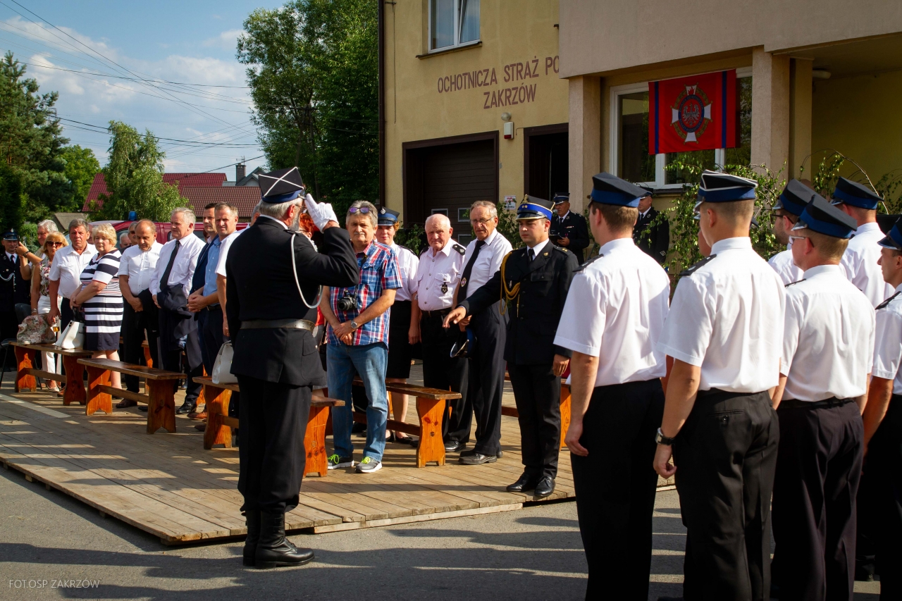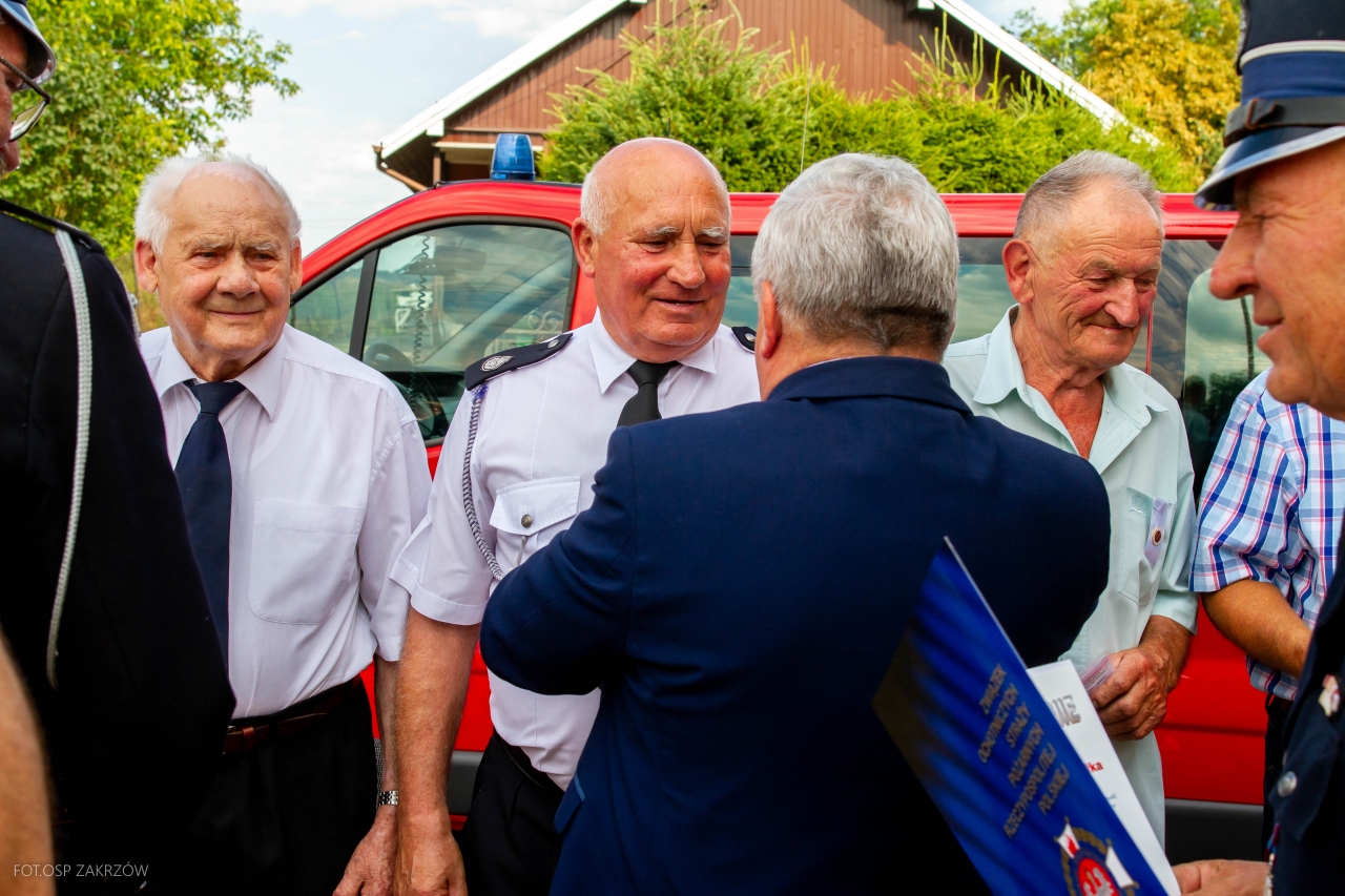 Pojazd typu bus, wspaniale spełnia swoja rolę. Ogrom zadań i działań związanych z przemieszczeniem się i dostawami logistycznymi na terenie podległym, jest w obecnych czasach integralną częścią powierzonych zadań statutowych. Bus jest i będzie wykorzystywany, nie tylko do zadań strażackich ale również będzie pomocny przy transporcie osób i sprzętu dla stowarzyszeń działających na terenie Gminy Wojnicz, Klubu HDK PCK przy OSP Zakrzów, Klubu Seniora, szkoleń, zawodów a także wyjazdów technicznych oraz integracyjno-edukacyjnych. Dzięki mieszkańcom, instytucjom, przedsiębiorstwom, osobom prywatnym i sponsorom, którzy od wielu lat wspomagają OSP Zakrzów a przede wszystkim dzięki wspaniałej współpracy z Komendą Miejską PSP w Tarnowie, pojazd ten przez wiele lat będzie służył dla dobra społeczności lokalnej podkreślił mł.kpt. Bartosz Wożniak. Na uwagę zasługuje fakt, iż nowy pojazd posiada zmodernizowany, dostosowany do potrzeb, specjalnie odnowiony garaż, który powstał w czynie społecznym dzięki zaangażowaniu zakrzowskich druhów. Sobotnia uroczystość to niebywała okazja aby również poświęcić zaadaptowany i zmodernizowany budynek dawnego sklepu pod prężną działalność OSP KSRG Zakrzów. Poświęcenia dokonał ks. Marcin Kołek. Ów dzień był okazją do spotkania strażaków, samorządowców, przedstawicieli firm. Wśród zaproszonych gości byli m.in. Przewodniczący Rady Miejskiej w Wojniczu, Radni i Sołtysi z Gminy Wojnicz. Podczas przemówień wiele ciepłych słów uznania padło w kierunku druhów z Zakrzowa zarówno od Pana Burmistrza Tadeusza Bąka jak i Przewodniczącego Rady Powiatu Tarnowskiego Pawła Smolenia. Pan Burmistrz przygotował niespodziankę i przekazał promesę na doposażenie nowo pozyskanego pojazdu. Każdy, kto swoim wkładem i zaangażowaniem sprzyjał nowym zakrzowskim inwestycjom, został uhonorowany oryginalną, niecodzienną statuetką wozu strażackiego. Podczas uroczystości, był moment gdzie można było podziękować druhom seniorom za ich wieloletni wkład pracy i czynów społecznych poświęcony rozwojowi jednostki. Odznaczeniem za długoletnią wysługę lat i tradycyjne podziękowania przyjęli zasłużeni druhowie: Kazimierz Szczupak, Władysław Michałek, Józef Kubowicz, Bolesław Lasko, Stanisław Dulian, Józef Szczupak. Ważnym elementem jest współpraca OSP KSRG Zakrzów z Komendą Miejską Policji w Tarnowie. Zwieńczeniem i podziękowaniem za owocną współdziałanie, szereg wspólnych inicjatyw i zaangażowanie policjantów na rzecz zakrzowskiej jednostki podkom. Michał Suda, Naczelnik Wydziału Administracyjno-Gospodarczego KMP w Tarnowie został uhonorowany odznaczeniem Brązowym Medalem za Zasługi dla Pożarnictwa. Zaprezentowane były występy artystyczne Patrycja Sosin, Kamila Sosin z partnerami Przemysławem Sudą i Oskarem Antkiewiczem ze stowarzyszenia Tanecznego Klasa Tarnów, Zespół „Swojacy” zaprezentował wspaniały występ okraszony gromkimi brawami, dla najmłodszych zorganizowany były gry, konkursy i zabawy prowadzone przez znakomitych animatorów, do dyspozycji dzieci otwarty był plac zabaw cieszący się ogromna popularnością na co dzień. Wzorowe zabezpieczenie logistyczne zapewnił Gminny Ośrodek Kultury w Wojniczu. Nad bezpieczeństwem czuwała profesjonalna ochrona oraz policjanci w ramach zadań doraźnych. Do tańca i świetnej zabawy do wczesnych godzin porannych dnia następnego przygrywał Zespół „SWING”.