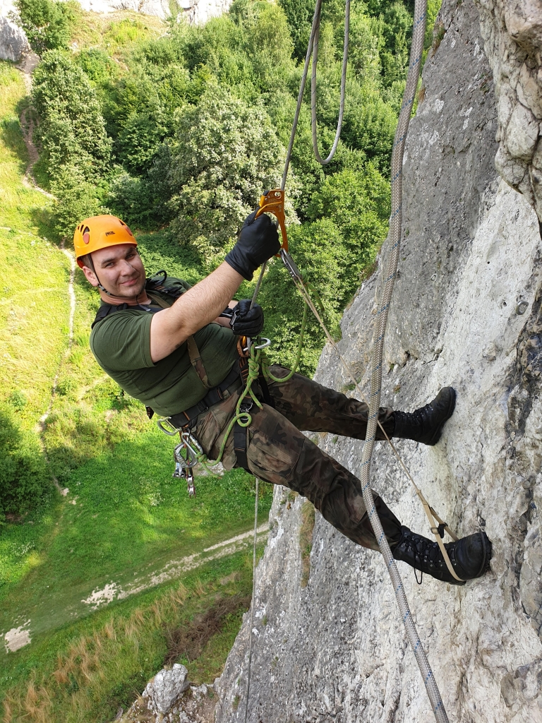 Tak też jest w przypadku szkolenia wspinaczkowego, które prowadzi m.in. szer. OT Jakub Ochnio, prywatnie właściciel firmy wysokościowej Sky Access Team. „Spora część mojego życia jest związana z linami. W firmie zajmuję się m.in. szkoleniem pracowników wysokościowych, ratowników i służb mundurowych, w 11 MBOT szkolę swoich kolegów i koleżanki. W ten oto sposób pogodziłem dwa swoje żywioły: góry i wojsko, chociaż dla mojej Brygady poświęcam teraz więcej czasu bo dodatkowe przedsięwzięcia szkoleniowe celem podnoszenia umiejętności planowane są w dni powszednie”.
