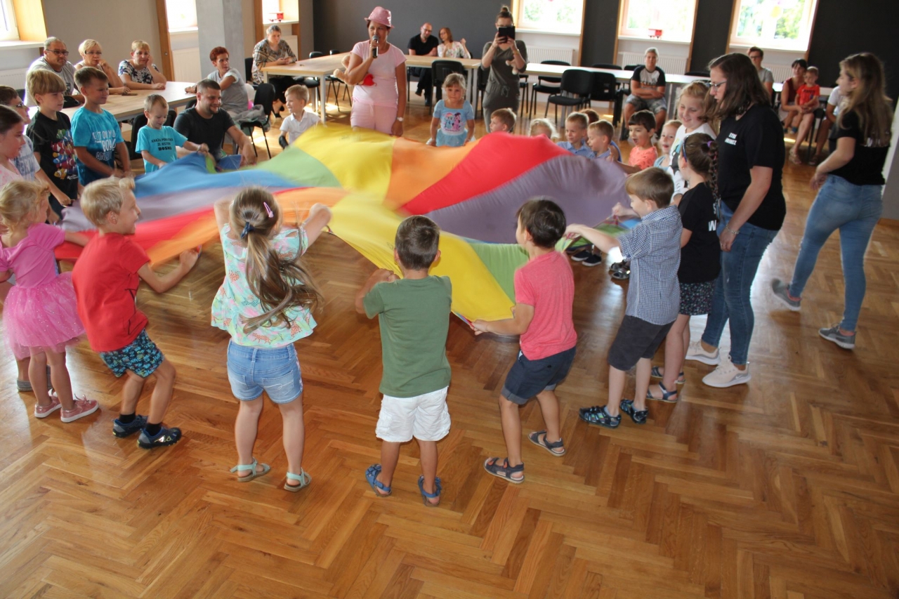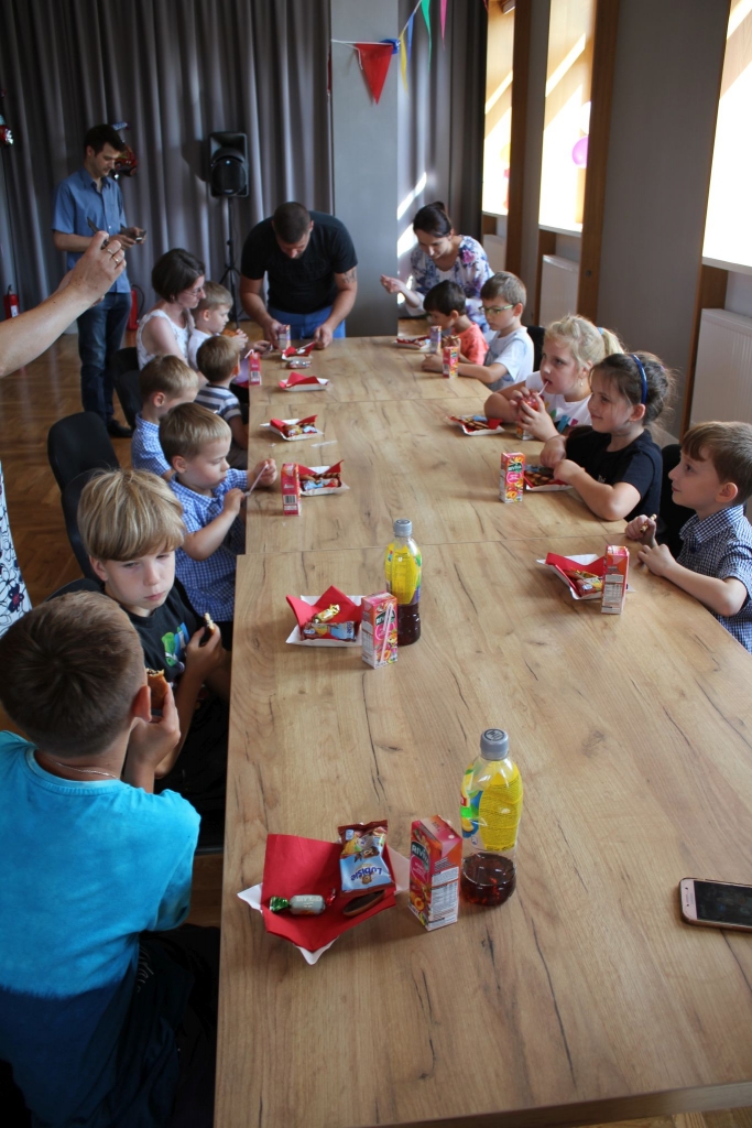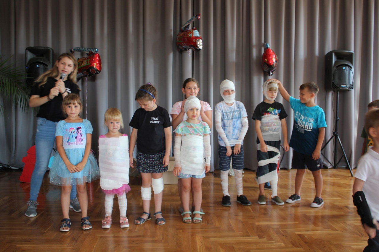 Na przybyłych gości czekały zabawy taneczne, zabawy z chustą animacyjną i różne konkursy o tematyce strażackiej. W przerwie dzieci otrzymały słodki poczęstunek, a na zakończenie każdy z uczestników odebrał dyplom Małego Strażaka i skromny upominek. Po dwugodzinnej zabawie tanecznej dzieci zostały zaproszone przed budynek Domu Grodzkiego, gdzie czekały kolejne niespodzianki – pokaz baniek mydlanych, darmowa wata cukrowa, a przede wszystkim możliwość przejażdżki samochodem strażackim.
