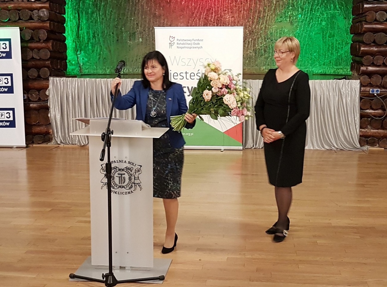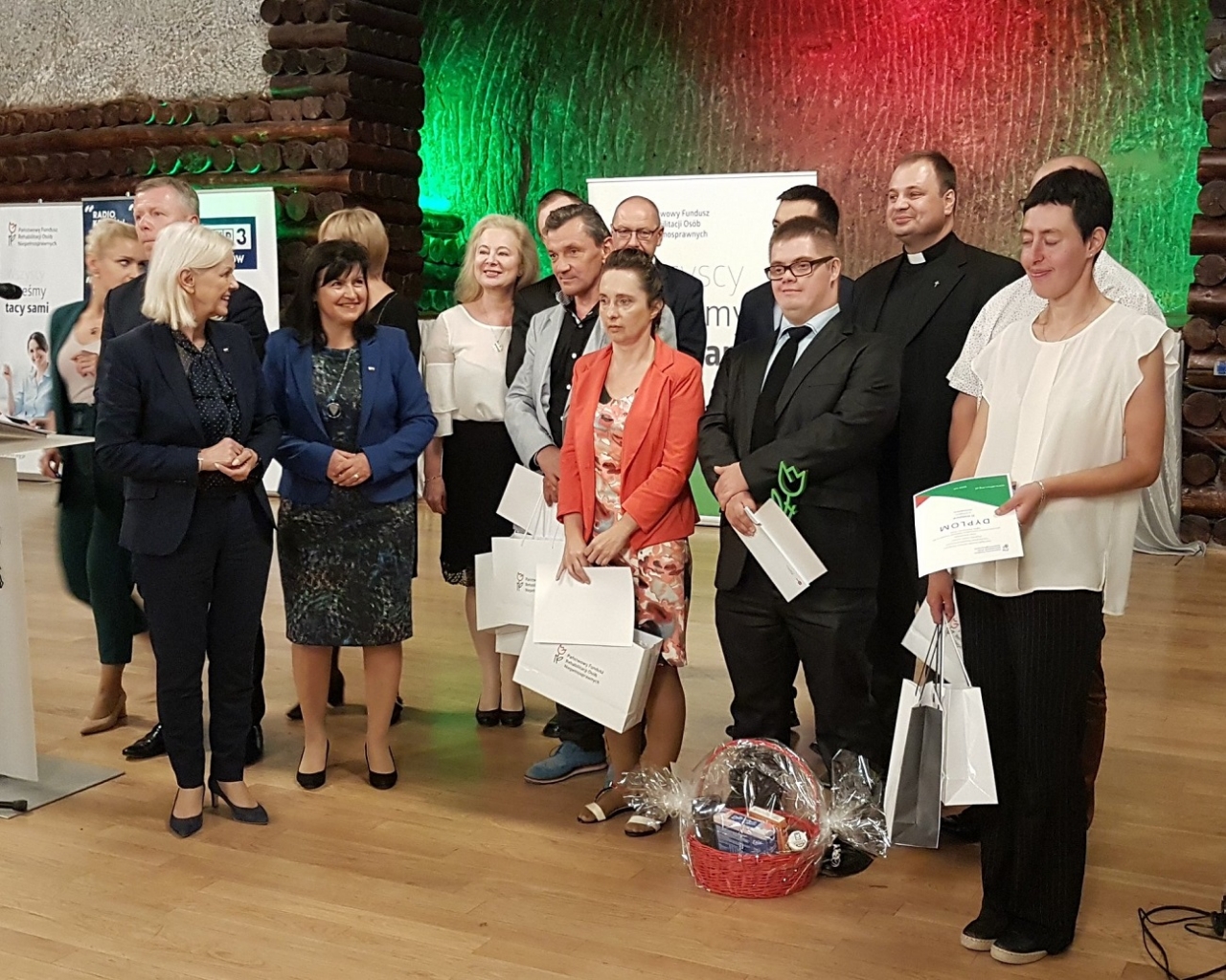 9 września br. w Kopalni Soli „Wieliczka” Laureaci wojewódzkiego etapu XVII edycji ogólnopolskiego konkursu plastycznego PFRON „Sztuka Osób Niepełnosprawnych” odebrali nagrody z rąk Bożeny Borys –Szopy – Minister Rodziny, Pracy i Polityki Społecznej, Urszuli Ruseckiej – Poseł na Sejm, Przewodniczącej Komisji Polityki Społecznej i Rodziny, Piotra Ćwika – Wojewody Małopolskiego oraz Marty Mordarskiej – Dyrektor Małopolskiego Oddziału PFRON. Wyróżnienia oraz nagrody specjalne przyznali Ksiądz Jacek Kurzydło – Dyrektor Muzeum Archidiecezjalnego, Ksiądz Piotr Adamczyk – Dyrektor Radia RDN, Katarzyna Lubas – Dyrektor Muzeum Dobranocek w Rzeszowie oraz reżyser Monika Meleń – członek komisji konkursowej.