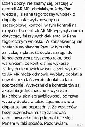 Nadawca tych nieprawdziwych wiadomości podszywa się pod pracownika ARiMR. Agencja zaleca, by nie odpowiadać na tego typu wiadomości (nie oddzwaniać na numer, z którego wysyłane są wiadomości) i nie podejmować żadnych czynności opisanych w SMS-ach. Apelujemy o nieodpowiadanie na takie wiadomości.