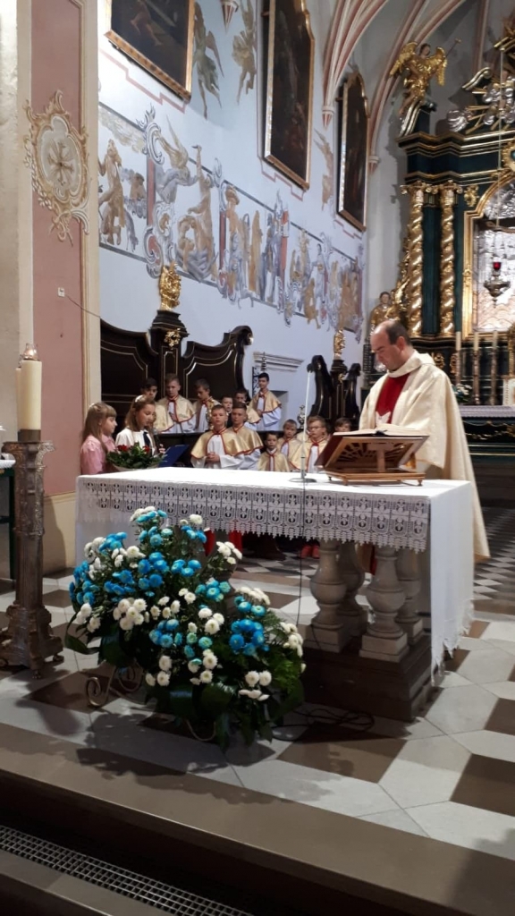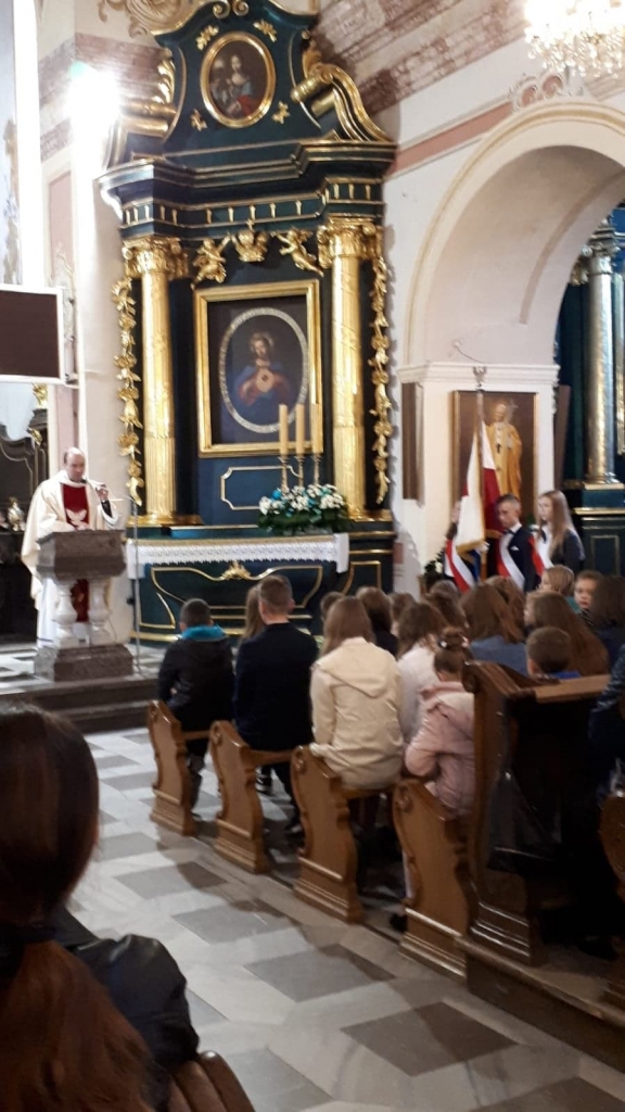 21 października jak co roku Szkoła Podstawowa w Wojniczu zgromadziła się w Kolegiacie by w czasie uroczystej Mszy Świętej uczcić wspomnienie swojego patrona, oddać Mu pod opiekę tych, którym patronuje a może i szepnąć słówko w sprawie kolejnej klasówki? Wszak i po to ma się patrona…