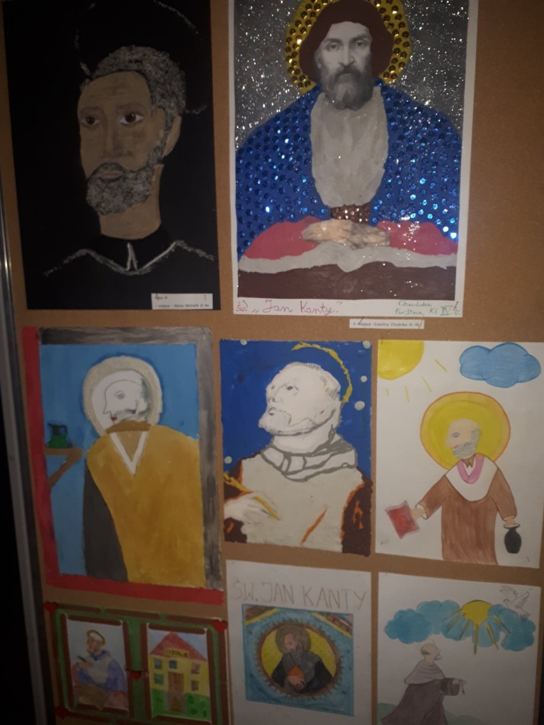 Ale obchody święta szkoły to nie tylko ten jeden dzień. Już od początku października z okien szkoły da się słyszeć jak poszczególne klasy ćwiczą szkolny hymn… a prym jak zwykle wiodą pierwszaki. Godziny wychowawcze i katechezy poświęcone patronowi szkoły to również nieodłączny element świętowania po to by lepiej i więcej nauczyć się czerpać ze wzoru jakim powinien być dla nas Święty Jan z Kęt.