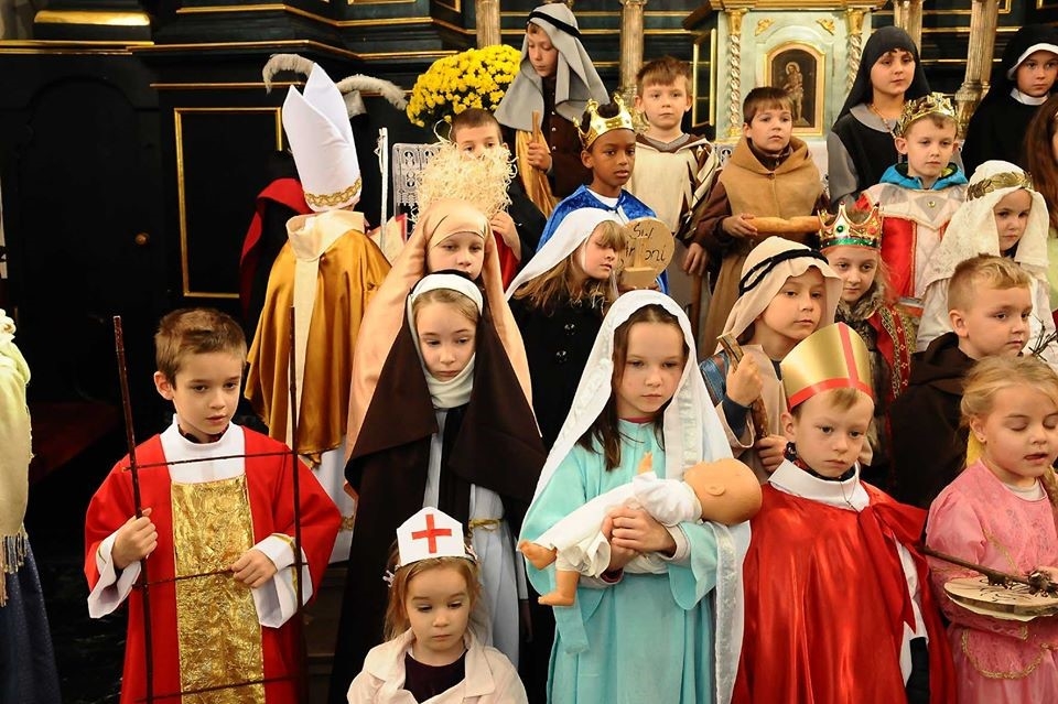 Na czele pochodu wybrane dzieci niosły relikwie św. Kingi, bł. Karoliny, św. O. Pio oraz św. Jana Pawła II. Po dojściu do kościoła dzieci wraz z rodzicami uczestniczyły we Mszy świętej. Tam, podczas kazania, niektórzy uczestnicy mieli okazję zaprezentowania postaci świętego, którego wybrali.