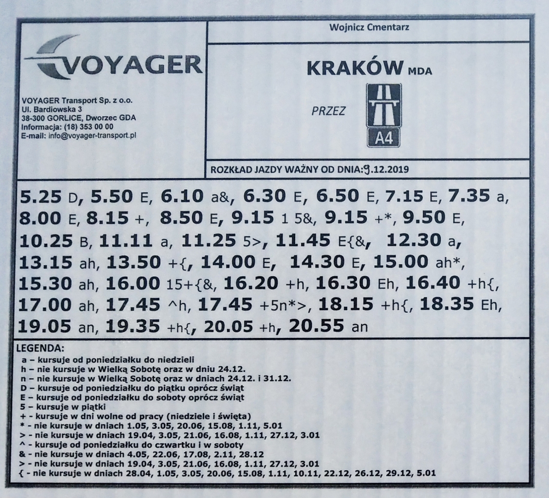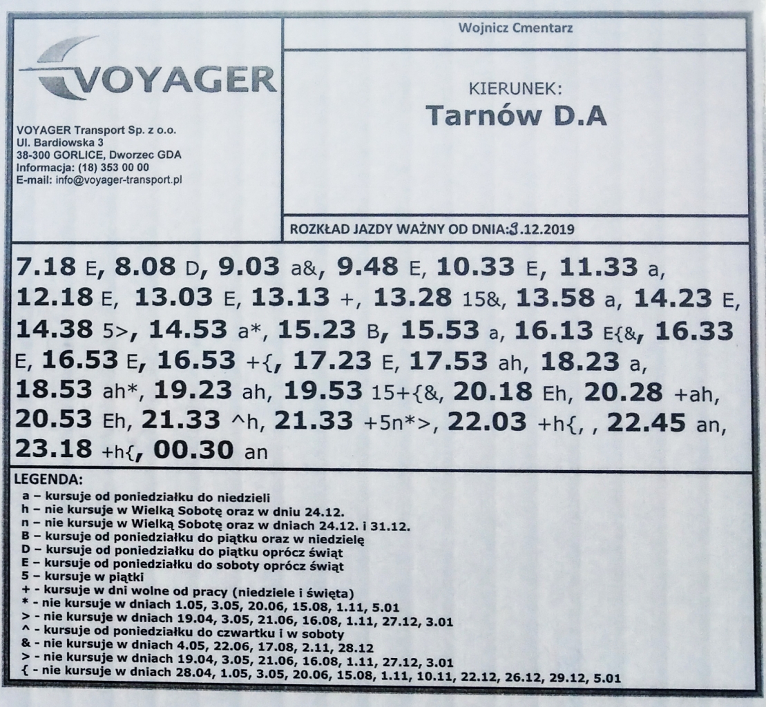 Na rozkładzie jazdy autobusów Voyager na liniach przez i do Tarnowa dołożone zostały nowe przystanki w stronę Krakowa: Tarnów, ul. Krakowska Czerwona i Wojnicz Cmentarz oraz w stronę Tarnowa: Wojnicz Cmentarz i Tarnów, ul. Krakowska Koszycka.