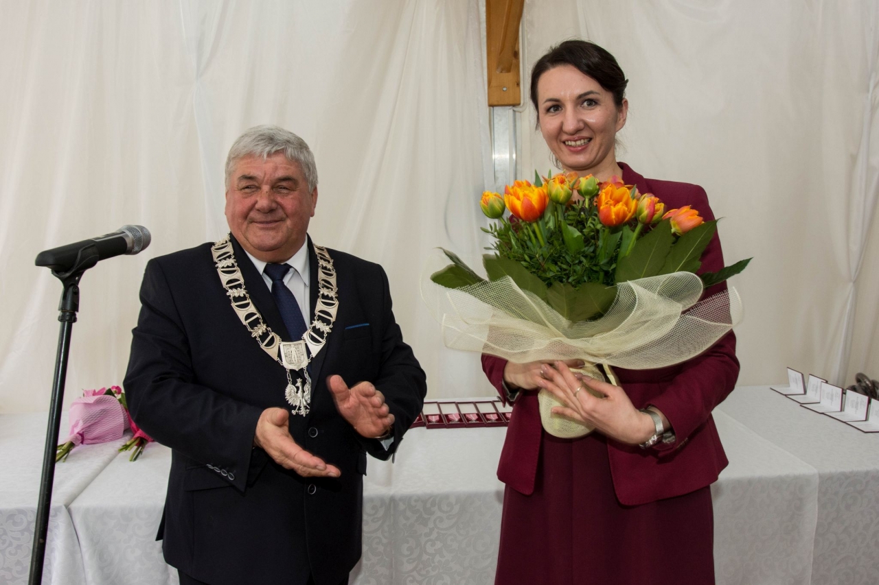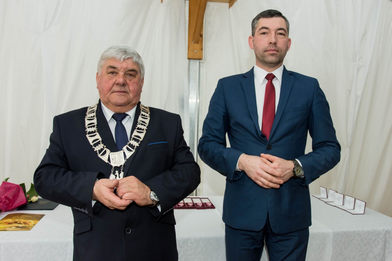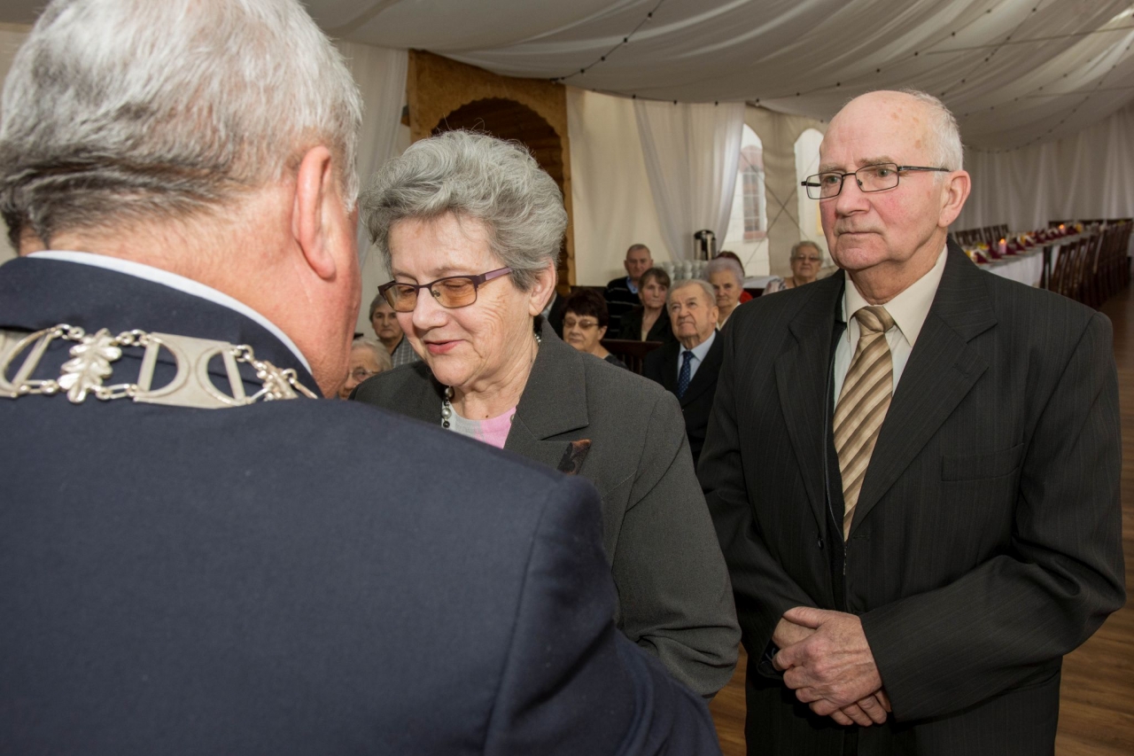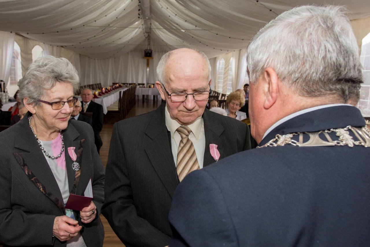 Po swoim wystąpieniu wspólnie z zastępcą Leszkiem Ząbkowskim dokonali aktu dekoracji medalami nadanymi przez Prezydenta Rzeczypospolitej Polskiej dla osób, które przeżyły 50 lat w jednym związku małżeńskim, w dowód społecznego uznania dla trwałości małżeństwa i rodziny. Medal otrzymało 29 par małżeńskich. Następnie wspólnie z Panią Joanną Zając Skarbnik Gminy oraz Panią Agnieszka Dąbroś Sekretarz Gminy wręczyli wszystkim Jubilatom listy gratulacyjne i piękne bukiety kwiatów.