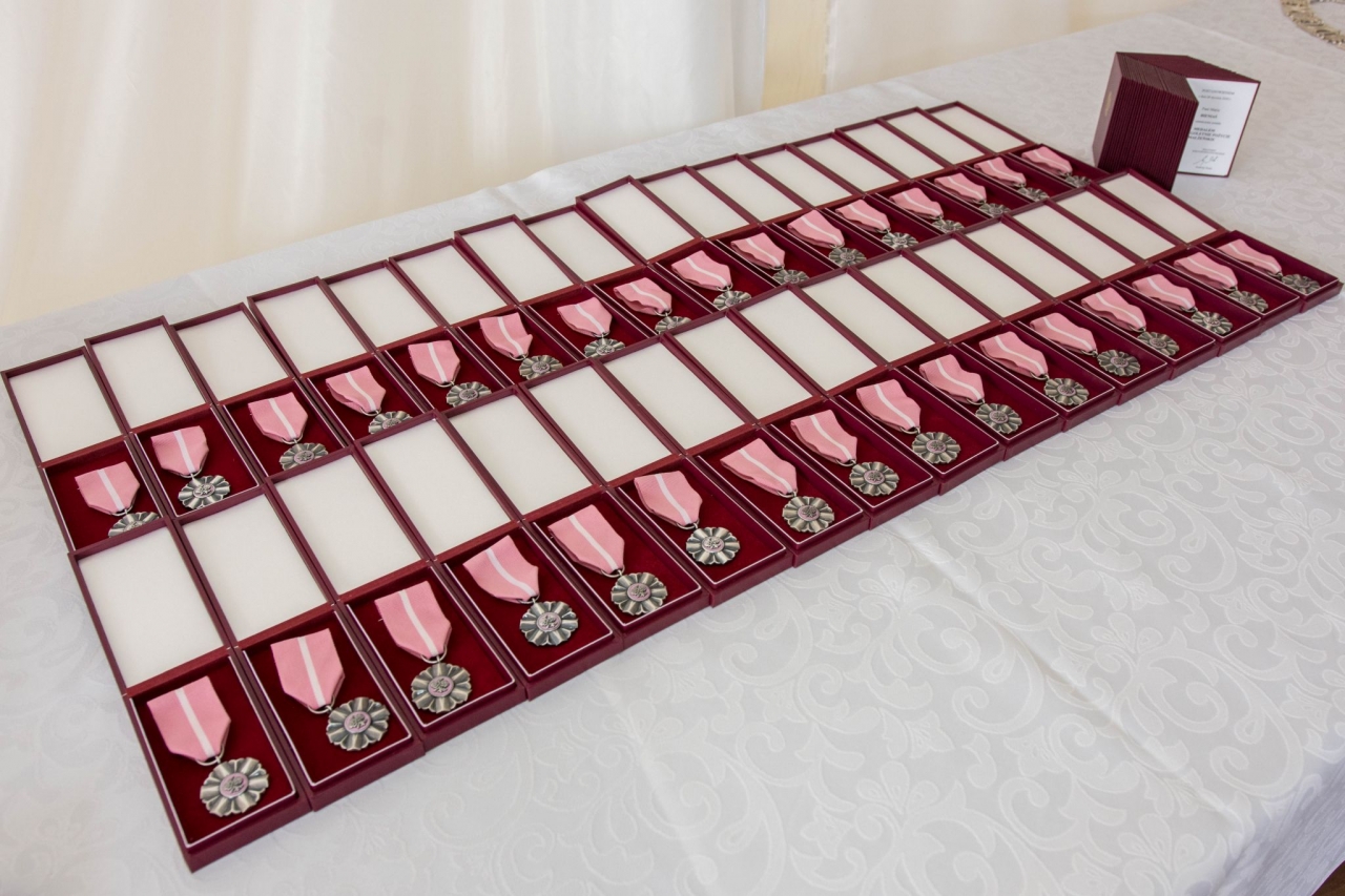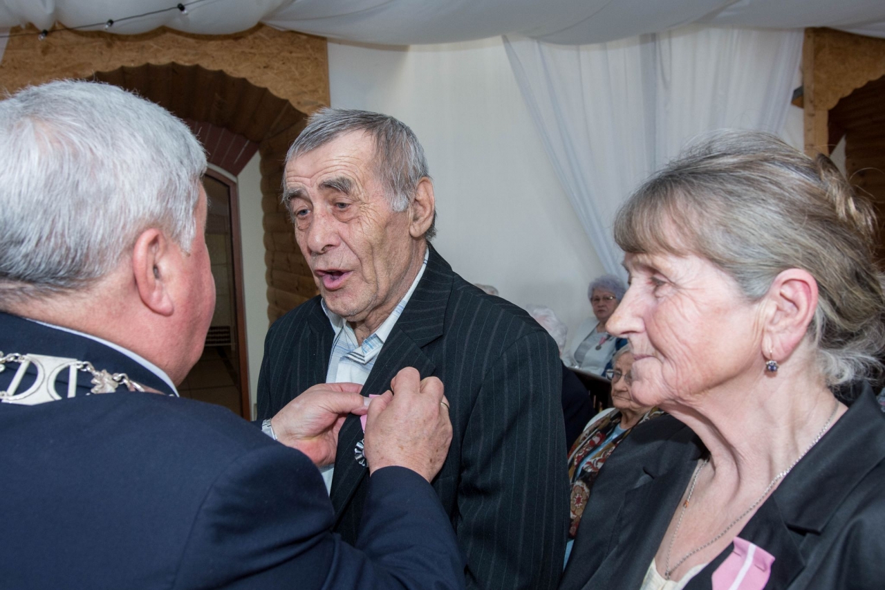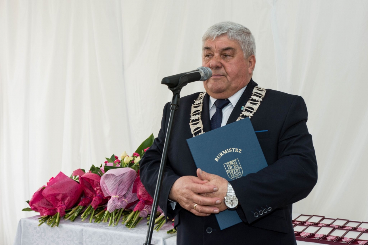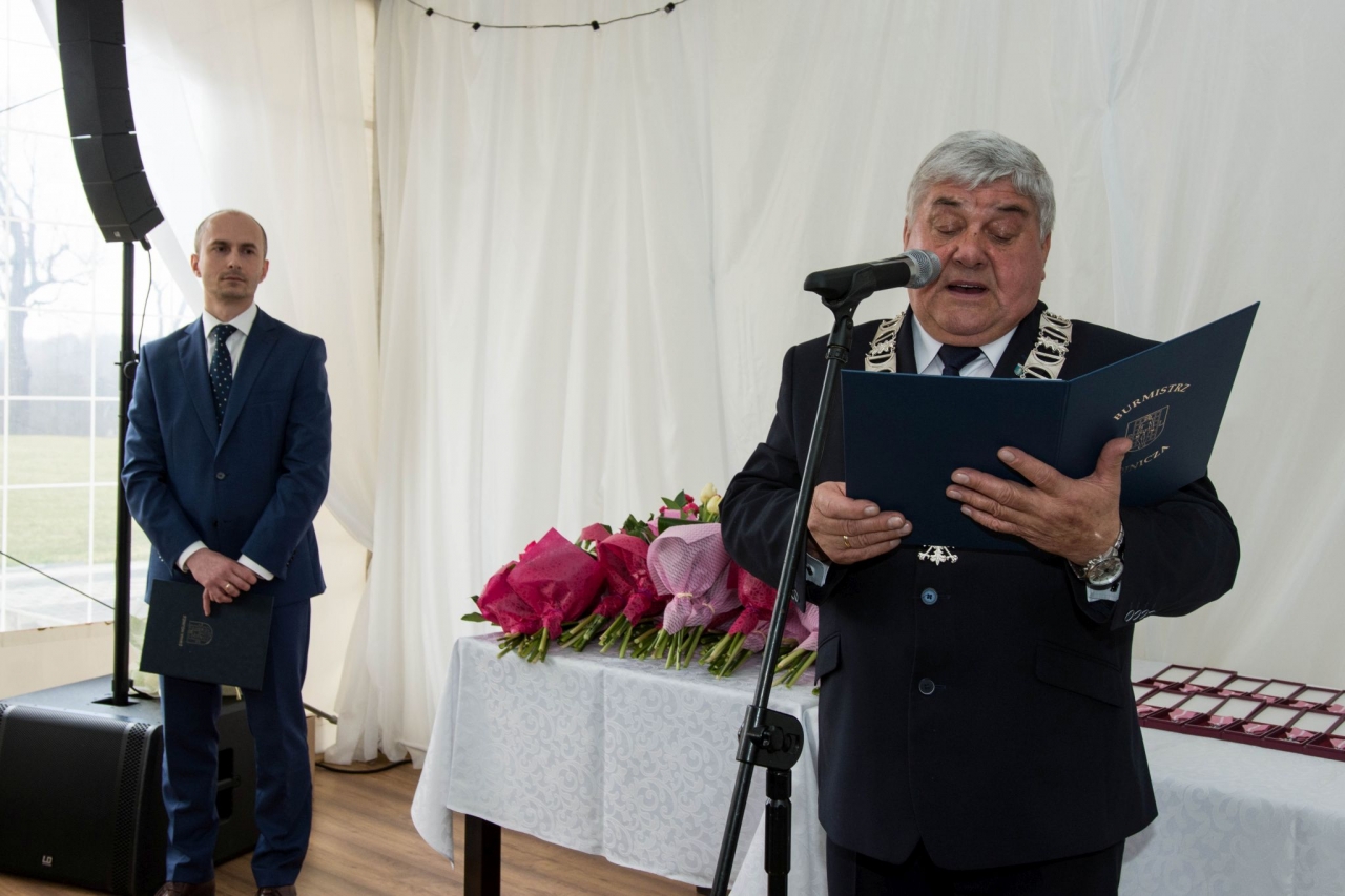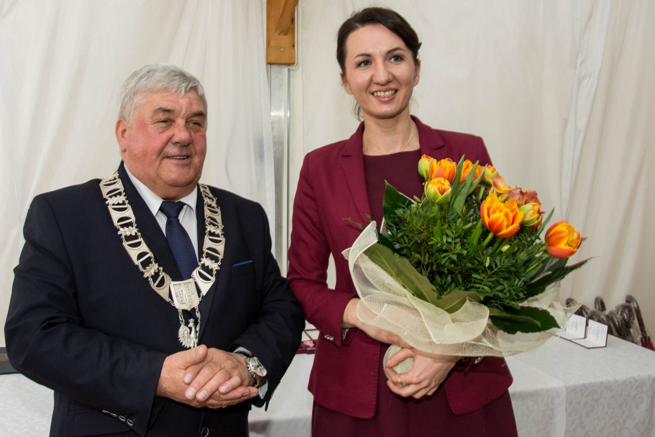 Po swoim wystąpieniu wspólnie z zastępcą Leszkiem Ząbkowskim dokonali aktu dekoracji medalami nadanymi przez Prezydenta Rzeczypospolitej Polskiej dla osób, które przeżyły 50 lat w jednym związku małżeńskim, w dowód społecznego uznania dla trwałości małżeństwa i rodziny. Medal otrzymało 29 par małżeńskich. Następnie wspólnie z Panią Joanną Zając Skarbnik Gminy oraz Panią Agnieszka Dąbroś Sekretarz Gminy wręczyli wszystkim Jubilatom listy gratulacyjne i piękne bukiety kwiatów.