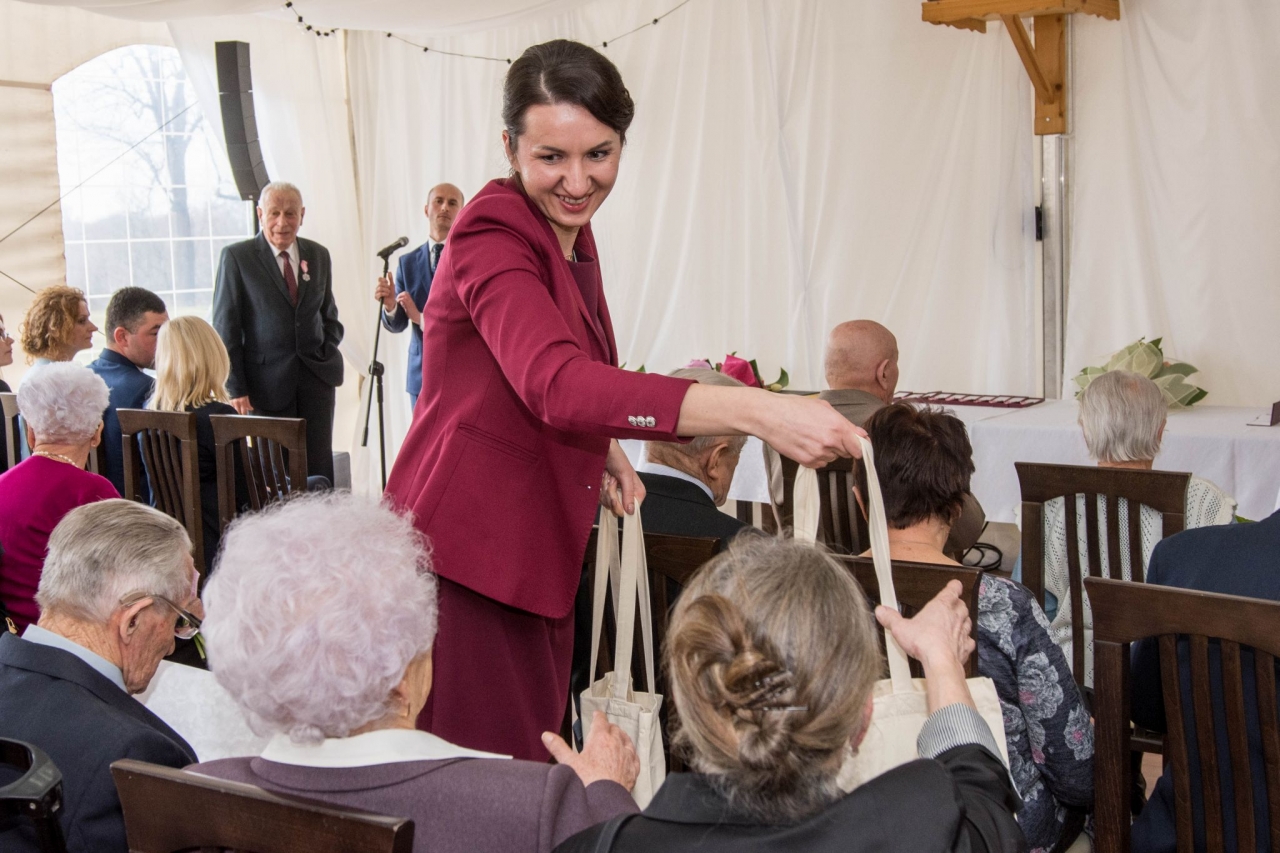 – 50, 60, a nawet 65 lat wspólnego życia – to bez wątpienia ogromne szczęście i radość dla Państwa. Dziś bardziej niż kiedykolwiek o wartości rodzinne należy dbać i je pielęgnować, a Państwo dają nam niesamowity przykład i są wzorem do naśladowania. Życzę Państwu kolejnych, wspólnych lat w zdrowiu i miłości – mówiła Marta Malec-Lech z ZWM.