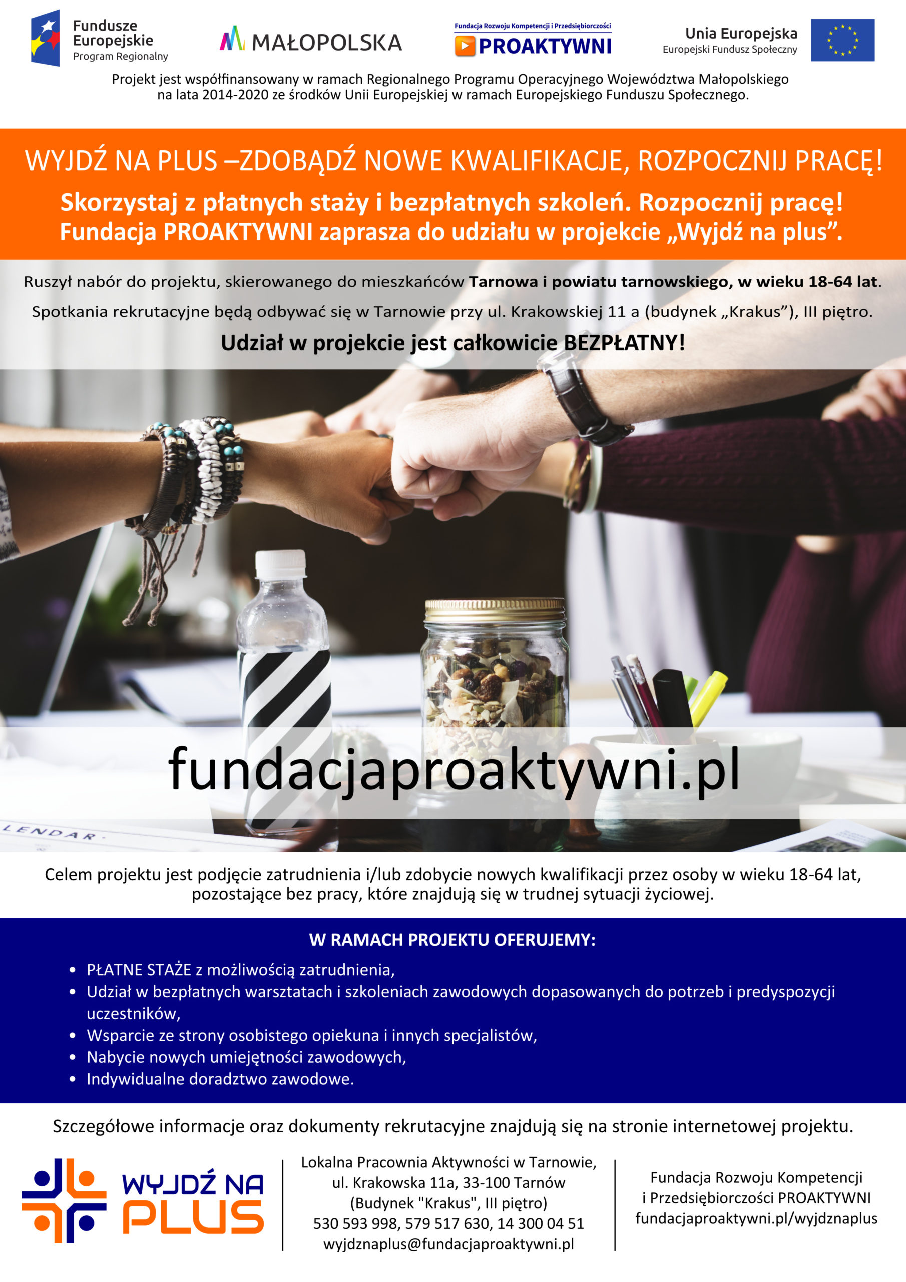 533 442 199 oraz poprzez e-mail: wyjdznaplus@fundacjaproaktywni.pl.