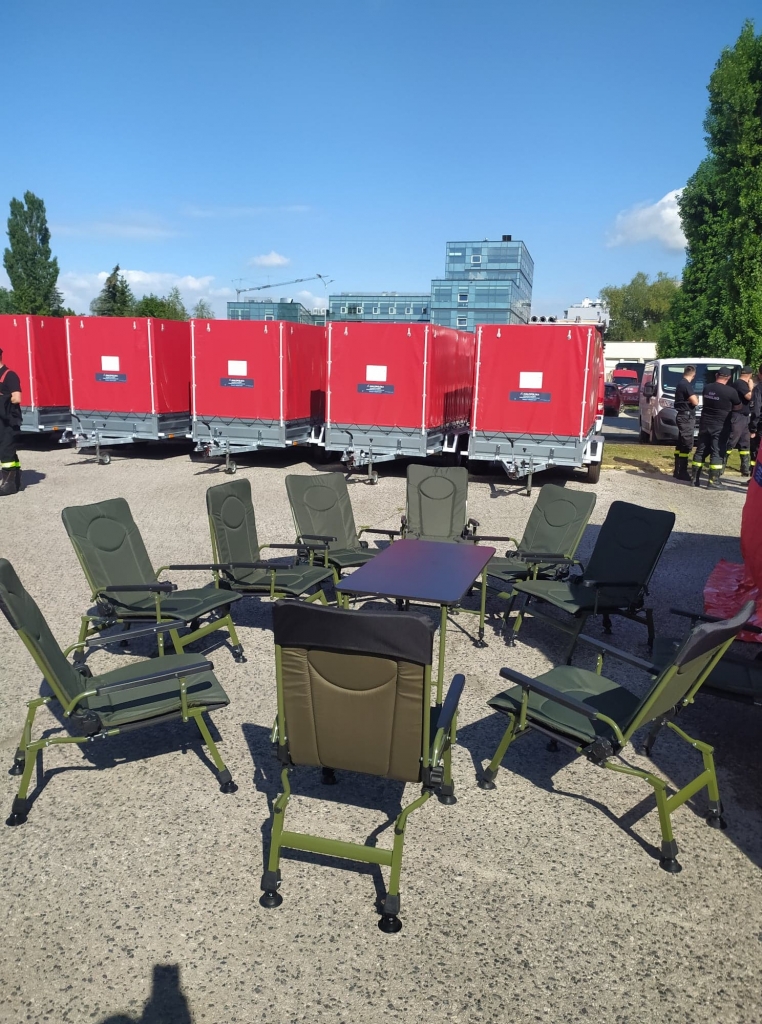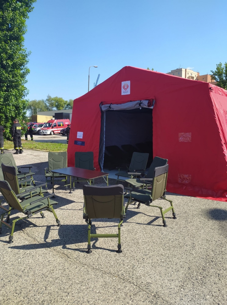 W skład namiotu, który ułatwi pracę strażakom, wchodzi m.in. przyczepa transportowa, agregat prądotwórczy czy nagrzewnica olejowa. Dzięki temu wnętrze będzie oświetlone i ciepłe. Ponadto namiot został wyposażony m.in. w 10 łóżek polowych, 10 foteli/krzeseł składanych, stolik polowy oraz śpiwory.