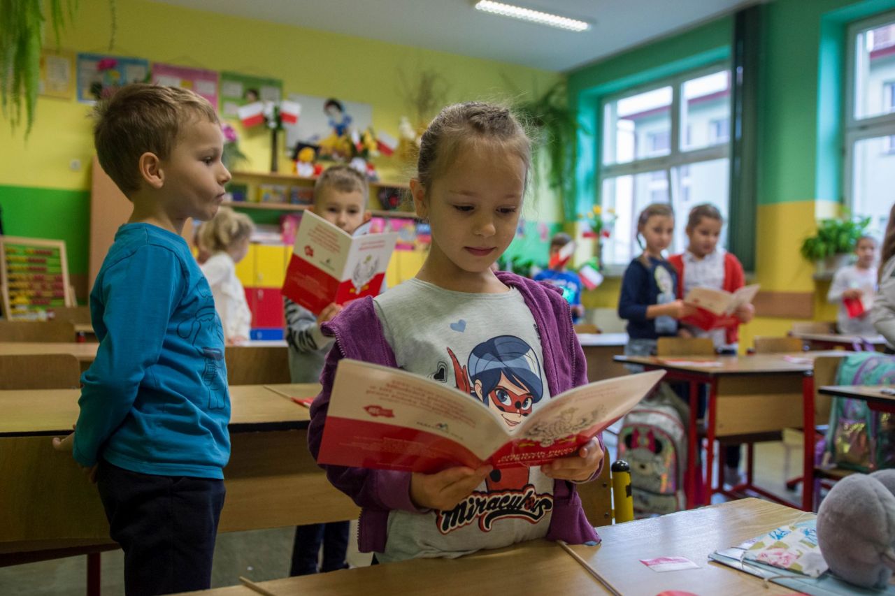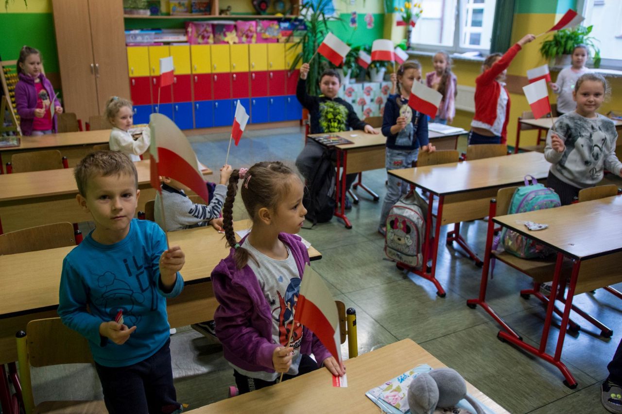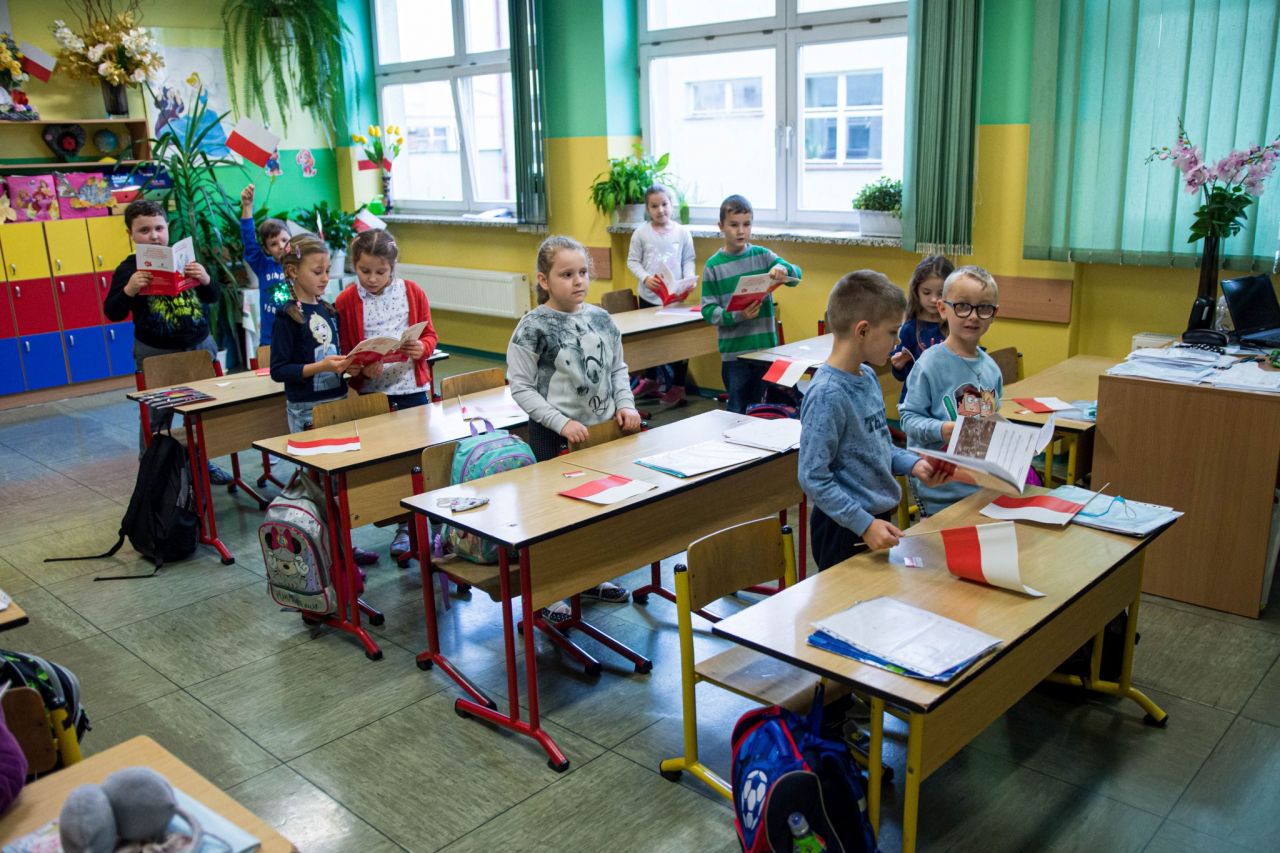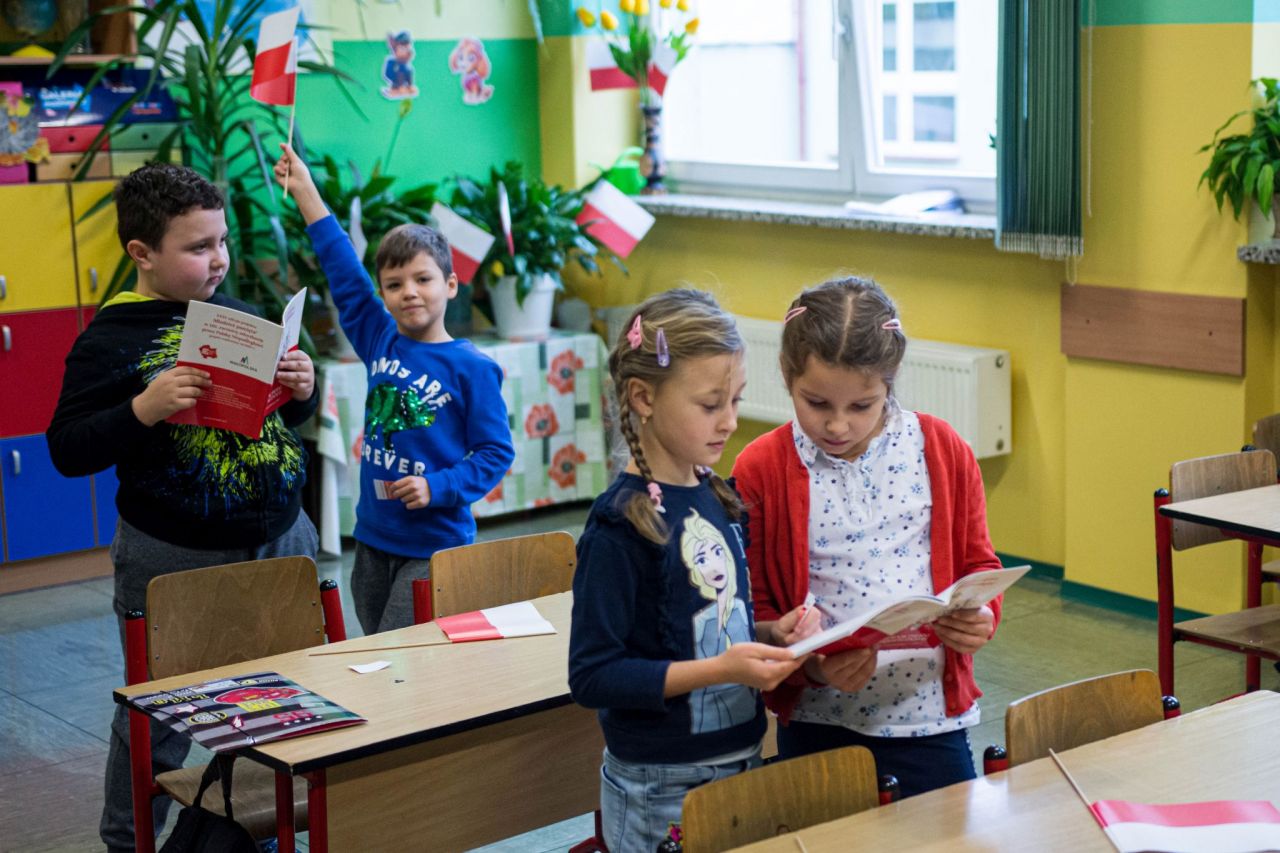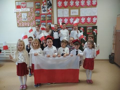 Tegoroczne Święto Niepodległości społeczność Szkoły Podstawowej w Wojniczu zdecydowała się uczcić w przestrzeni zamkniętej z uwagi na wciąż obowiązujący w naszym kraju stan epidemii. W ramach obchodów w szkole uczniom zostały rozdane okolicznościowe materiały takie jak: śpiewniki, biało-czerwone chorągiewki, naklejki, plakietki i ulotki otrzymane z projektu „Młodzież pamięta”, który co roku realizowany jest w Małopolsce w czasie obchodów Święta Niepodległości i ma na celu zwrócenie uwagi – szczególnie ludzi młodych – jak ważna jest narodowa pamięć i patriotyczna tradycja, a zarazem pokazać społeczeństwu, że młodzież pamięta o najważniejszych wydarzeniach w historii Polski.