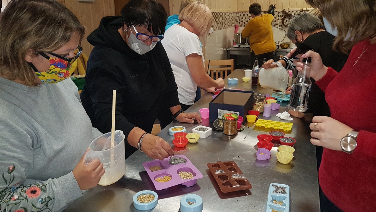 17 października członkowie stowarzyszenia oraz zaproszeni goście uczestniczyli w warsztatach mydlarskich w „Pszczelej Kuźni” w Zborowicach, które poprowadziła pani Iwona Wantuch. Po krótkiej prelekcji wprowadzającej w teorię produkcji mydełek odbyły się zajęcia praktyczne.