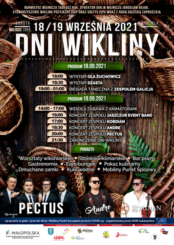 Serdecznie zapraszają: Urząd Miejski w Wojniczu, Gminny Ośrodek Kultury w Wojniczu, Stowarzyszenie Wiklina Przyjazny Isep, Sołtys Ispu wraz z Radą Sołecką, Stowarzyszenie LGD Dunajec-Biała oraz KGW Łukanowice.