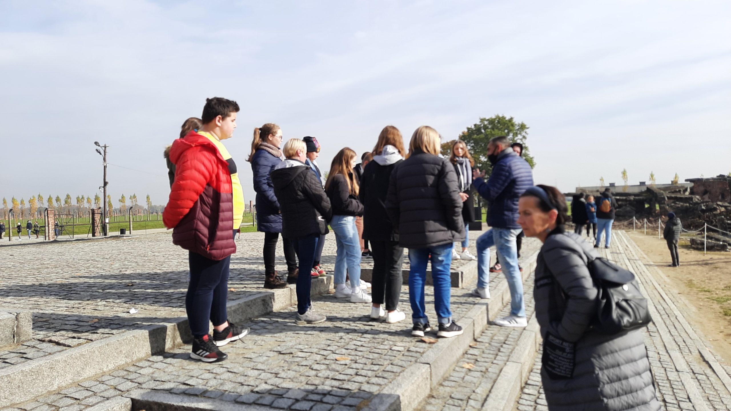 Pierwszym punktem programu było zwiedzanie Miejsca Pamięci i Muzeum – Auschwitz-Birkenau. Uczniowie w wielkim skupieniu i z przejęciem wysłuchali przewodnika-edukatora, który przedstawił im historię byłego niemieckiego obozu koncentracyjnego, opowiedział o ludobójstwie i nieludzkim traktowaniu więźniów. Do wyobraźni przemawiały autentyczne, zachowane w formie niezmienionej od zakończenia wojny miejsca, a także nowoczesne wystawy przygotowane z myślą o młodych ludziach. Pobyt w Auschwitz wywarł na ósmoklasistach wstrząsające wrażenie i z pewnością na zawsze zostanie w pamięci.