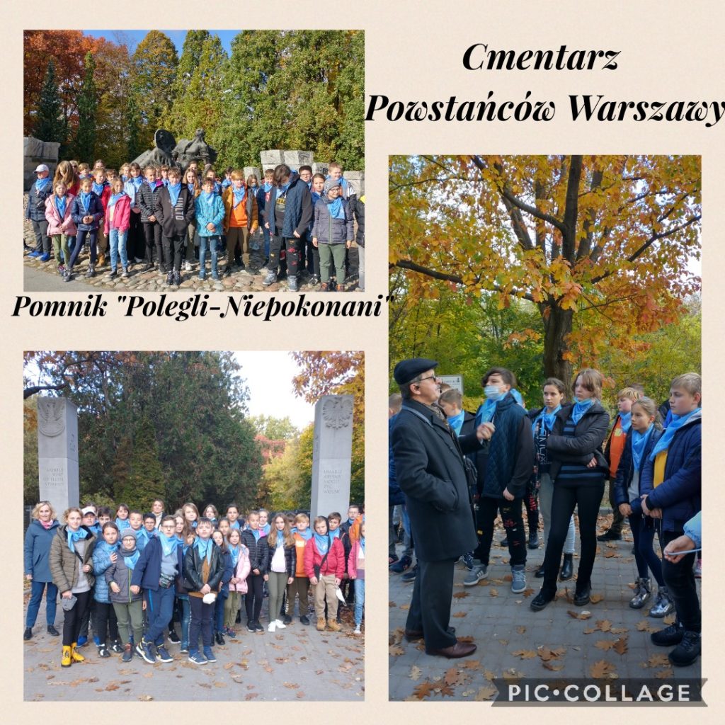 Po przyjeździe do Warszawy wraz z przewodnikiem uczniowie udali się na Cmentarz Powstańców Warszawy. Jest to cmentarz wojenny znajdujący się w dzielnicy Wola, na którym spoczywają bohaterowie walczący w Powstaniu Warszawskim oraz cywile zamordowani w 1944 roku. Pod pomnikiem „Polegli – Niepokonani” uczniowie chwilą ciszy uczcili pamięć poległych.