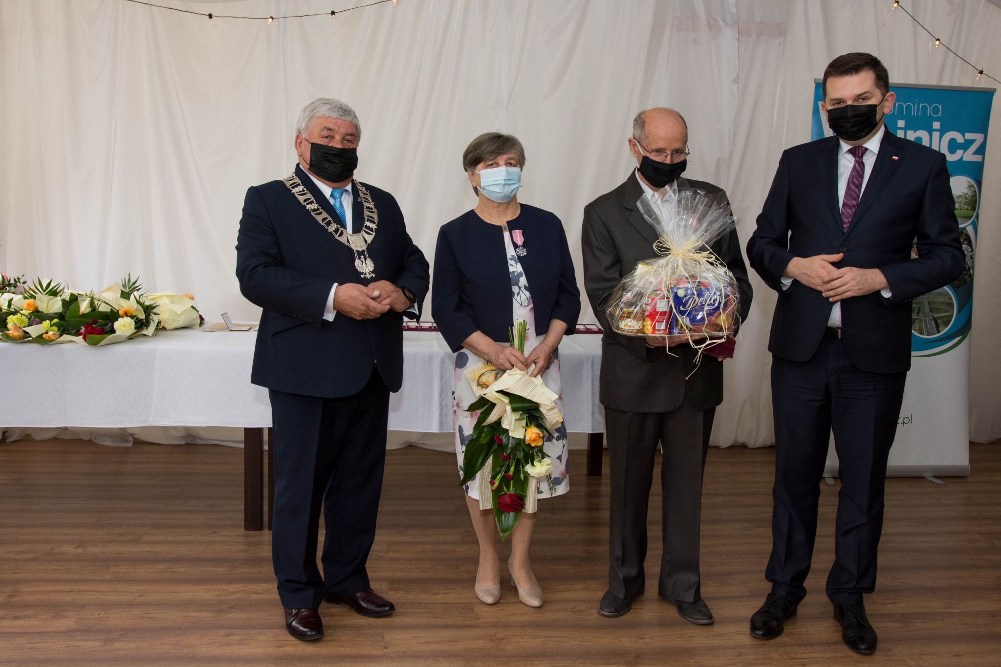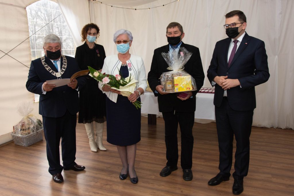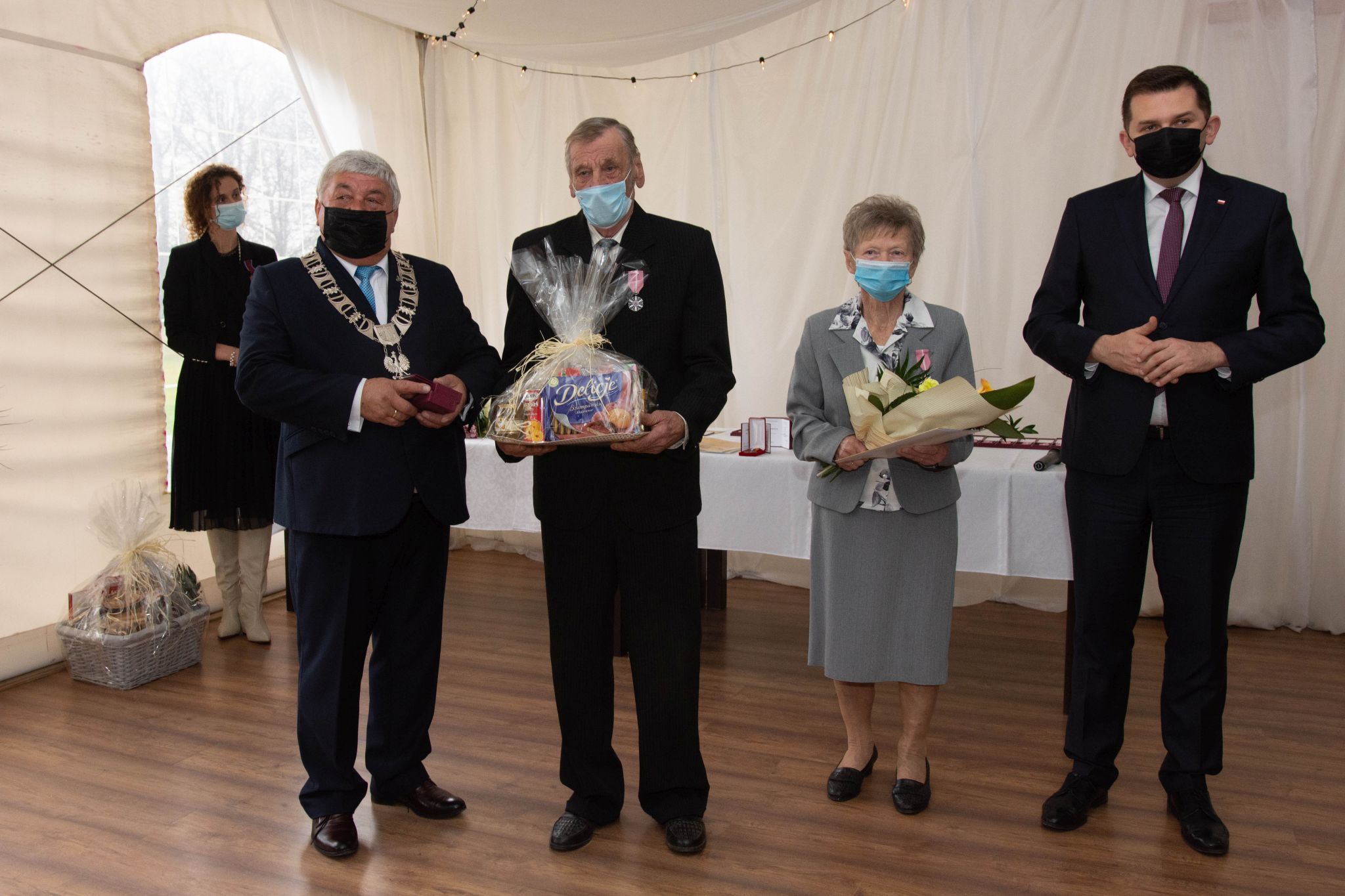 W uroczystości oprócz szanownych jubilatów i odznaczonych udział wzięli m.in. Zastępca Burmistrza Leszek Ząbkowski, Kierownik Urzędu Stanu Cywilnego Rafał Jadach, Sekretarz Gminy Agnieszka Dąbroś, Skarbnik Gminy Joanna Zając. Po części oficjalnej wszyscy goście zostali zaproszeni na wspólny poczęstunek oraz miłą chwilę wspomnień przy akompaniamencie kapeli ludowej.