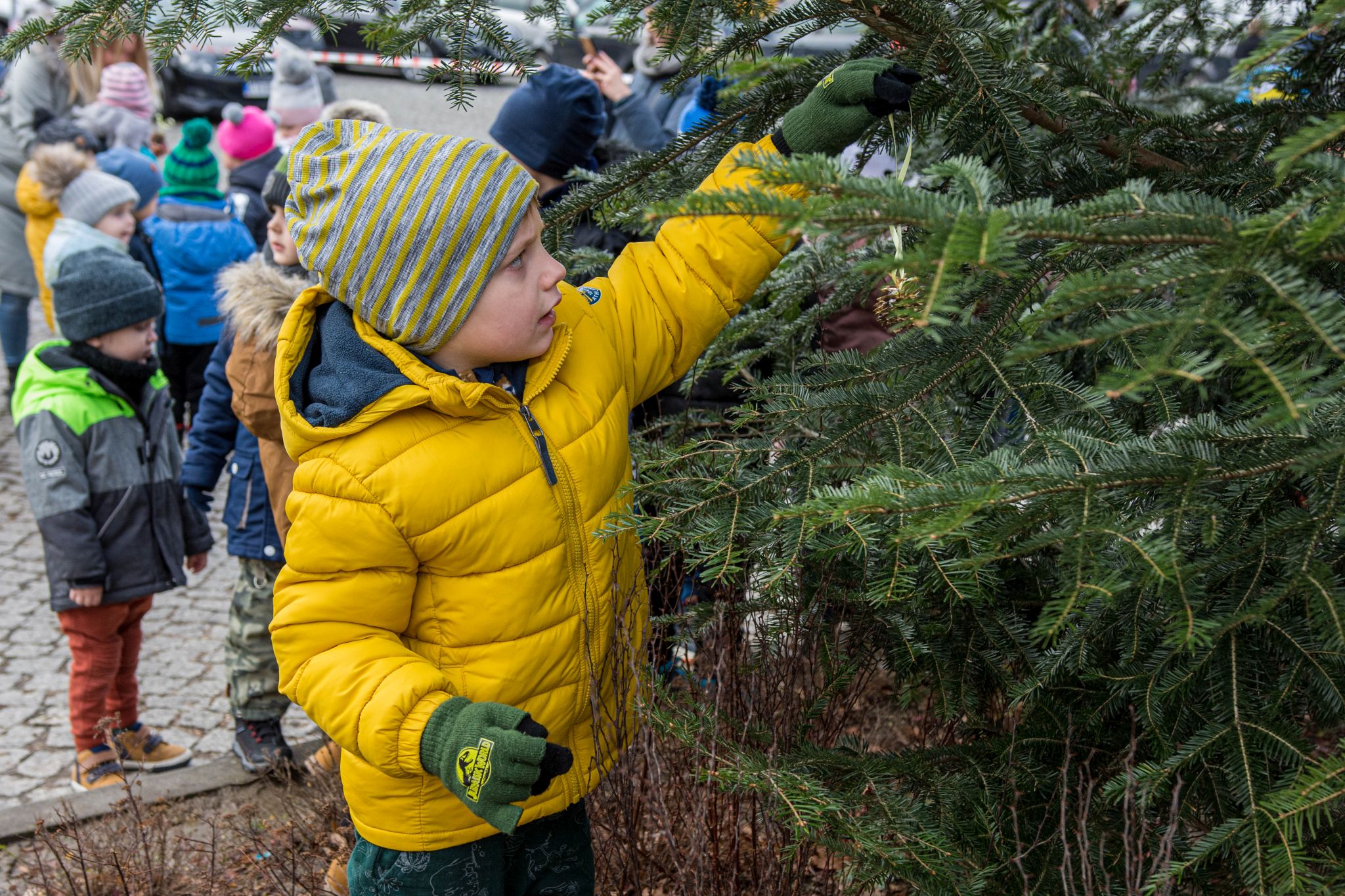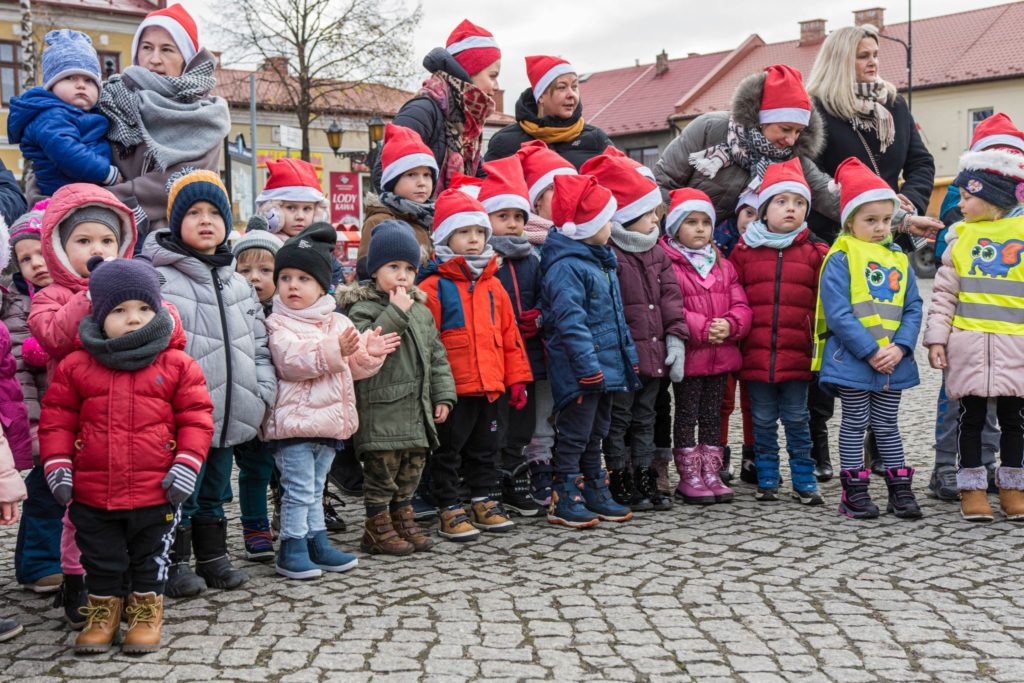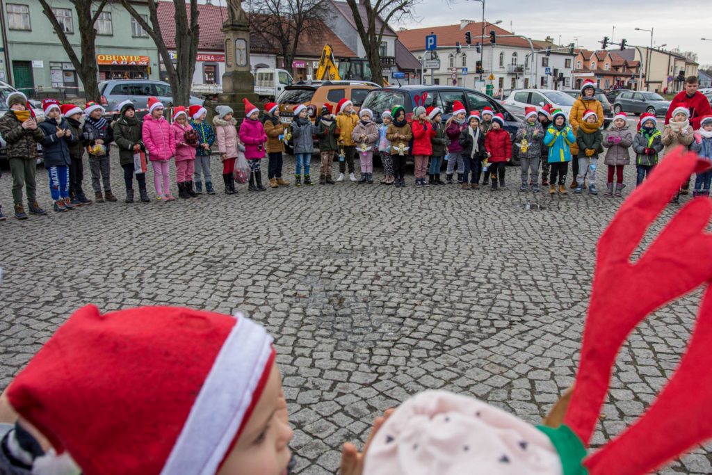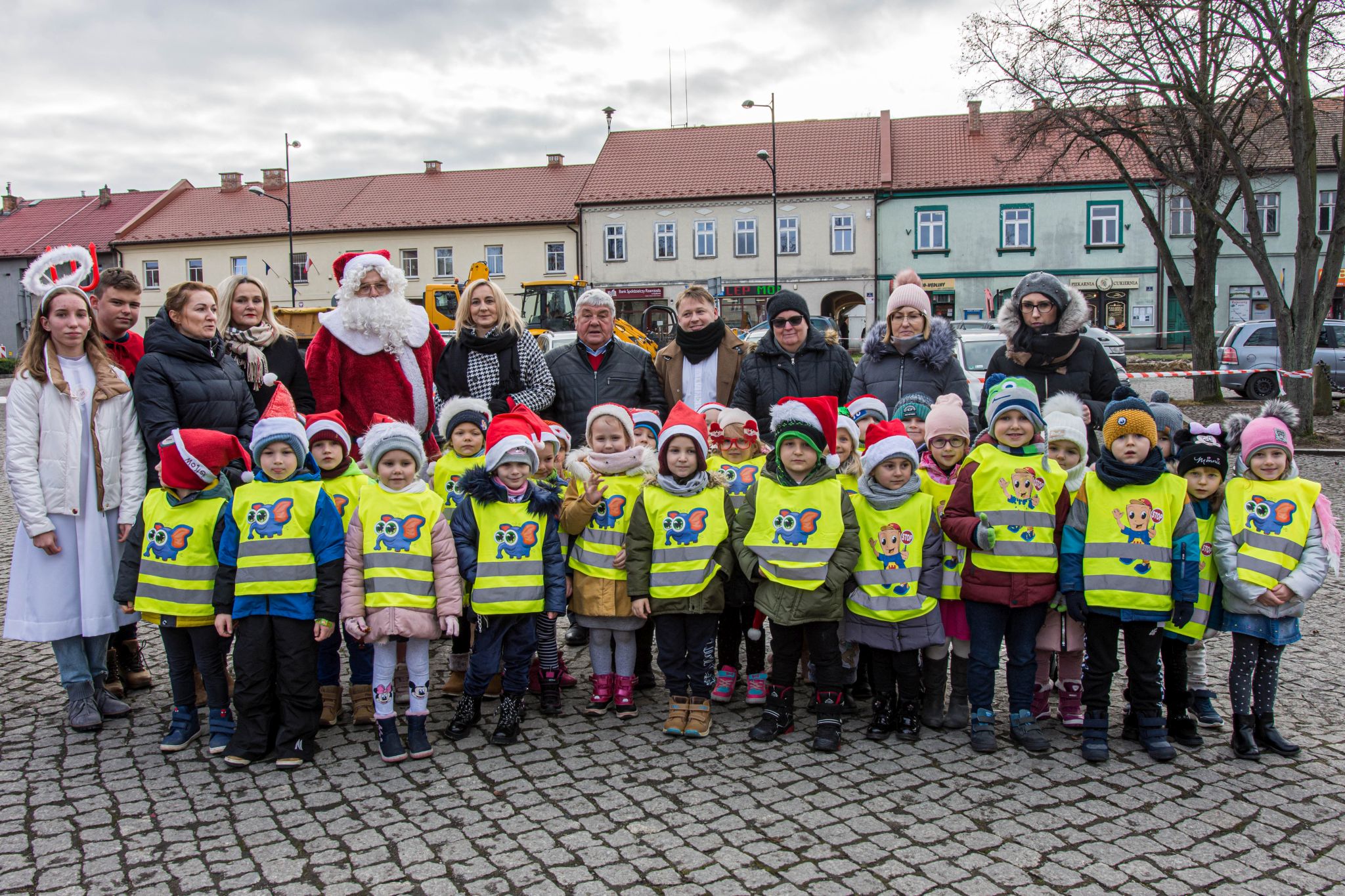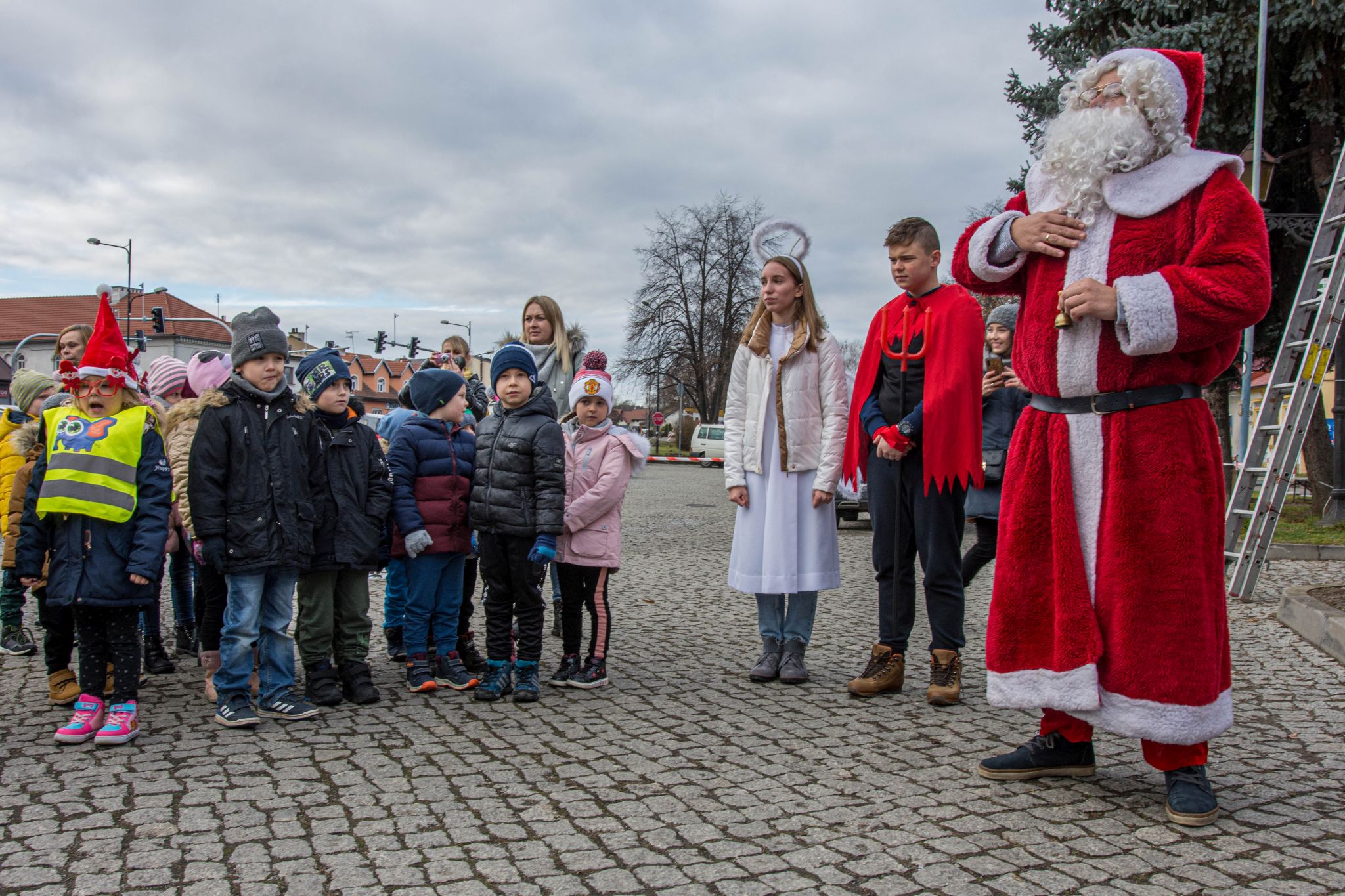1 grudnia płyta Rynku w Wojniczu przed południem tętniła dziecięcym gwarem. Dzieci z przedszkoli z terenu gminy ubierały stojącą na płycie żywą choinkę. Razem z młodymi mieszkańcami gminy choinkę ubierał Burmistrz Wojnicza Tadeusz Bąk.