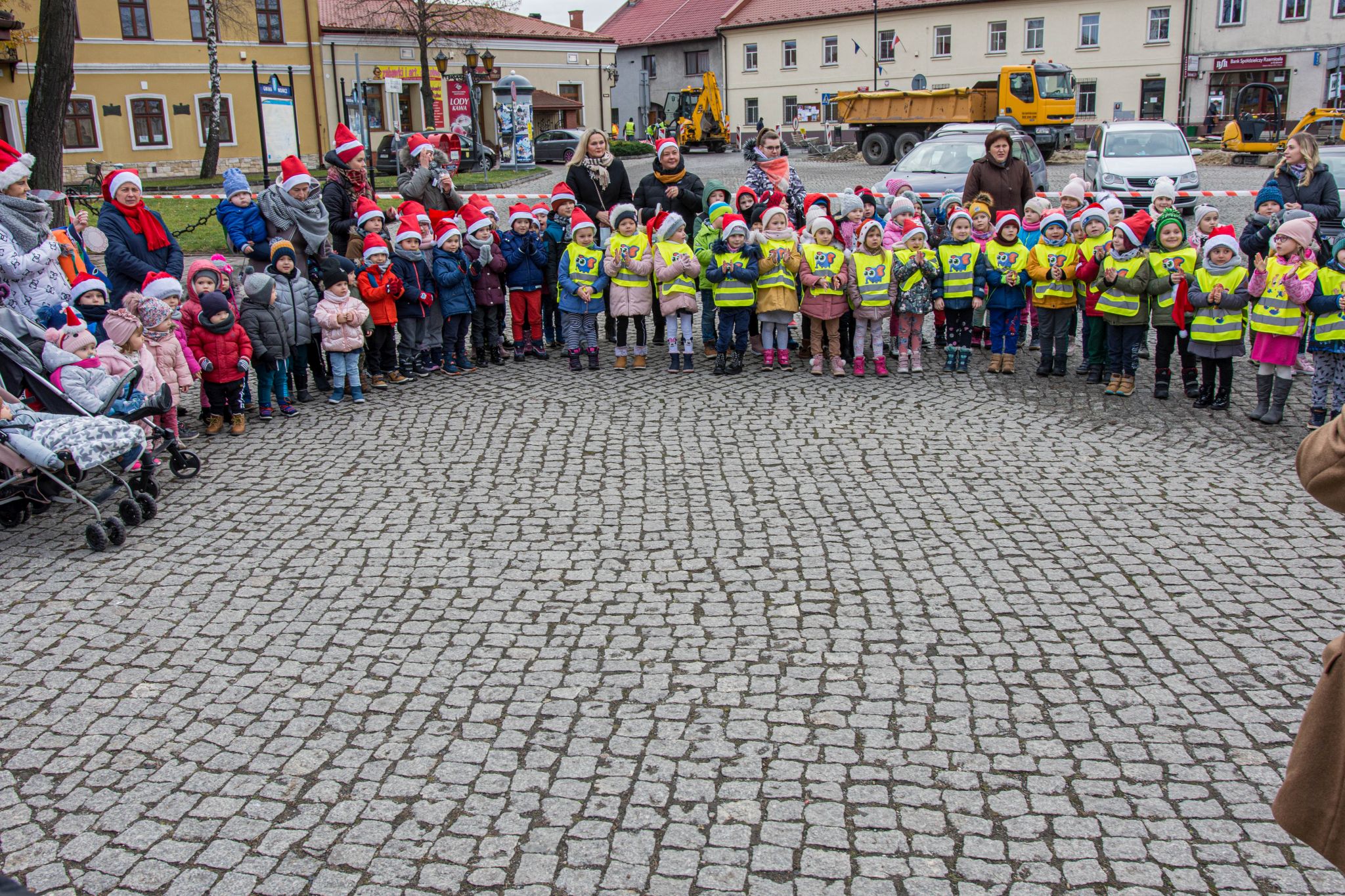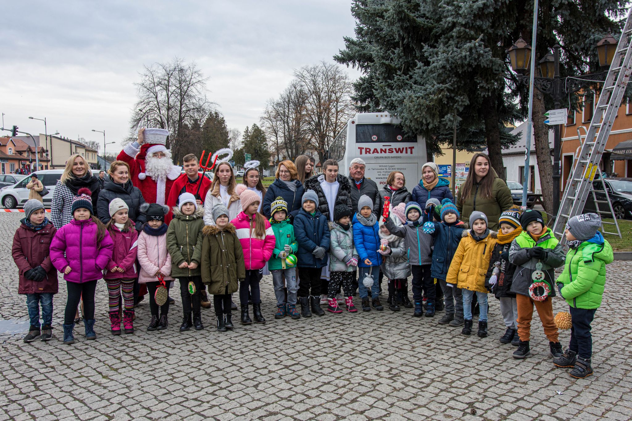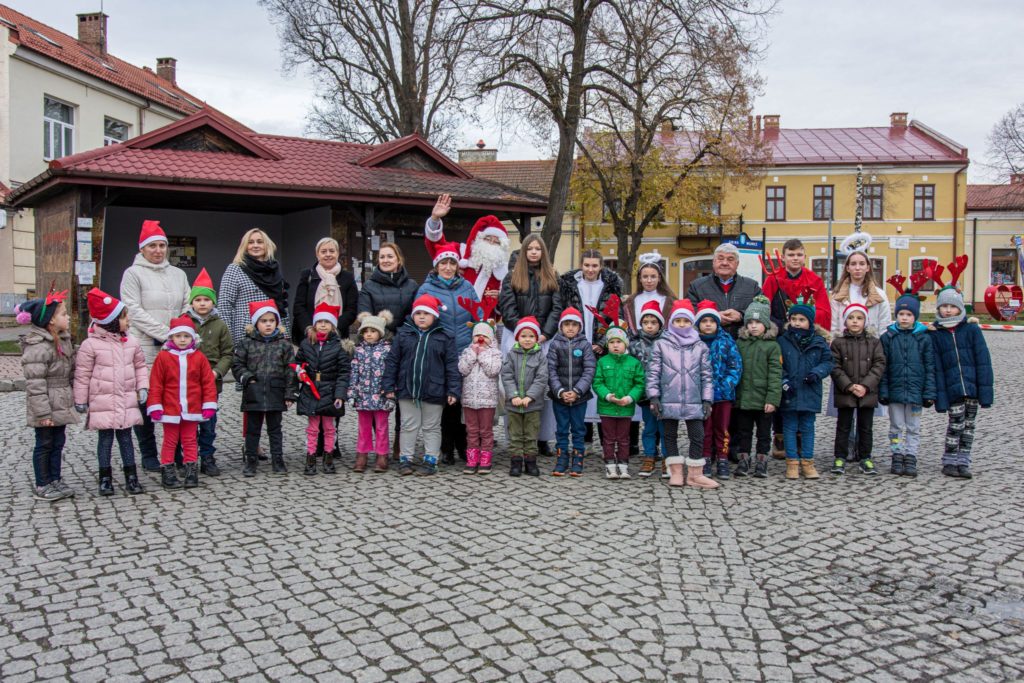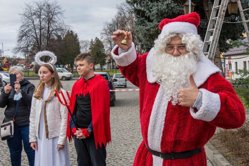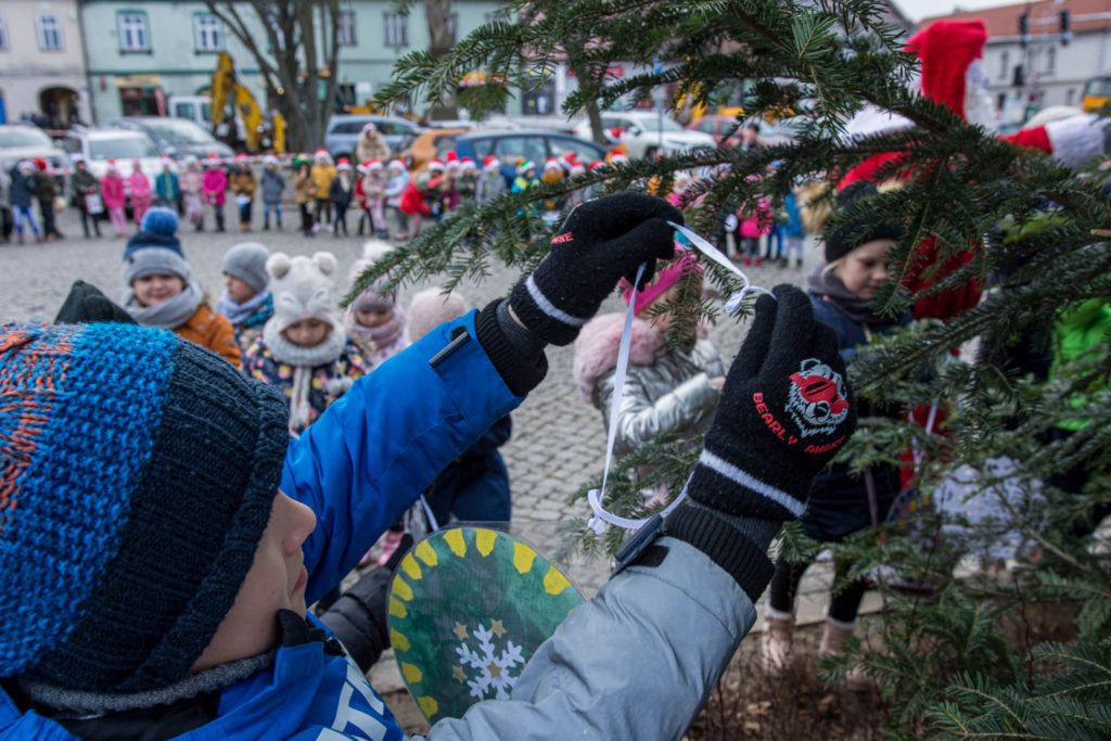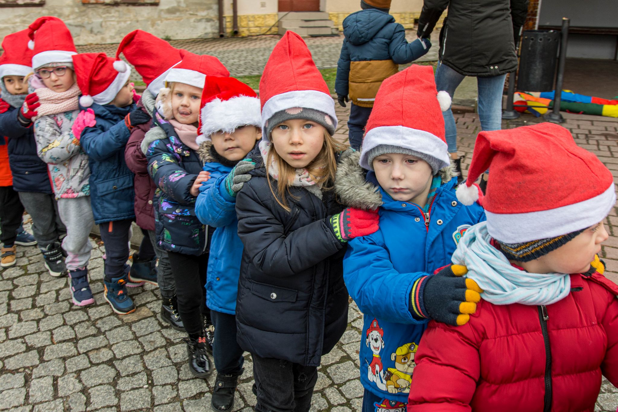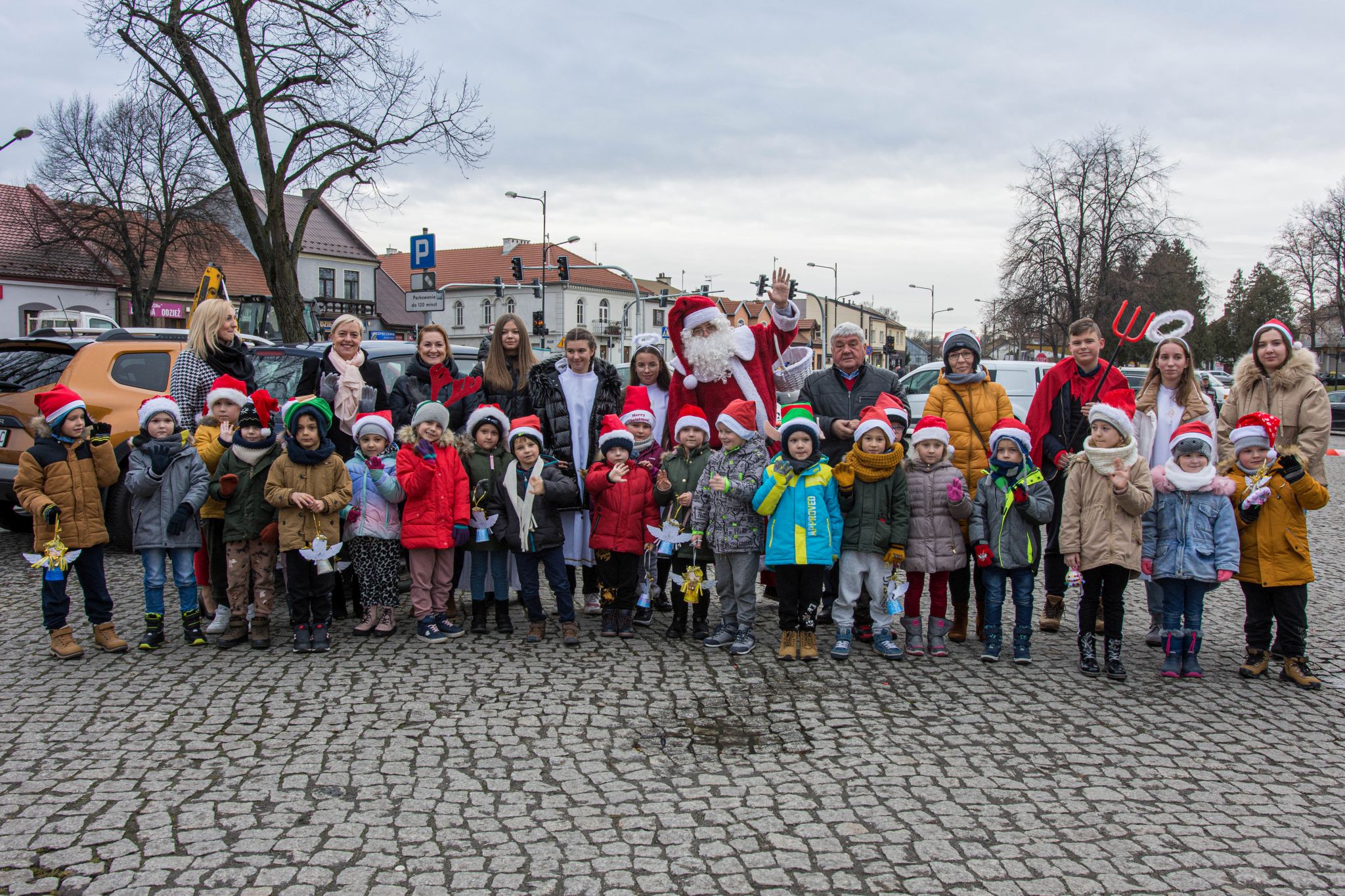 1 grudnia płyta Rynku w Wojniczu przed południem tętniła dziecięcym gwarem. Dzieci z przedszkoli z terenu gminy ubierały stojącą na płycie żywą choinkę. Razem z młodymi mieszkańcami gminy choinkę ubierał Burmistrz Wojnicza Tadeusz Bąk.