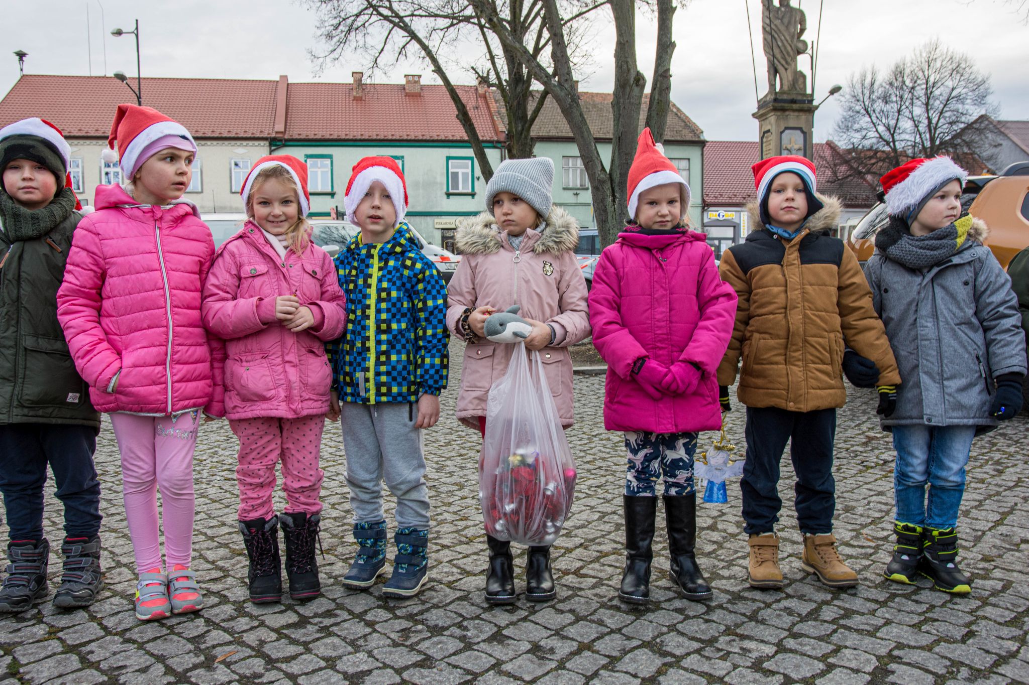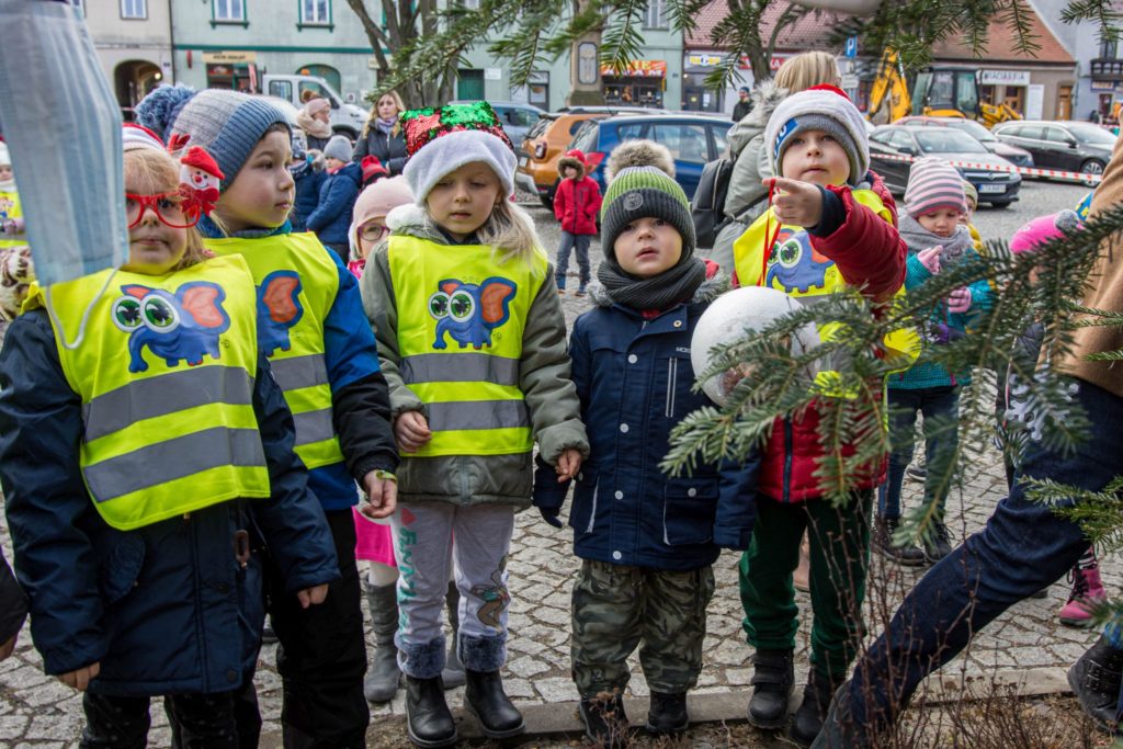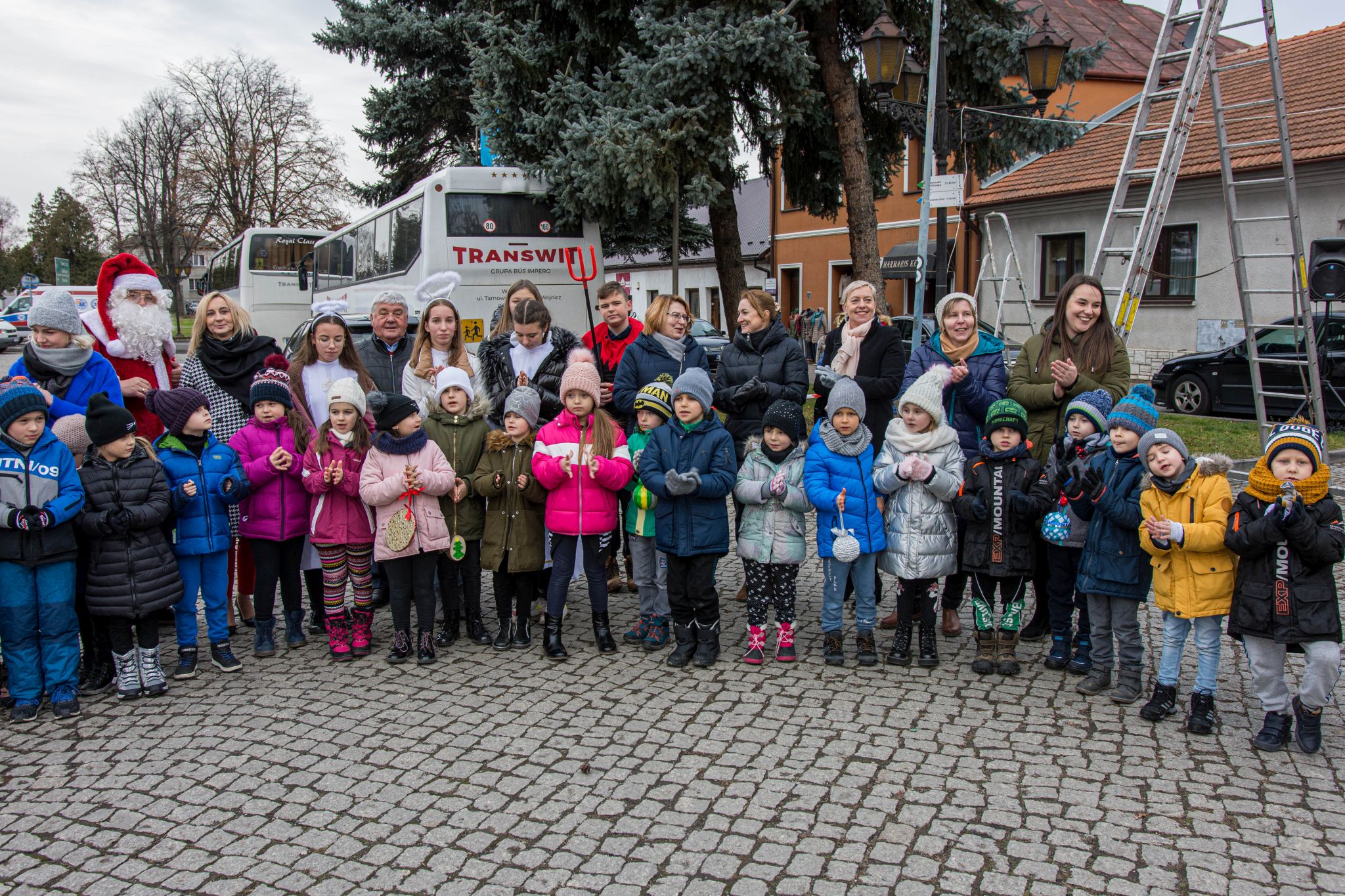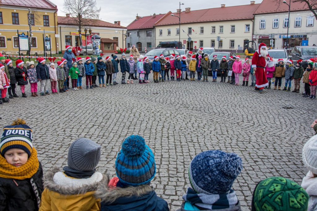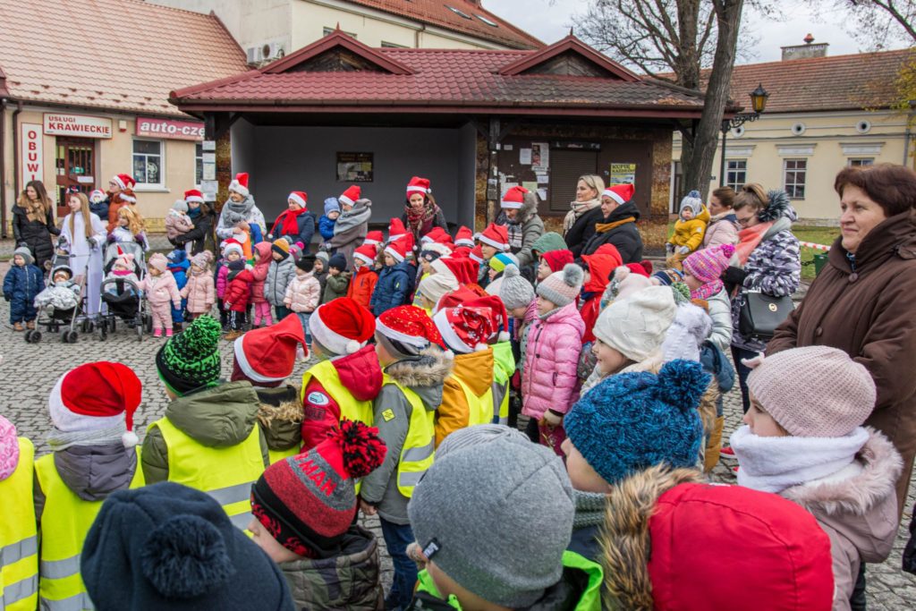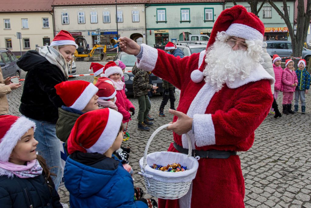 1 grudnia płyta Rynku w Wojniczu przed południem tętniła dziecięcym gwarem. Dzieci z przedszkoli z terenu gminy ubierały stojącą na płycie żywą choinkę. Razem z młodymi mieszkańcami gminy choinkę ubierał Burmistrz Wojnicza Tadeusz Bąk.
