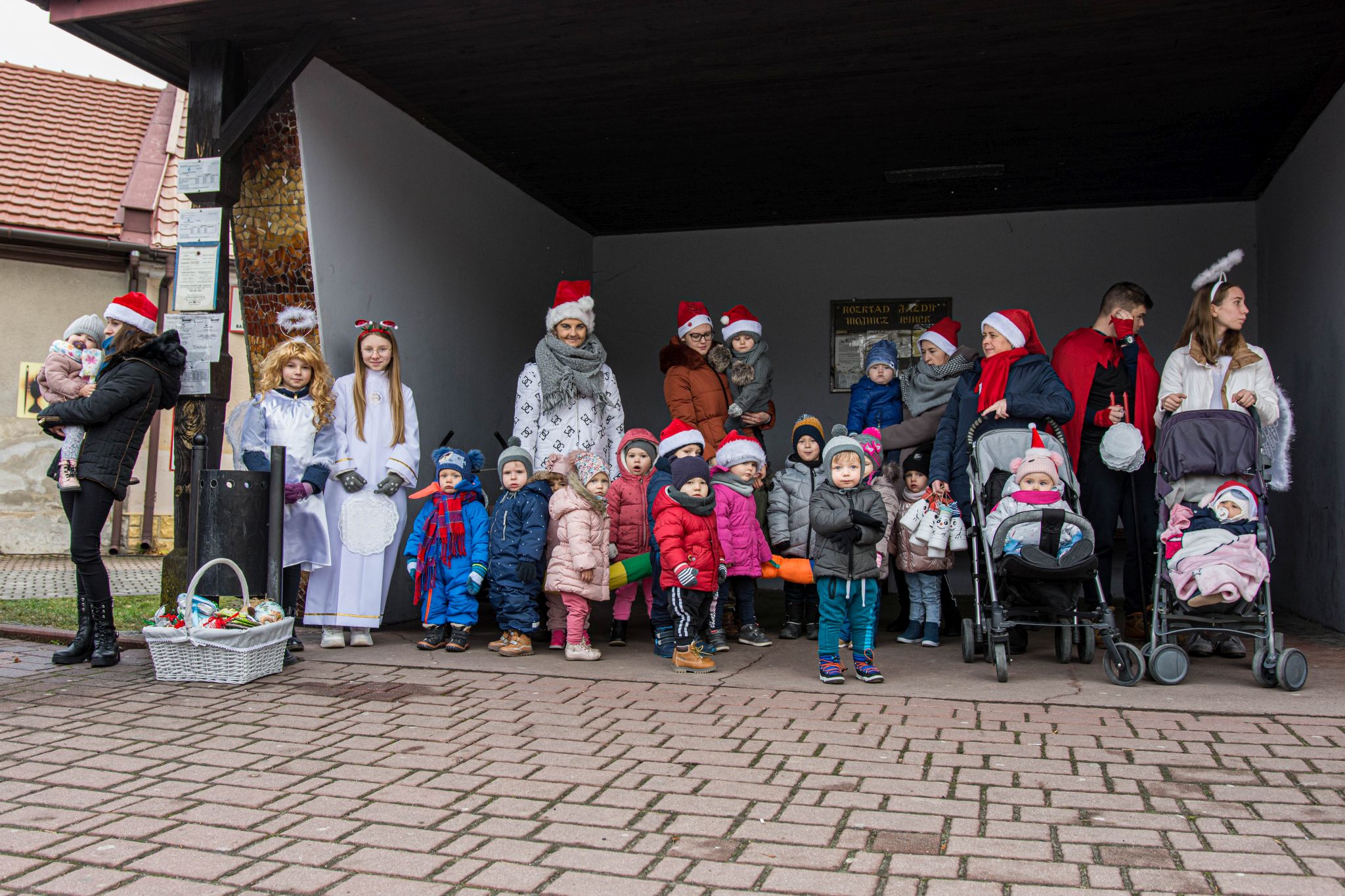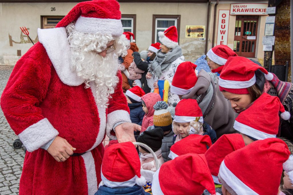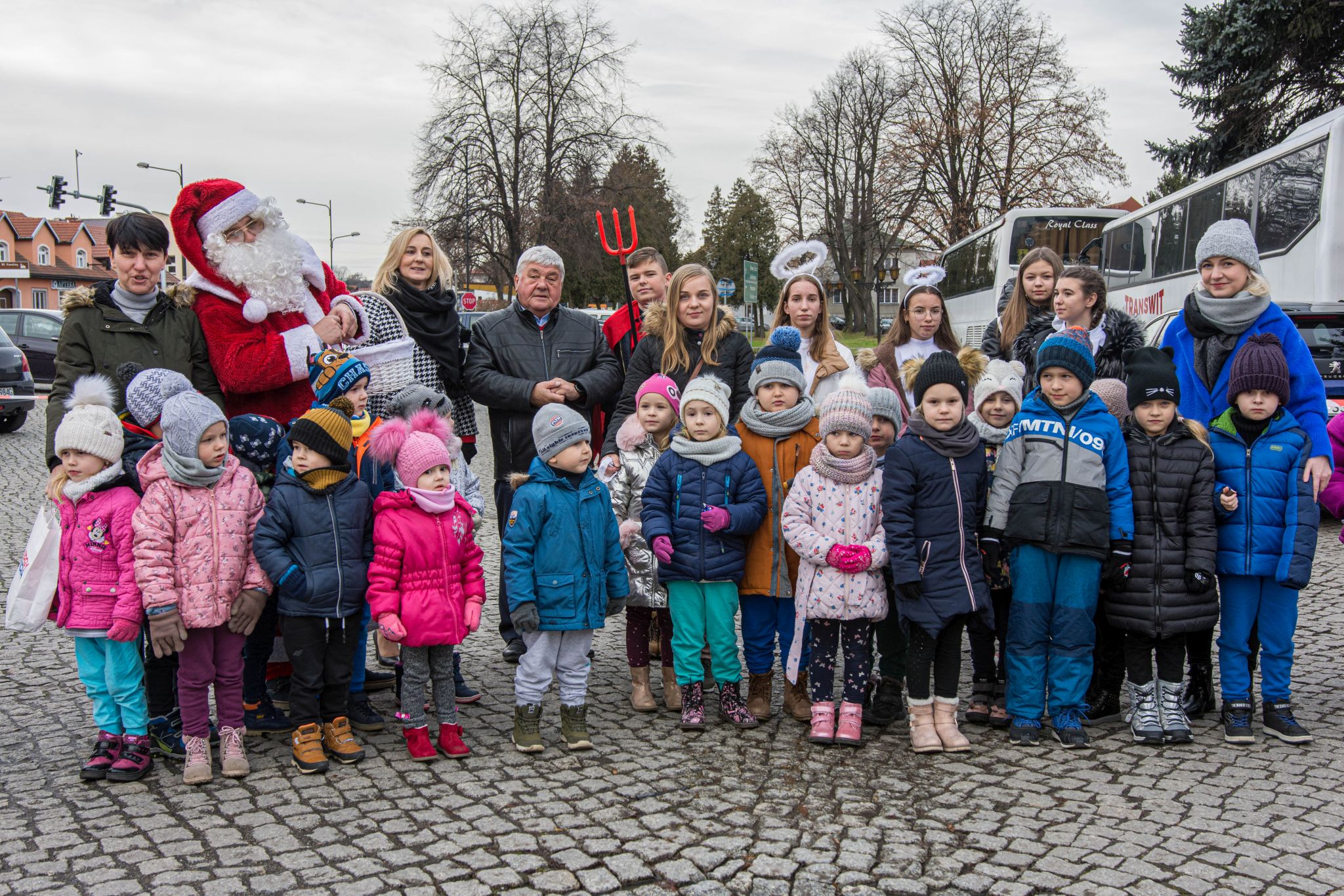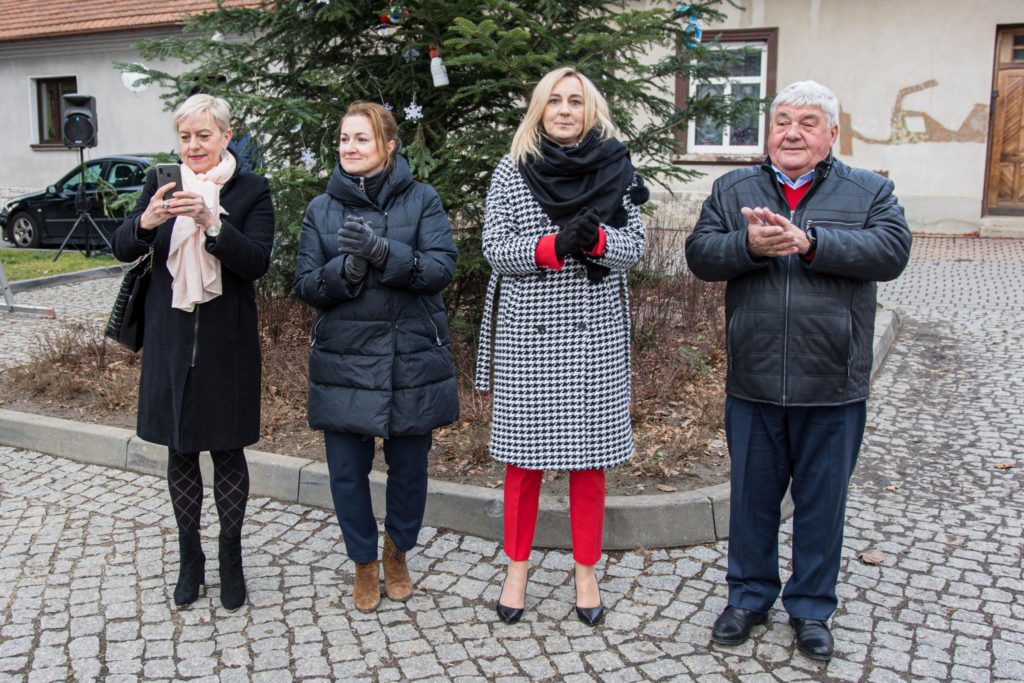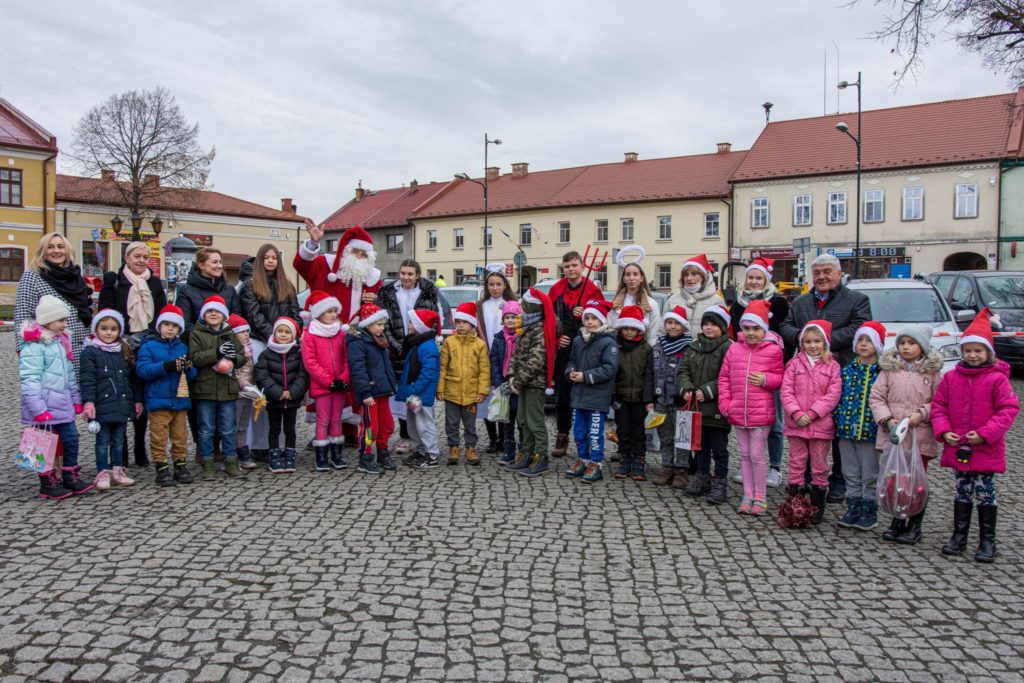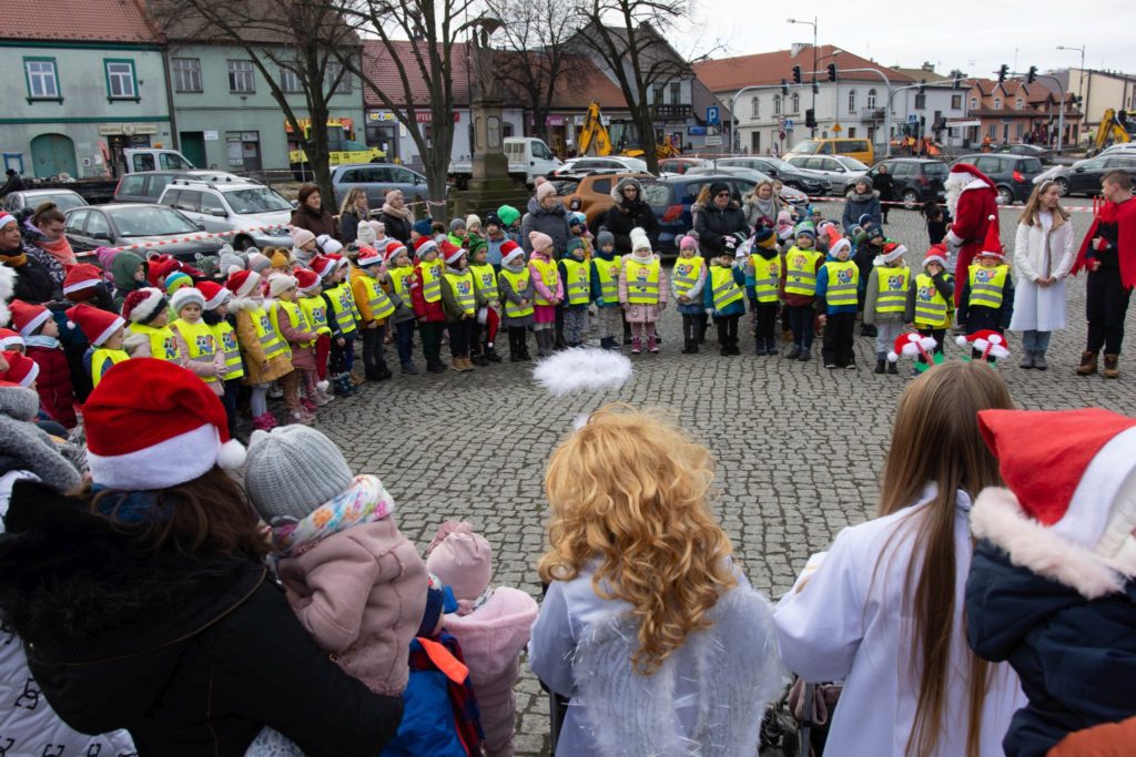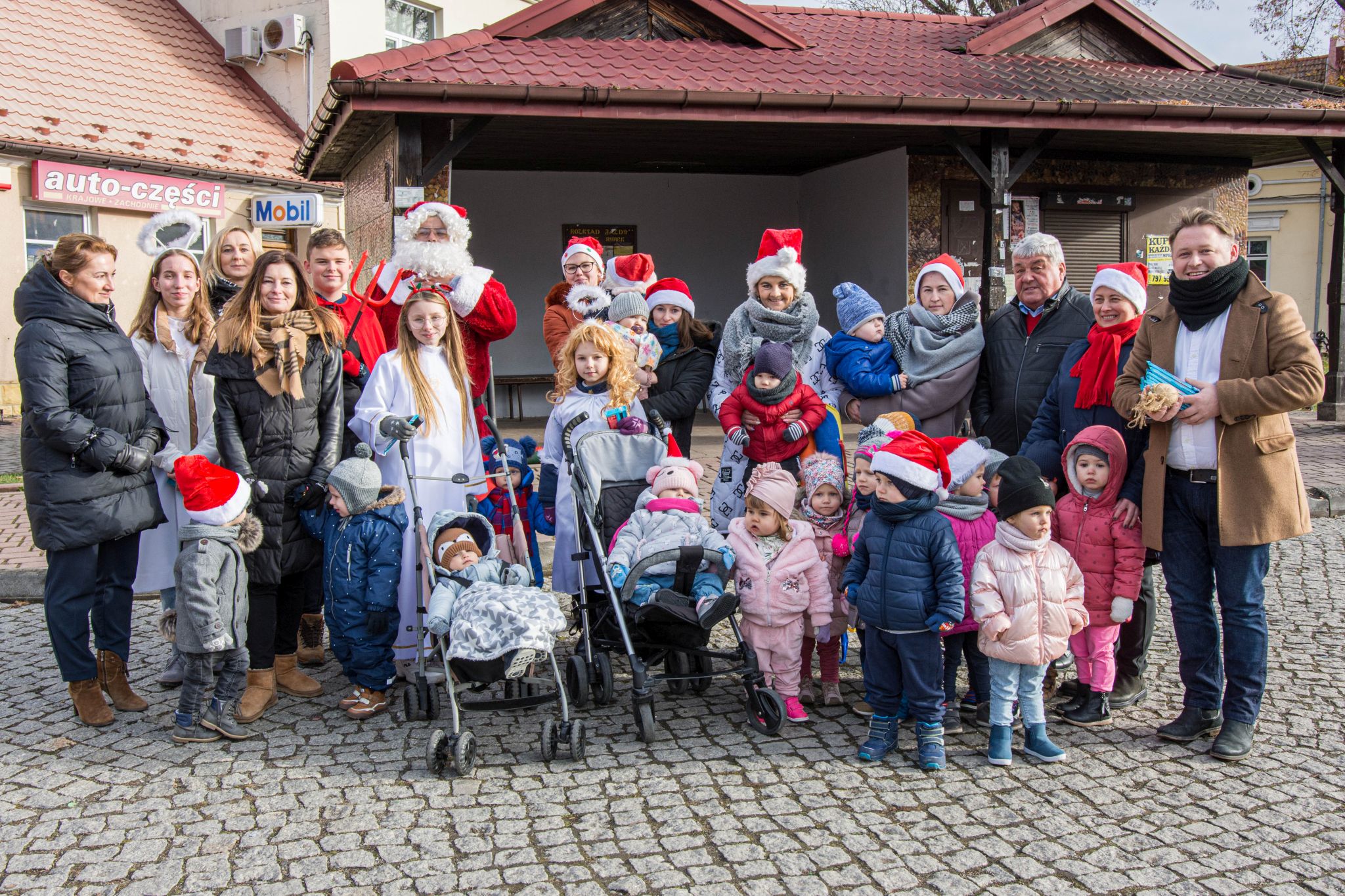 1 grudnia płyta Rynku w Wojniczu przed południem tętniła dziecięcym gwarem. Dzieci z przedszkoli z terenu gminy ubierały stojącą na płycie żywą choinkę. Razem z młodymi mieszkańcami gminy choinkę ubierał Burmistrz Wojnicza Tadeusz Bąk.