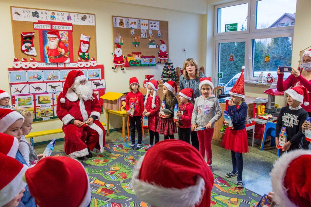 Tym razem na spotkanie z dziećmi Mikołaj przygotował ponad 550 świątecznych paczek, które wręczył w czasie jego wędrówki po gminnych przedszkolach. Dzieci, nie kryły radości z tej niespodzianki. W czasie krótkiej rozmowy z Mikołajem zapewniały, że były wyjątkowo grzeczne.