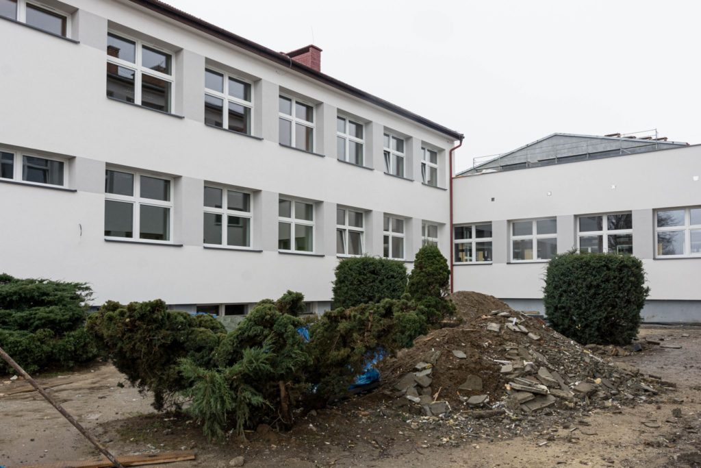 Przypomnijmy, że realizacja zadania zakłada m. in.: ocieplenie ścian zewnętrznych i stropów, wymianę stolarki okiennej i drzwiowej oraz modernizacja kotłowni znajdujących się w szkole wraz z wymianą pieców i osprzętu towarzyszącego. Wykonane prace przyczynią się do poprawy stanu technicznego budynku i zredukuje utraty ciepła zmniejszając zapotrzebowanie na energię cieplną budynku oraz koszty jego ogrzewania.