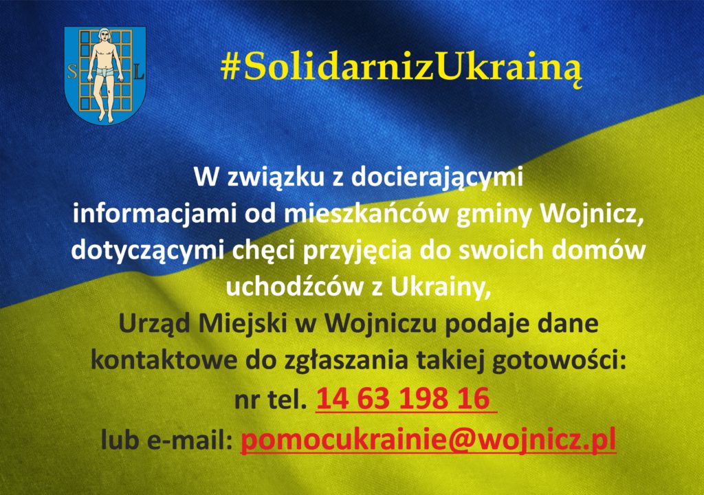 W związku z docierającymi informacjami od mieszkańców gminy Wojnicz, dotyczącymi chęci przyjęcia do swoich domów uchodźców z Ukrainy, Urząd Miejski w Wojniczu podaje dane kontaktowe do zgłaszania takiej gotowości:
