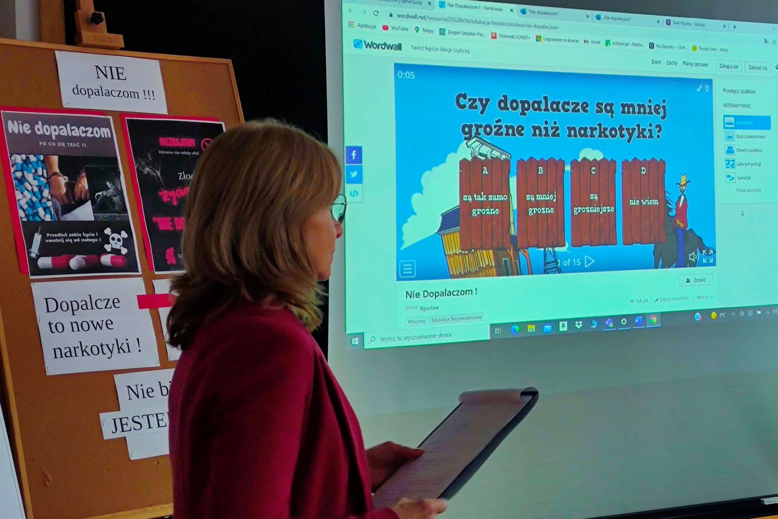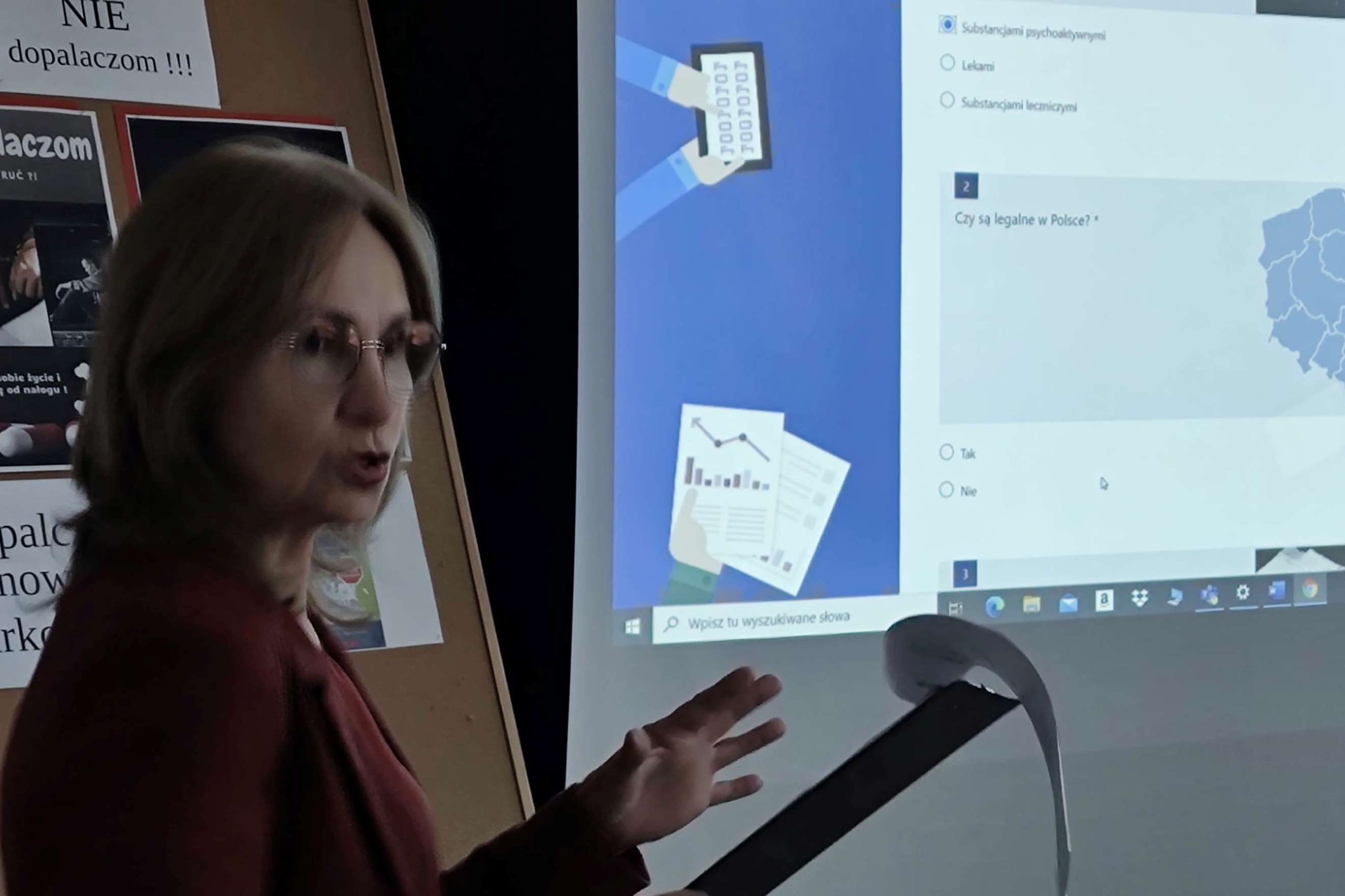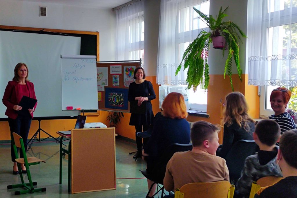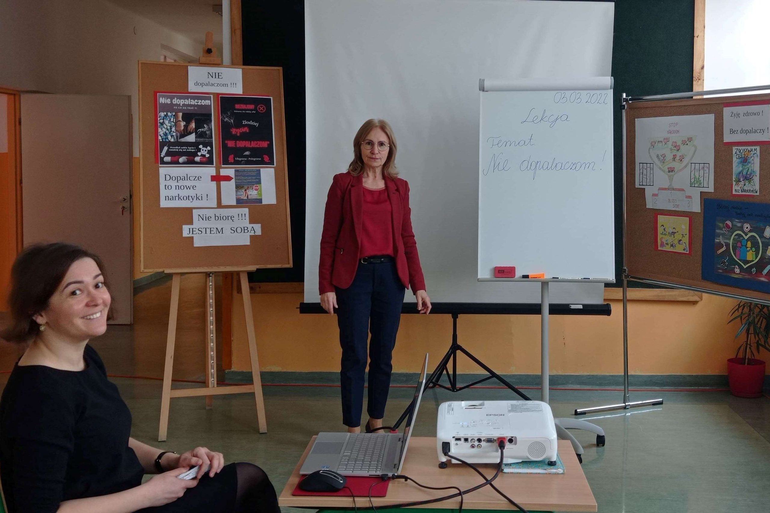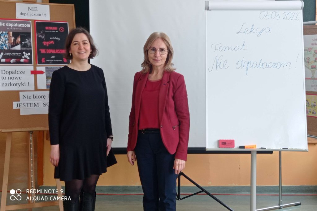 Podczas quasi lekcji, przeprowadzonej przez pedagoga szkolnego p. Ewę Matejską uczestnicy mieli okazję powtórzyć i utrwalić znane wiadomości o dopalaczach, ale także poszerzyć swoją wiedzę w tym zakresie. Podczas tej niby lekcji uczniowie – twórcy testów i quizów złożonych do konkursu wcielili się w role ekspertów, a zebrani mogli sprawdzić własną uważność słuchania odpowiadając na stawiane pytania,z czego aktywnie skorzystali.