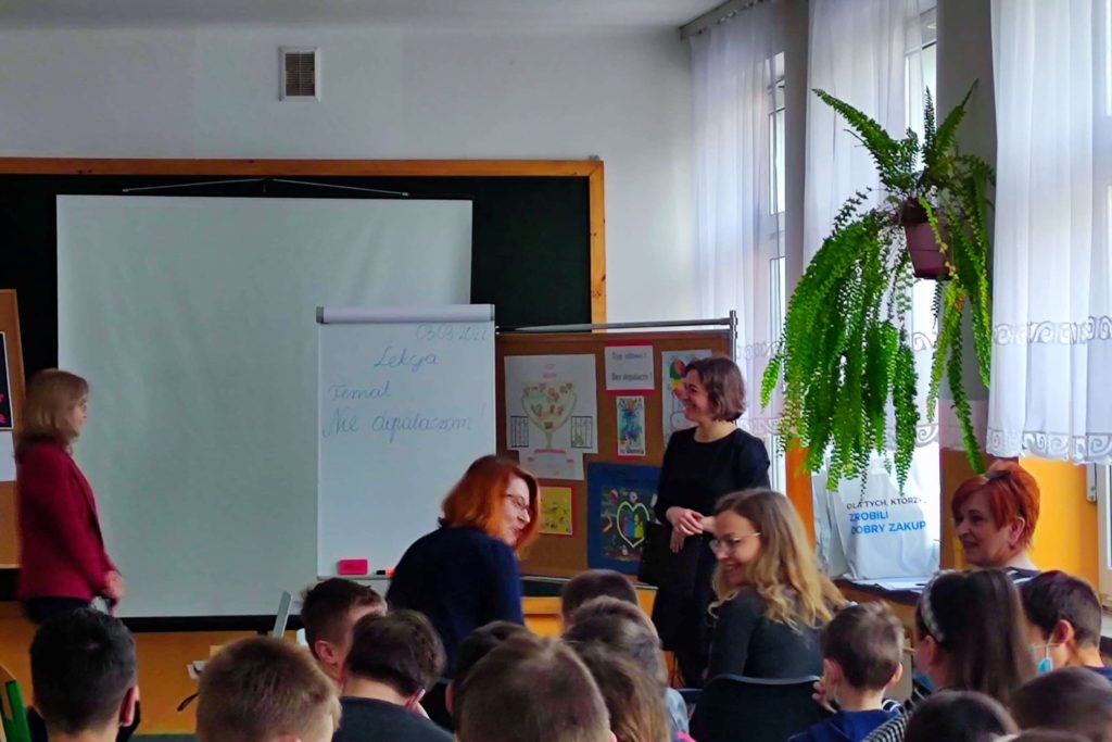 Uczestnikami wydarzenia byli uczniowie klas IV, V, VI i VIII, nauczyciele i dyrektor szkoły p. Anna Maziarz oraz kierownik GOPS p. Agata Biernacka i p. Gabriela Wantuch.