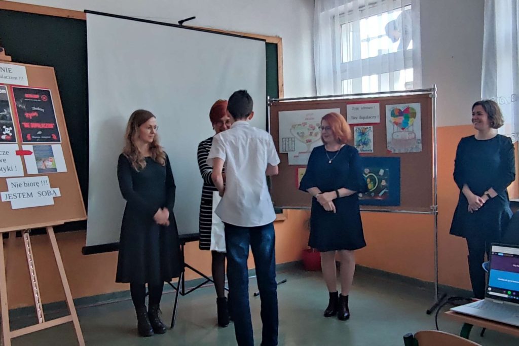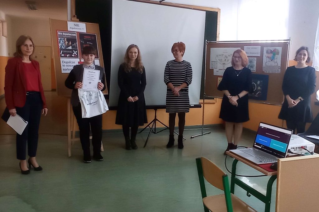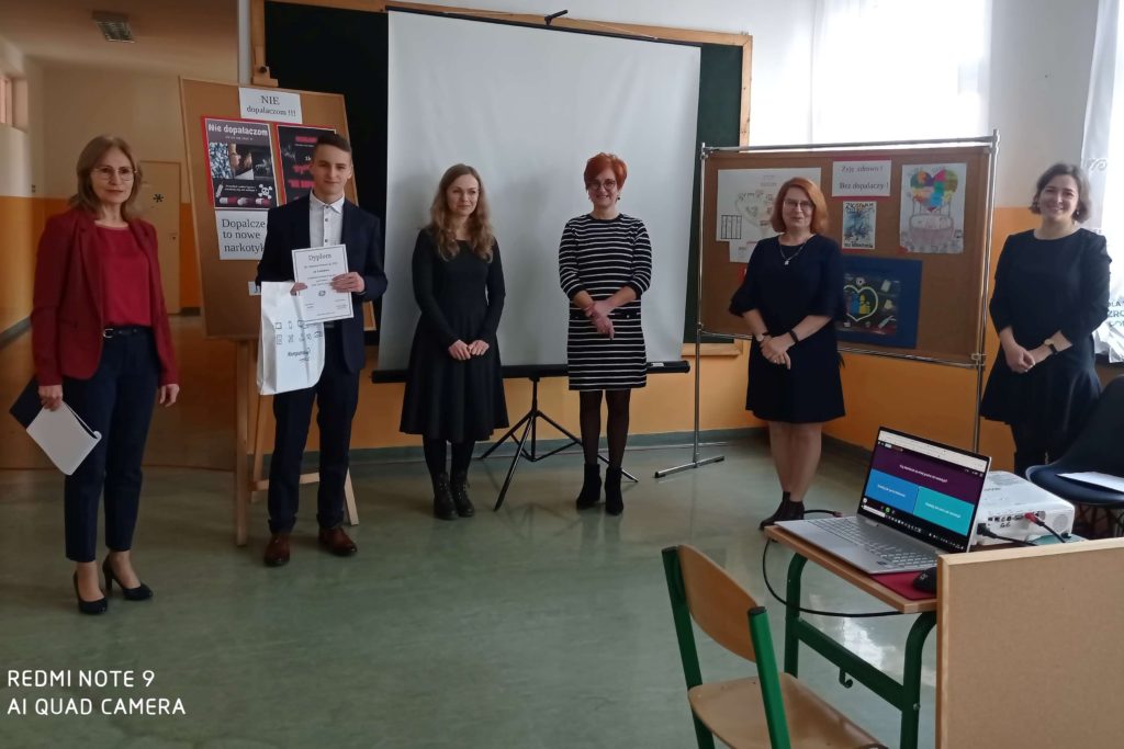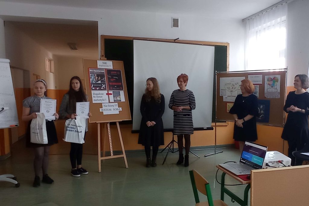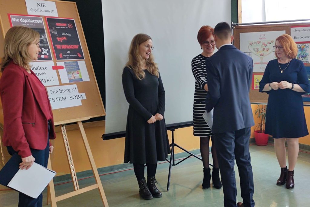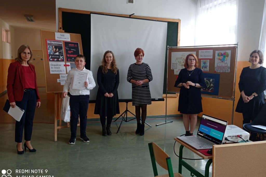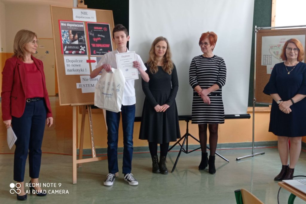 Pretekstem do spotkania był konkurs pod hasłem ”NIE dopalaczom!” z wykorzystaniem technologii informatycznych, zorganizowany przez nauczycielkę informatyki p. Gabrielę Ciasnochę przy współpracy z pedagogiem szkolnym.