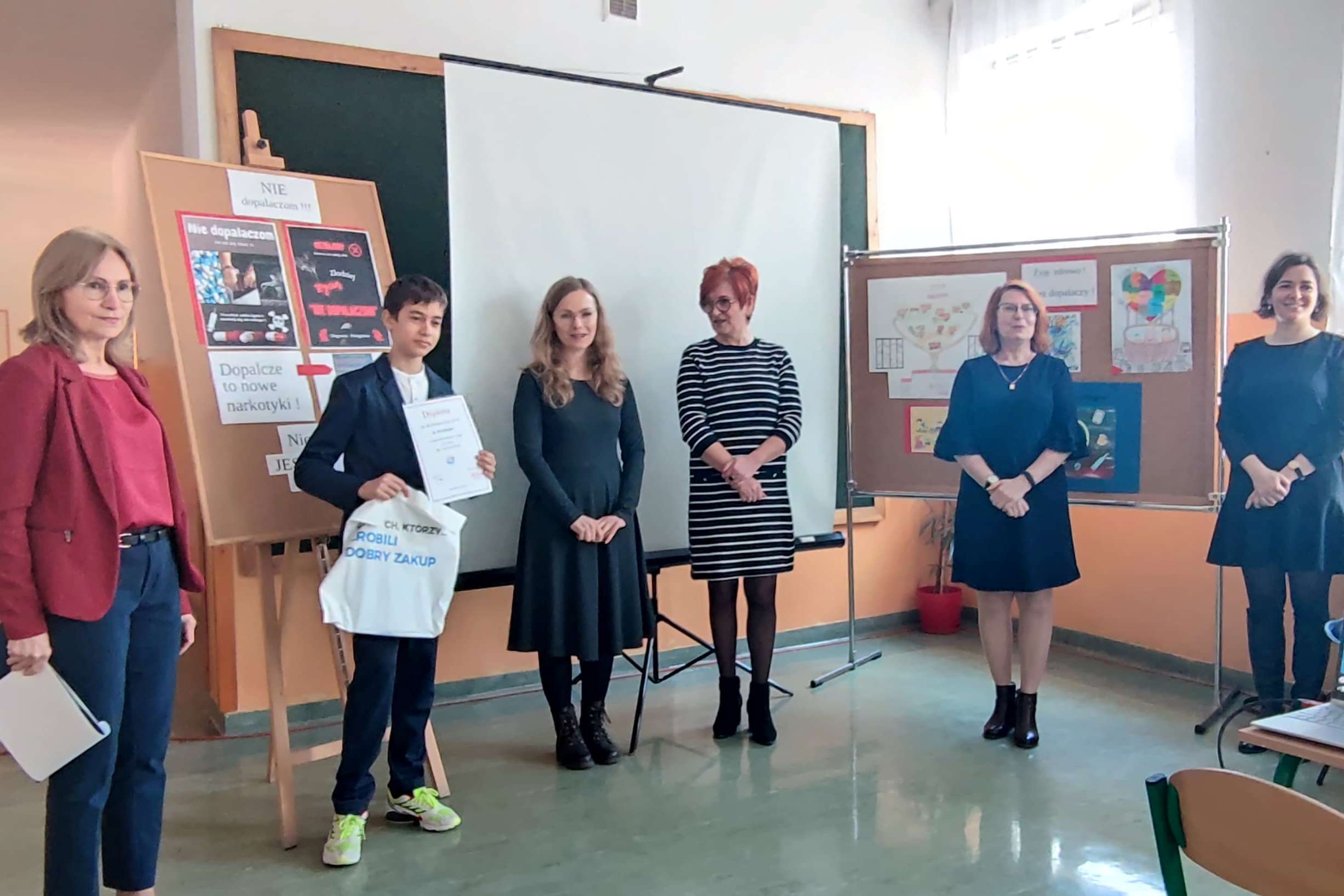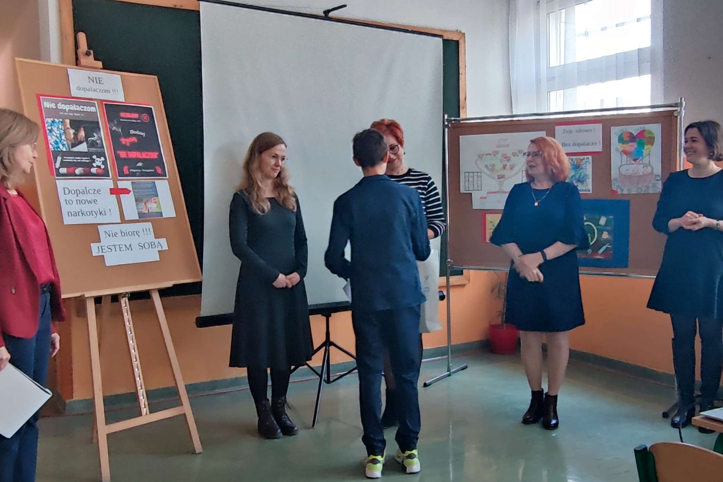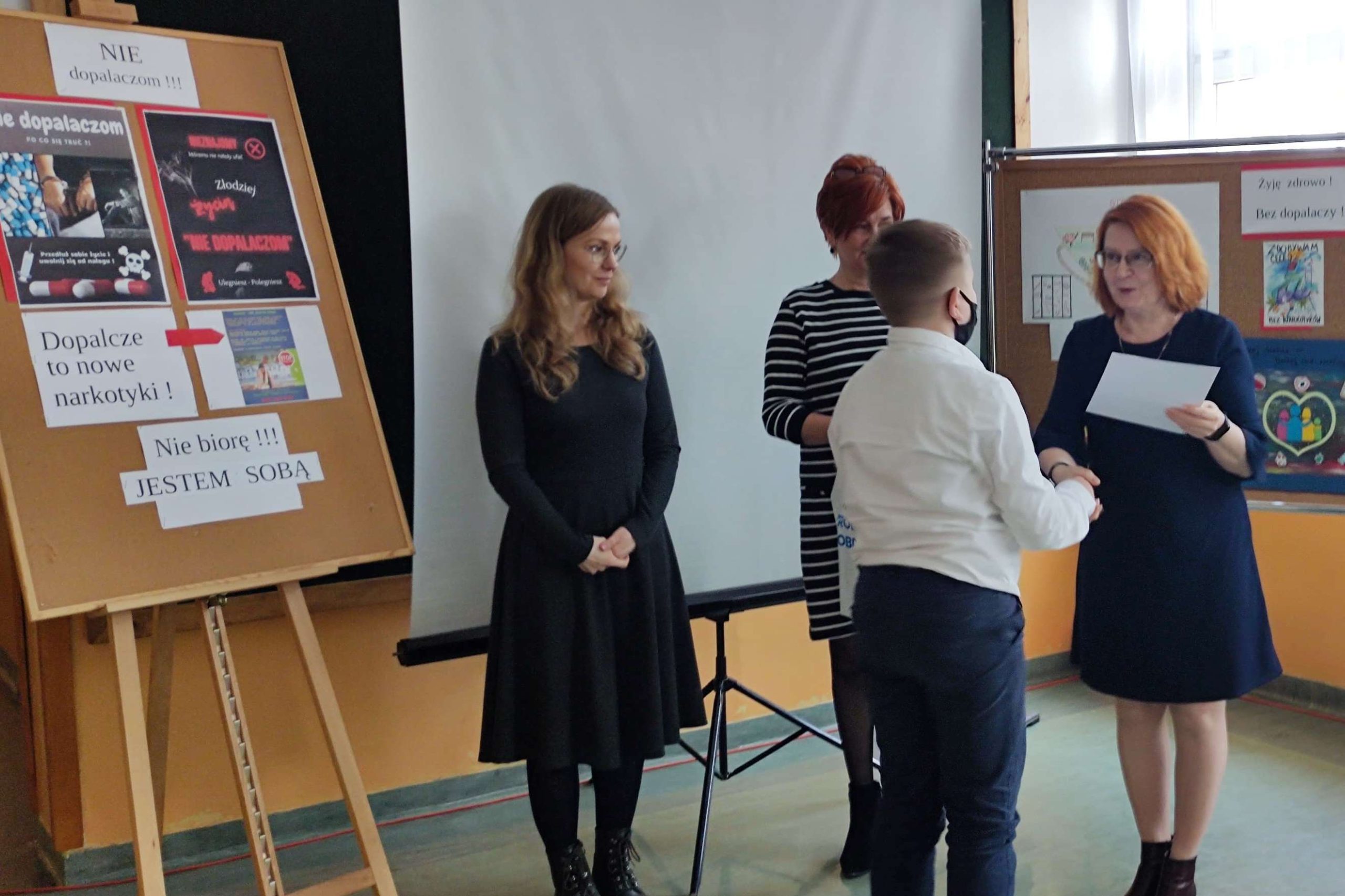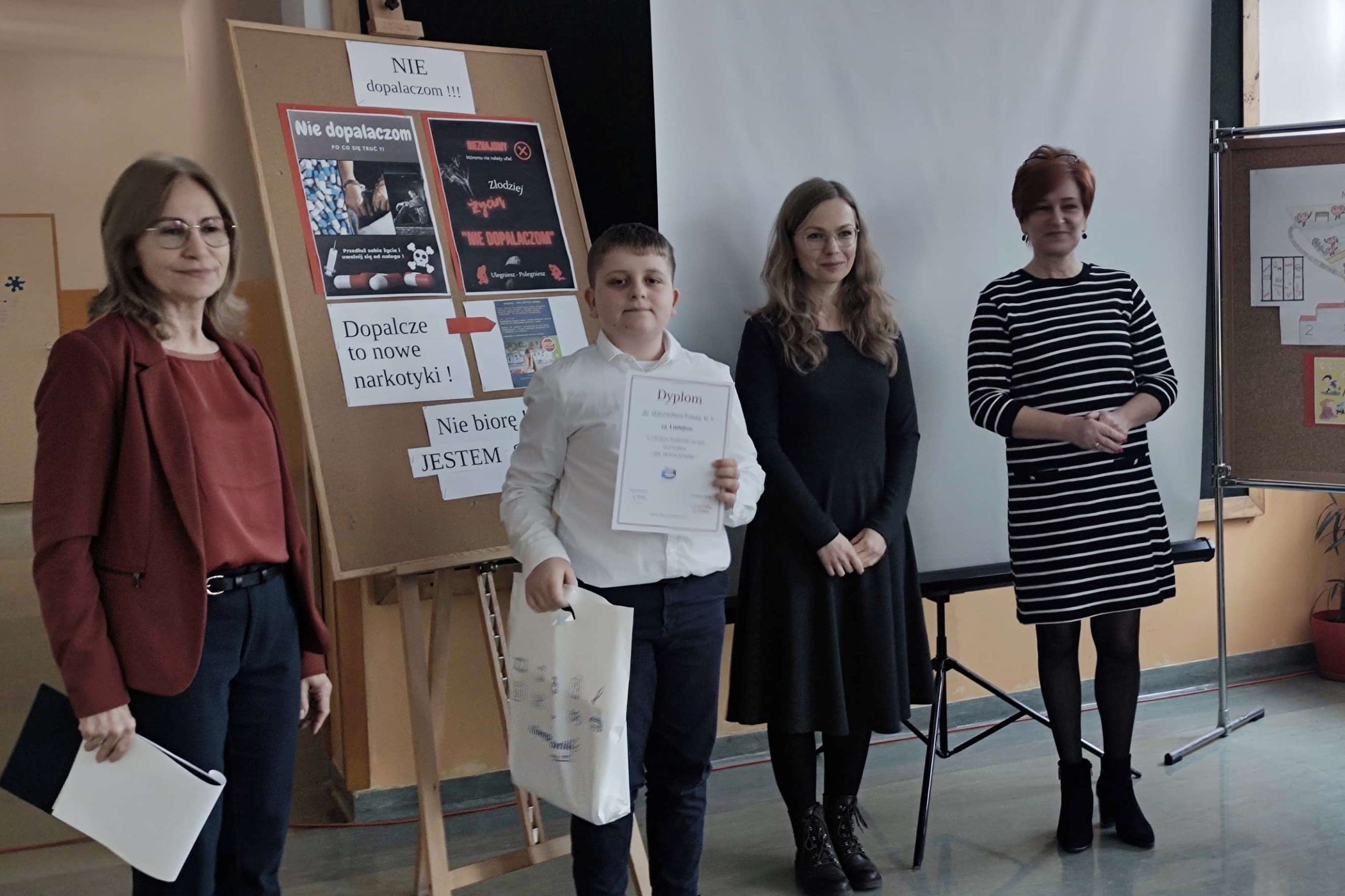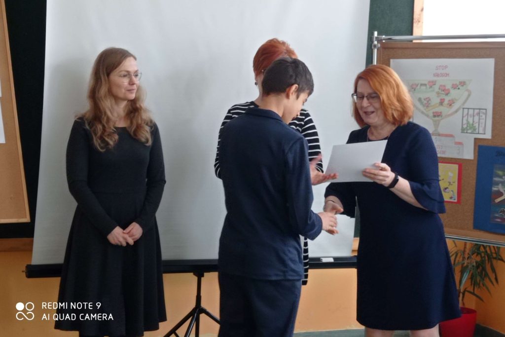 Pretekstem do spotkania był konkurs pod hasłem ”NIE dopalaczom!” z wykorzystaniem technologii informatycznych, zorganizowany przez nauczycielkę informatyki p. Gabrielę Ciasnochę przy współpracy z pedagogiem szkolnym.