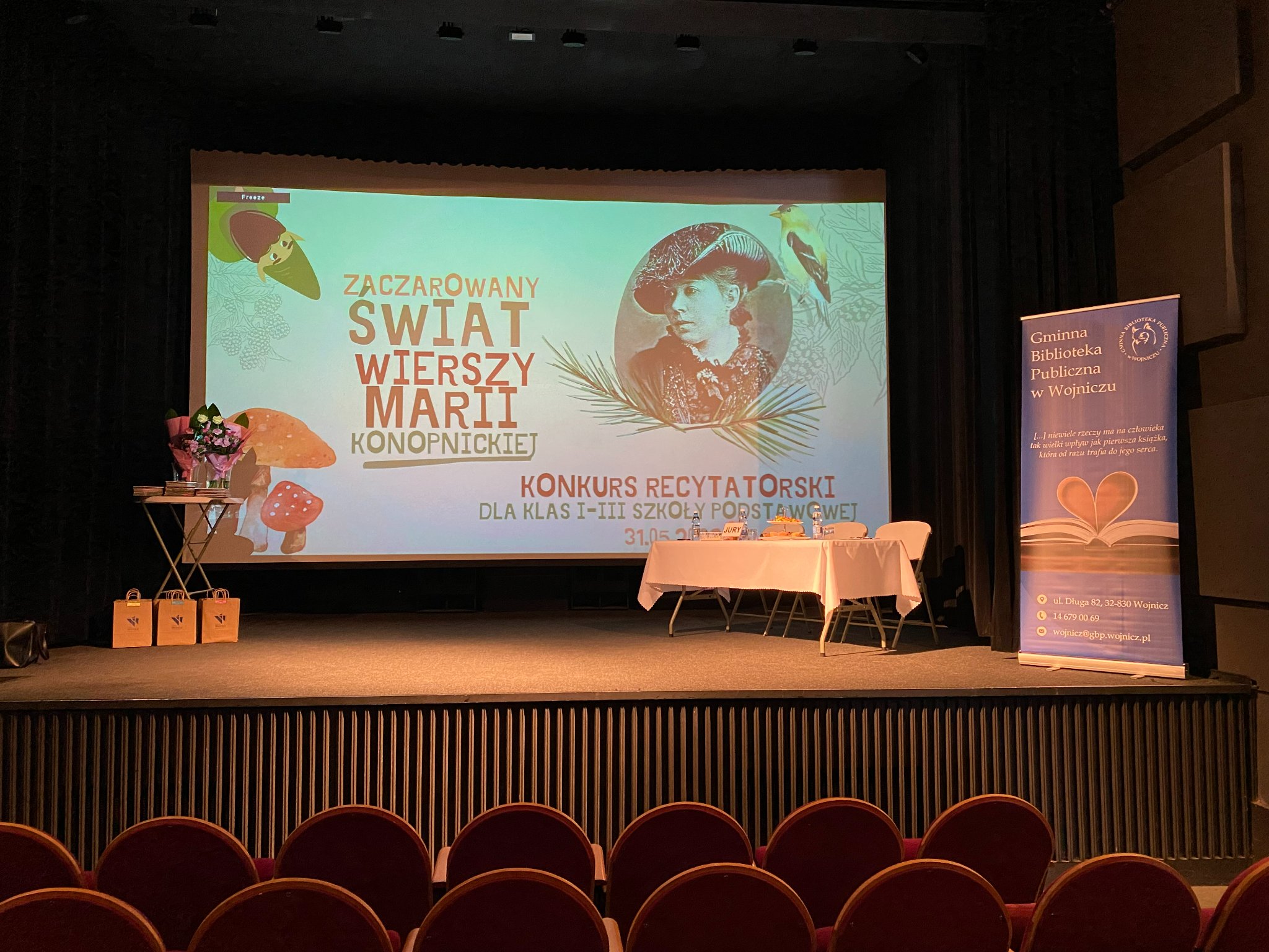 Pomysłodawczynią wydarzenia była kierownik GBP w Wojniczu – pani Marta Chemłowska. Konkurs nosił nazwę „Zaczarowany świat wierszy Marii Konopnickiej” nie bez powodu. W tym roku obchodzimy 180 rocznicę urodzin poetki, a dodatkowo rok 2022 został ustanowiony przez Sejm RP Rokiem Marii Konopnickiej. Honorowy patronat nad tym wydarzeniem objął Burmistrz Wojnicza Tadeusz Bąk, który był fundatorem nagród. Ponadto każdy z uczestników konkursu otrzymał dyplom z wyróżnieniem oraz książkę ufundowaną przez Gminną Bibliotekę Publiczną w Wojniczu.