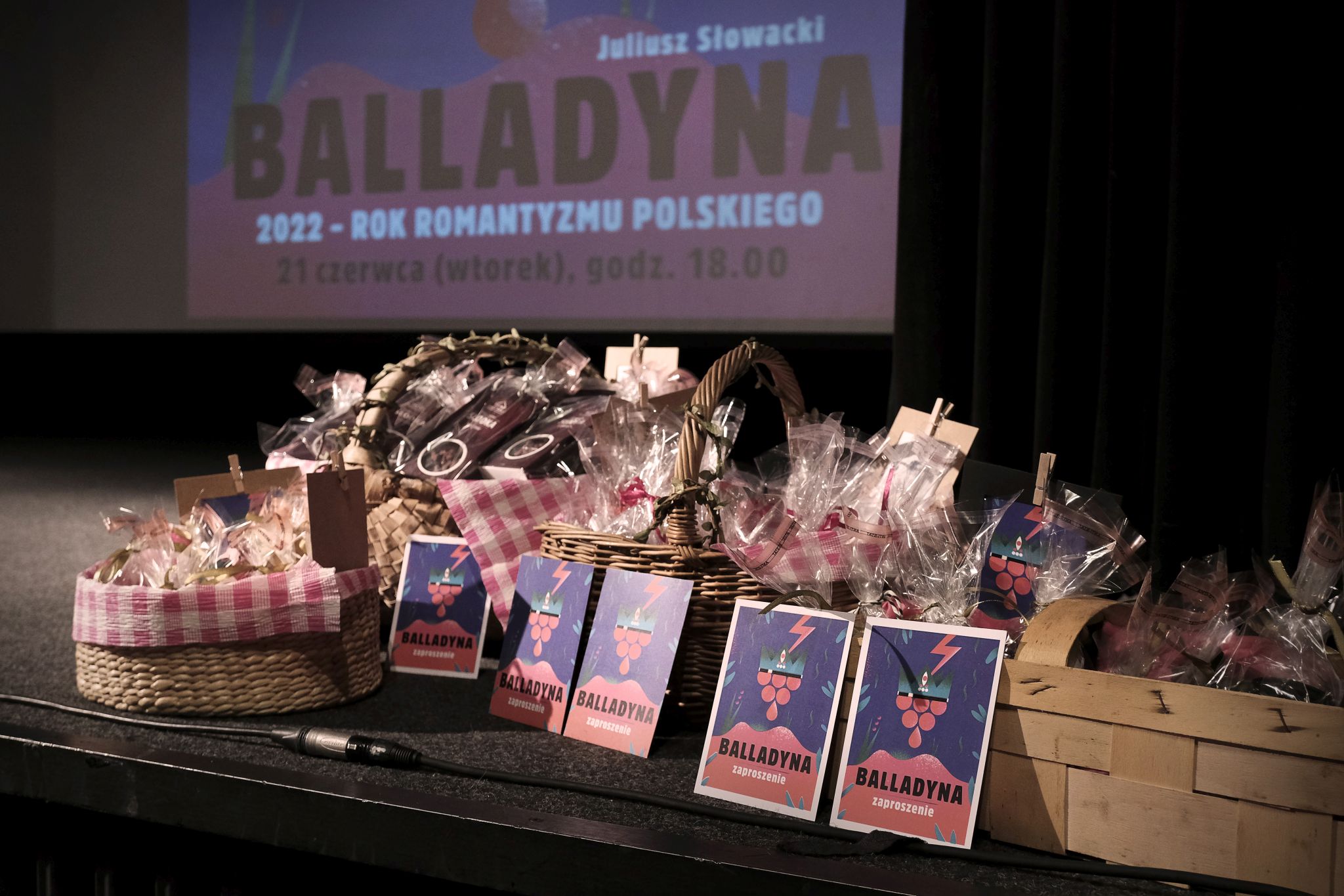 Spektakl przygotowano w ramach obchodów Roku Romantyzmu Polskiego. Poprzedziła go pogadanka pana Pawła Sroki na temat właściwości odżywczych i … literackich malin – jednego z ważniejszych motywów sztuki. Warto nadmienić, że każdy widz otrzymał od organizatorów słodki upominek. Fundatorami miodowych czy czekoladowych delicji (najczęściej malinowych) były firmy: Bacówka. Towary Tradycyjne z Rajbrotu, Miody z Mazur ( właściciel Krzysztof Nojszewski) oraz Miody od Kulmy (Dolina Cybiny w Wielkopolsce). Nadmienić należy, że można było także skosztować świeżych malin. Natomiast młodzi aktorzy zostali przez panią Martę Chemłowską, dyrektor Gminnej Biblioteki Publicznej obdarowani egzemplarzami „Balladyny”.