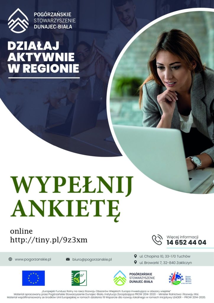 Poniżej znajduje się link do krótkiej ankiety – jej wypełnienie nie zajmie Ci wiele czasu, a nam pozwoli lepiej zaplanować rozwój Pogórzańskiego Stowarzyszenia Dunajec-Biała i gmin leżących na tym terenie.