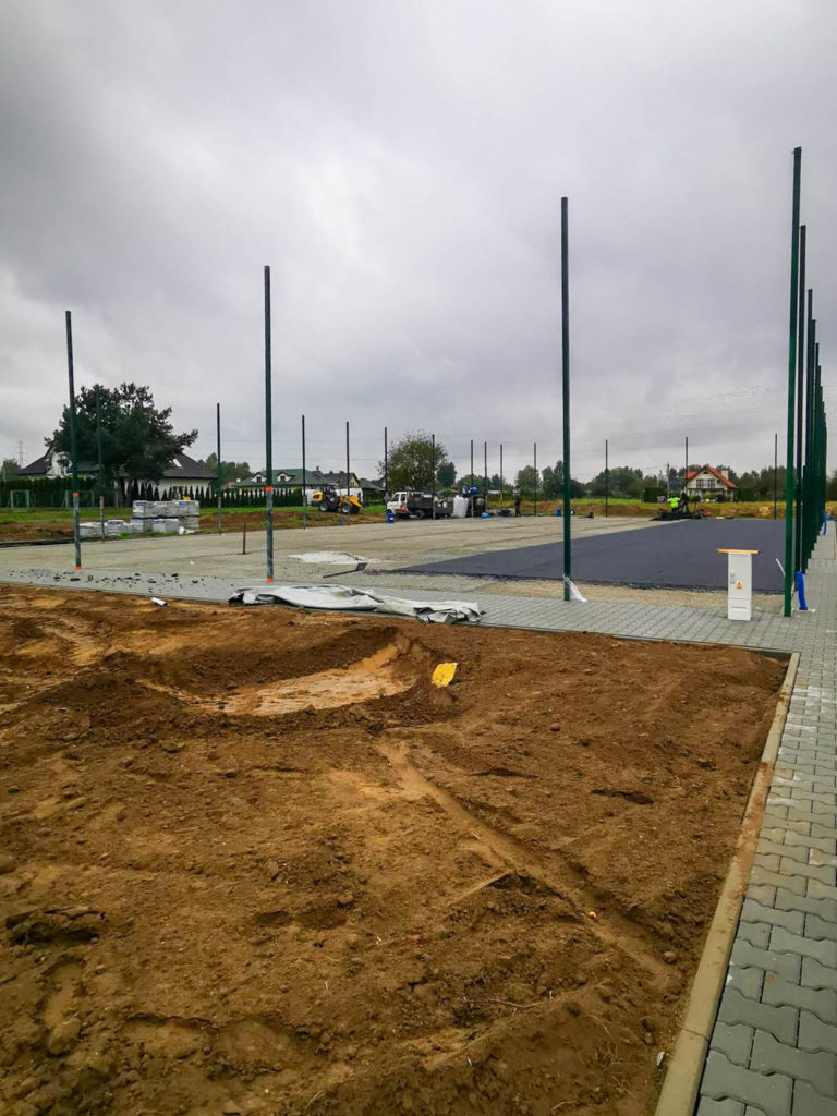 Do tej pory wykonana została m. in: instalacja drenażu oraz podbudowa boiska. Na terenie obiektu układana jest również kostka brukowa. Kolejnym etapem prac będzie wykonanie nawierzchni boiska, oświetlenia oraz ogrodzenia.