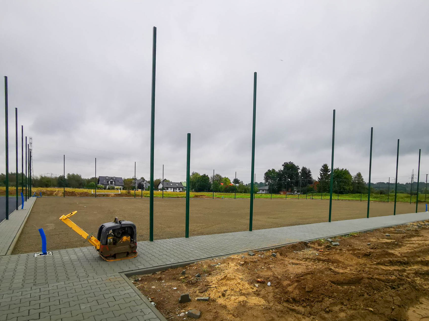 Do tej pory wykonana została m. in: instalacja drenażu oraz podbudowa boiska. Na terenie obiektu układana jest również kostka brukowa. Kolejnym etapem prac będzie wykonanie nawierzchni boiska, oświetlenia oraz ogrodzenia.