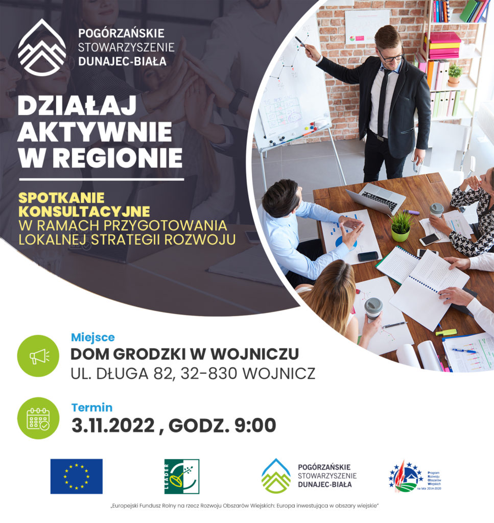 Spotkania konsultacyjne odbędą się w czwartek i piątek 3 oraz 4 listopada br. we wszystkich gminach tworzących nasza Lokalna Grupę Działania. Poniżej znajdziecie Państwo szczegółowy harmonogram spotkań wraz z miejscem spotkania, jego datą i godziną.