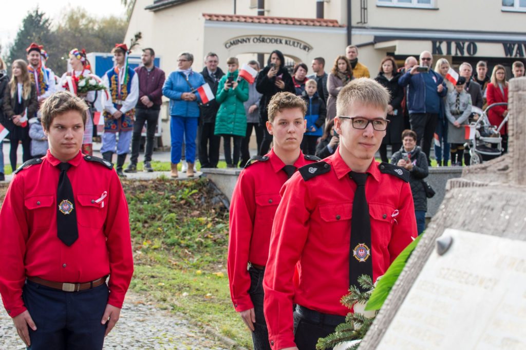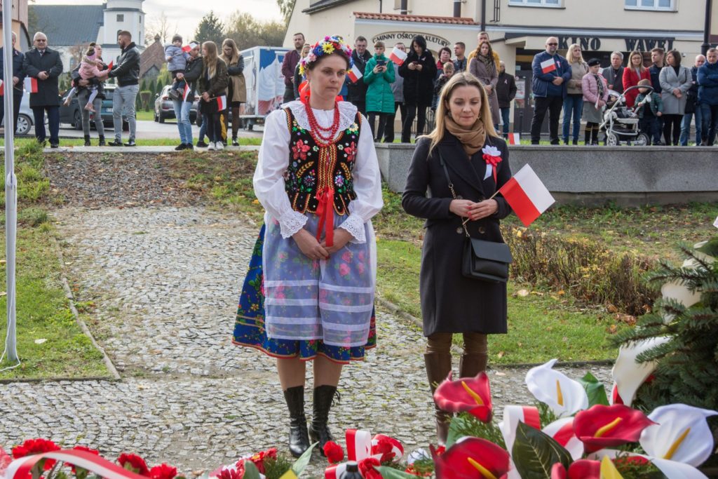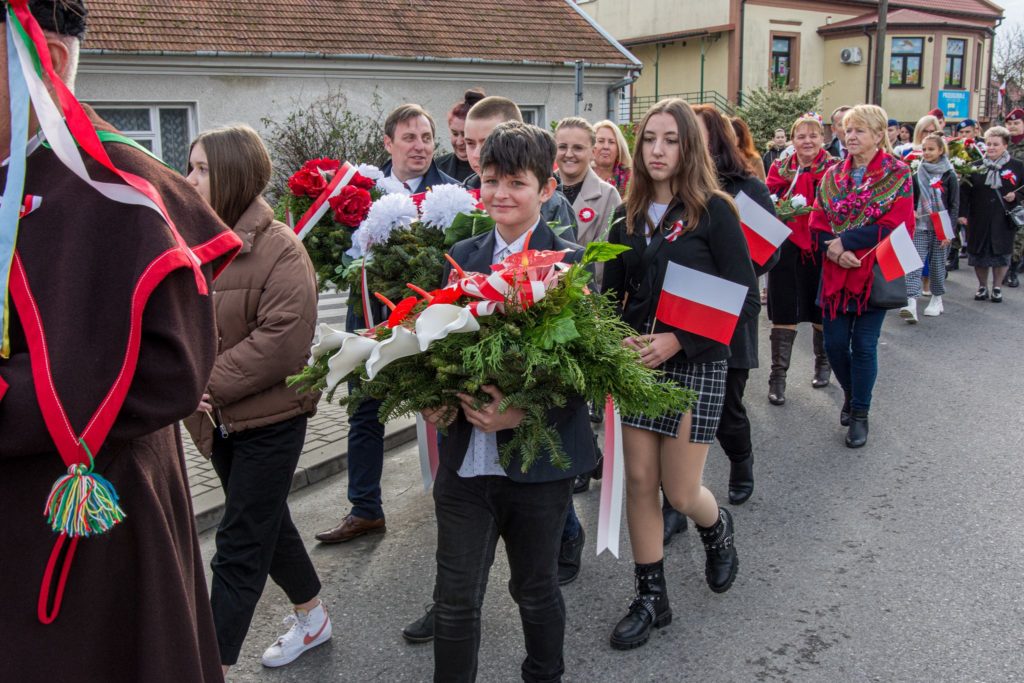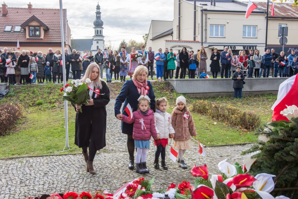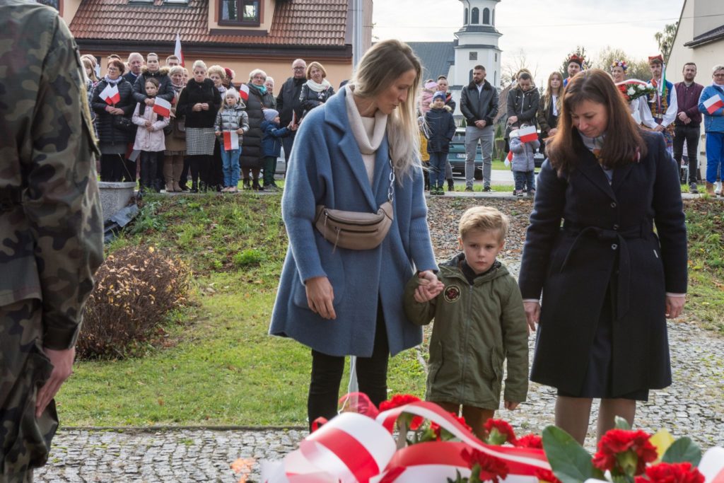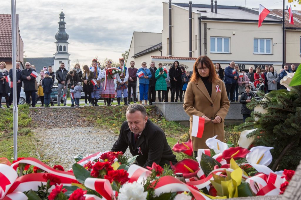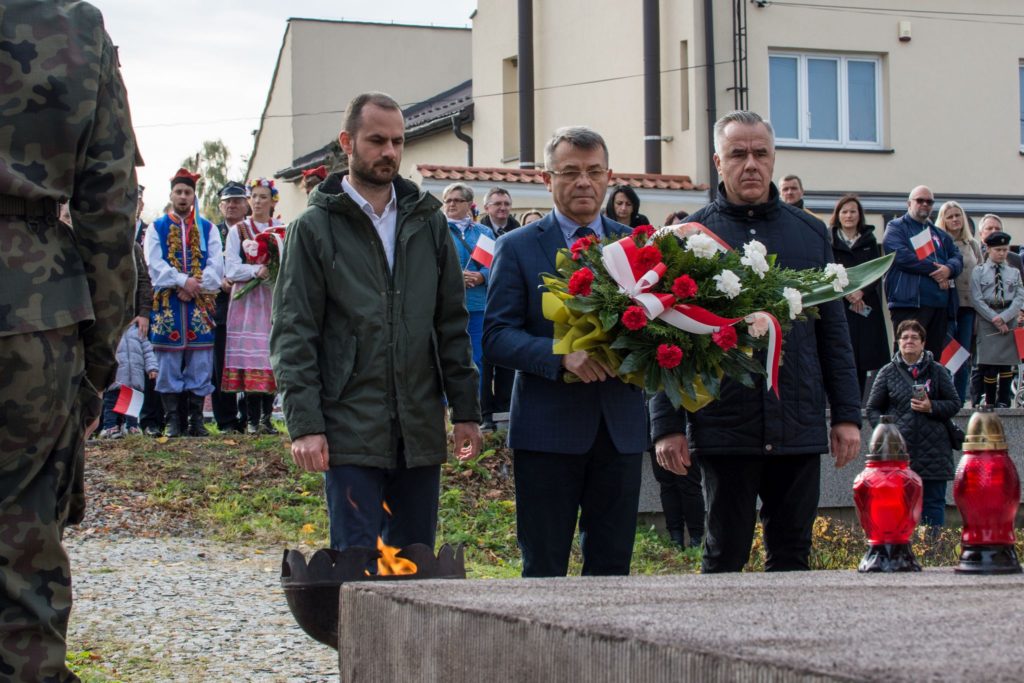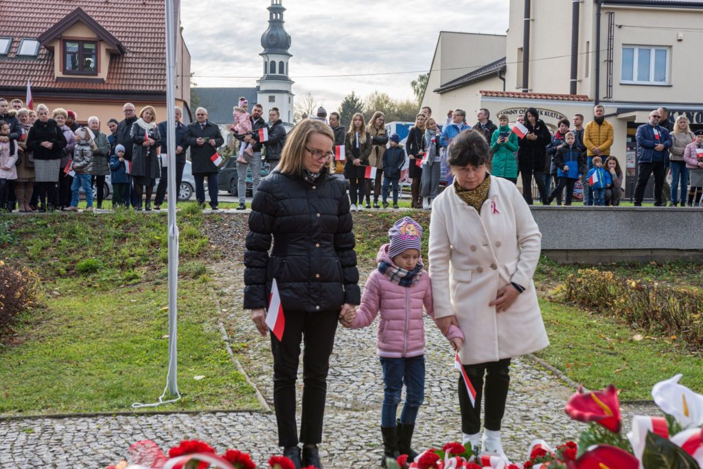 Kończąc przemówienie burmistrz podziękował zebranym za przybycie na uroczystość, a organizatorom, którymi był gminny za przygotowanie gminnych obchodów Święta Niepodległości. Następnie pod pomnikiem wszystkie delegacje złożyły wiązanki kwiatów oraz zapaliły znicze.