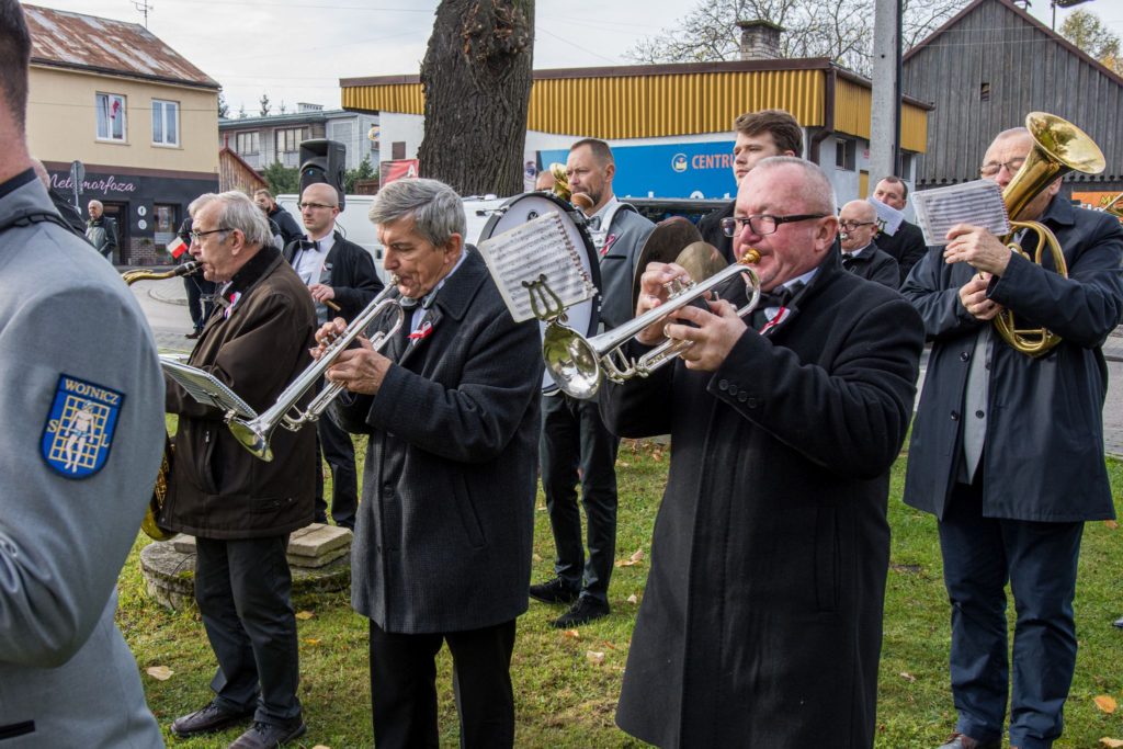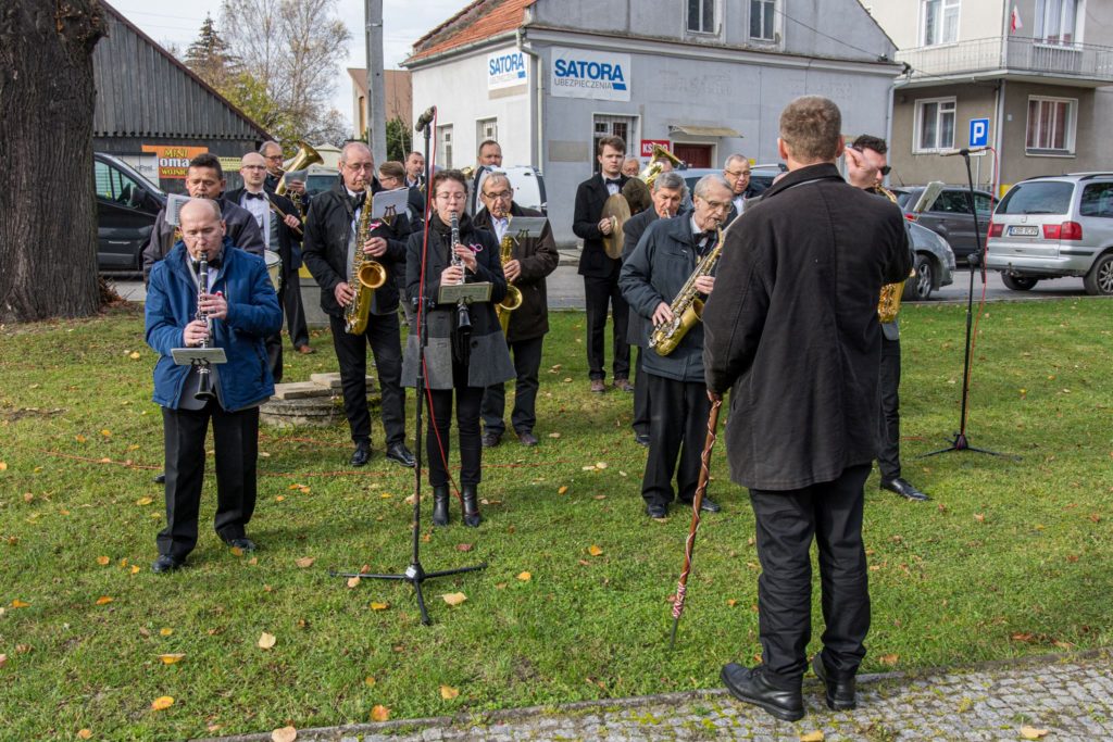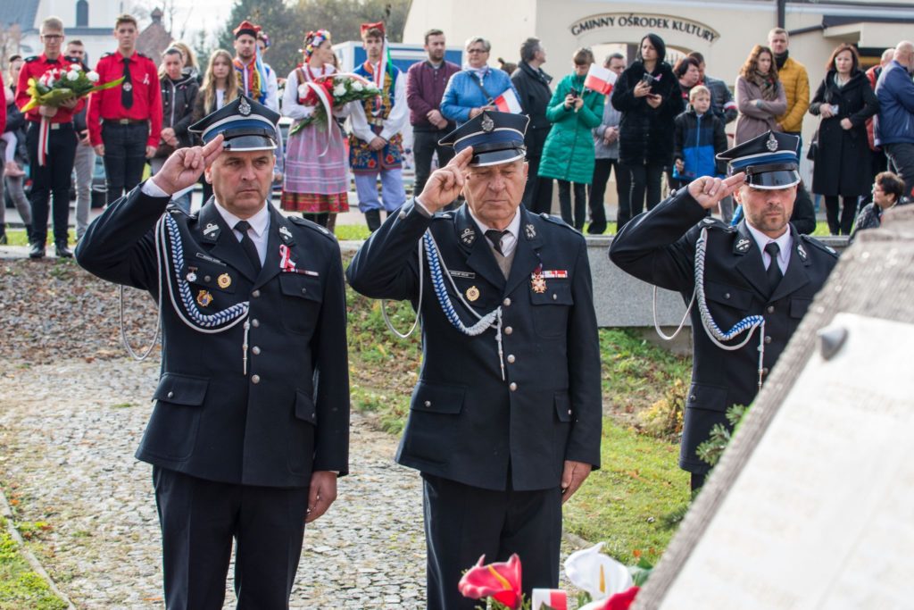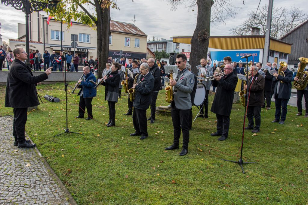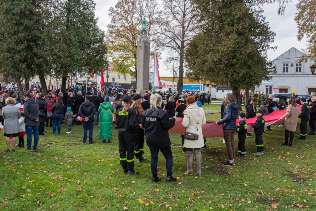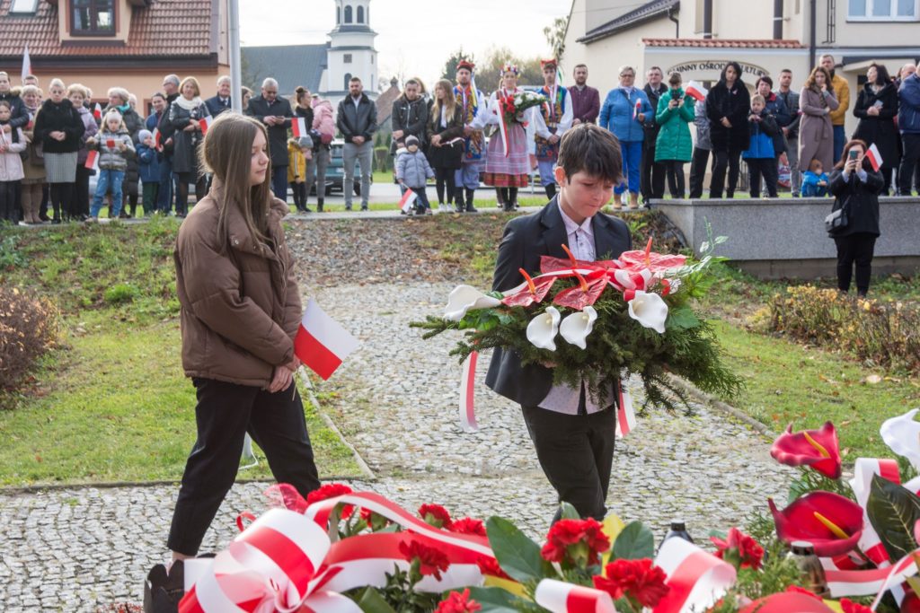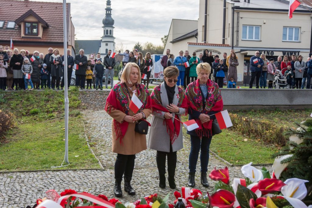 Kończąc przemówienie burmistrz podziękował zebranym za przybycie na uroczystość, a organizatorom, którymi był gminny za przygotowanie gminnych obchodów Święta Niepodległości. Następnie pod pomnikiem wszystkie delegacje złożyły wiązanki kwiatów oraz zapaliły znicze.