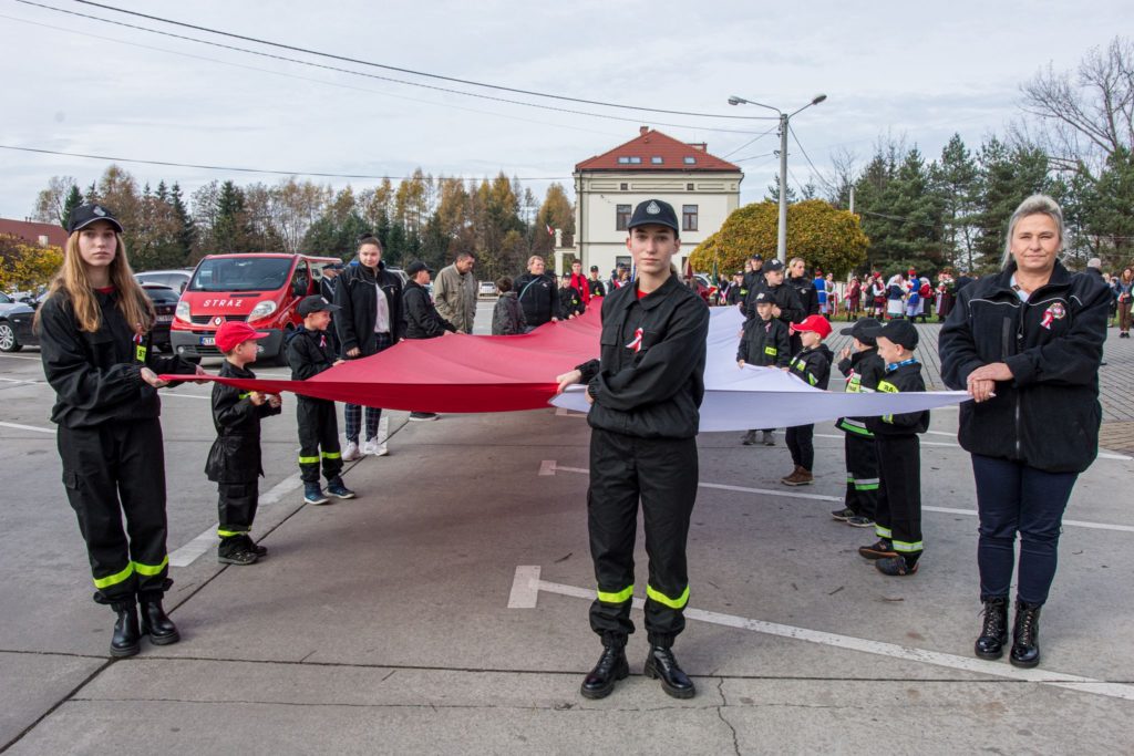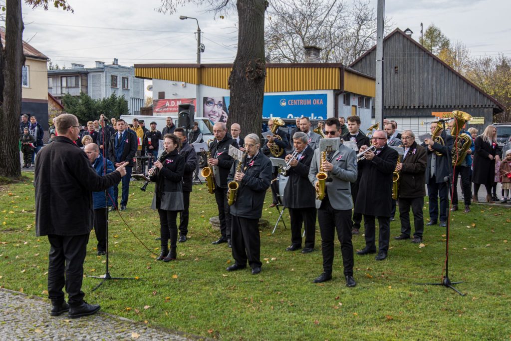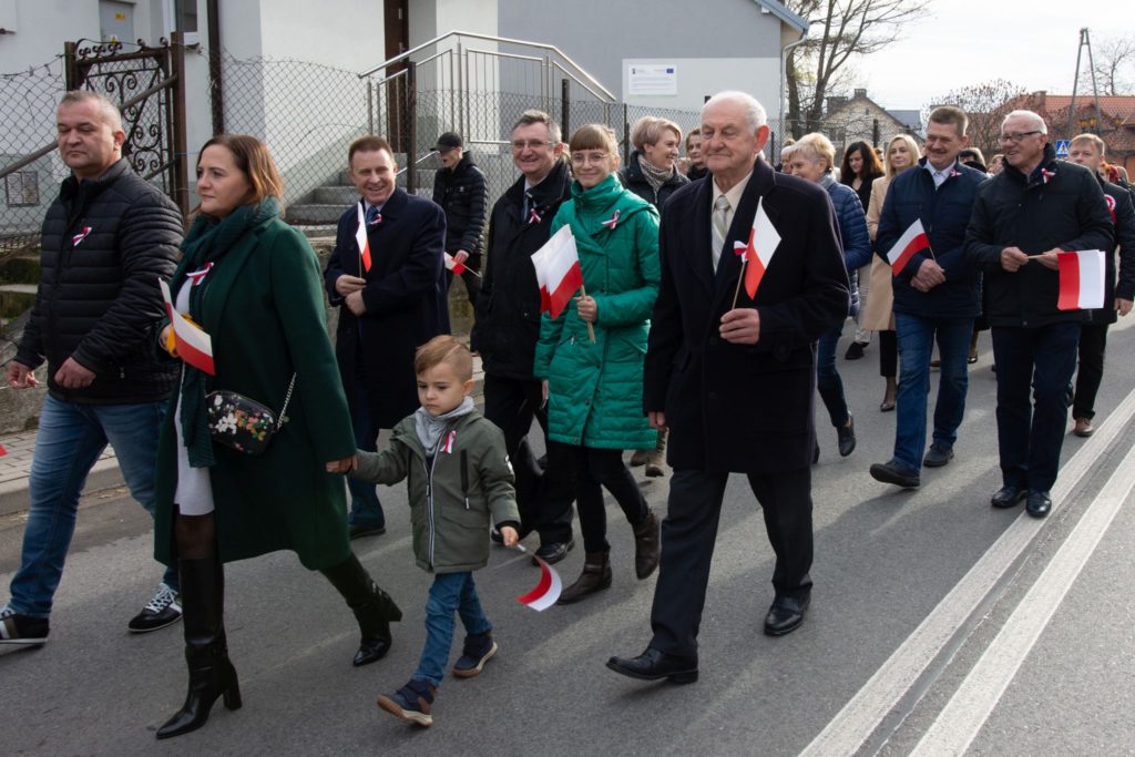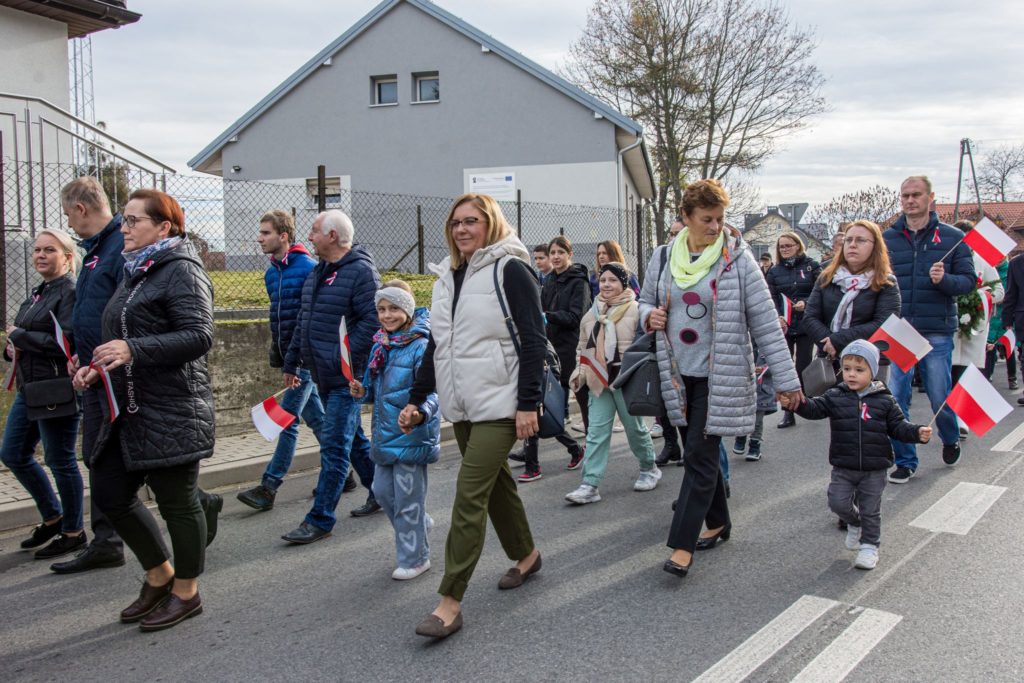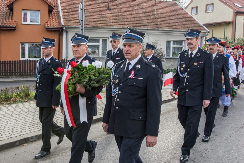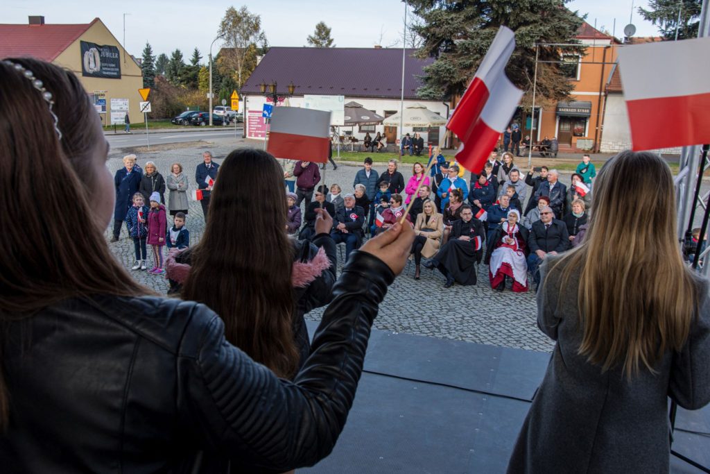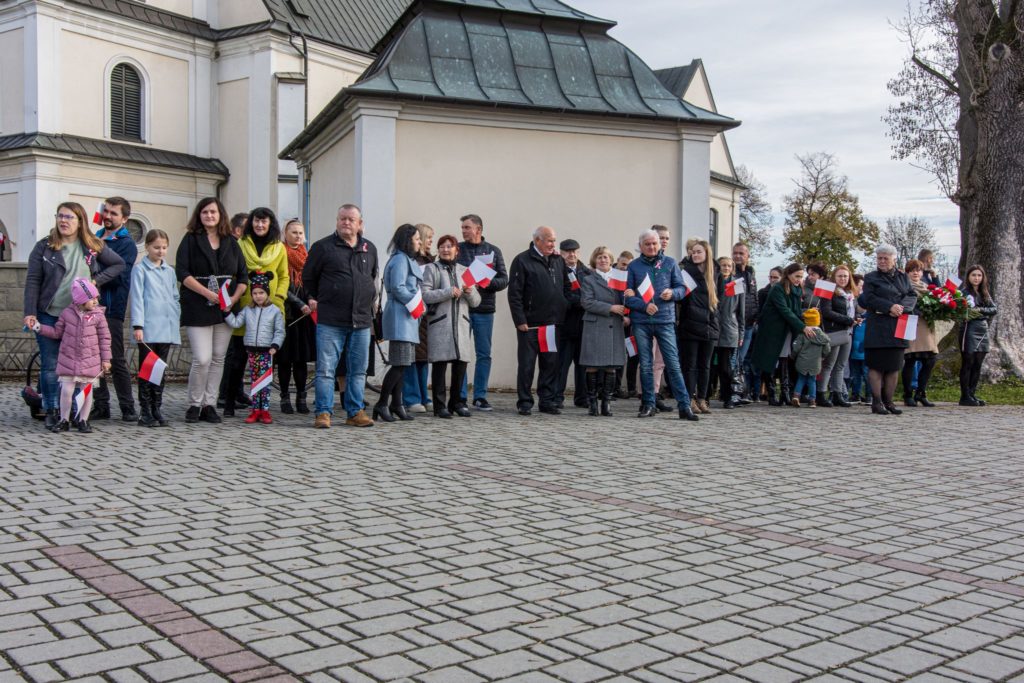 Kończąc przemówienie burmistrz podziękował zebranym za przybycie na uroczystość, a organizatorom, którymi był gminny za przygotowanie gminnych obchodów Święta Niepodległości. Następnie pod pomnikiem wszystkie delegacje złożyły wiązanki kwiatów oraz zapaliły znicze.