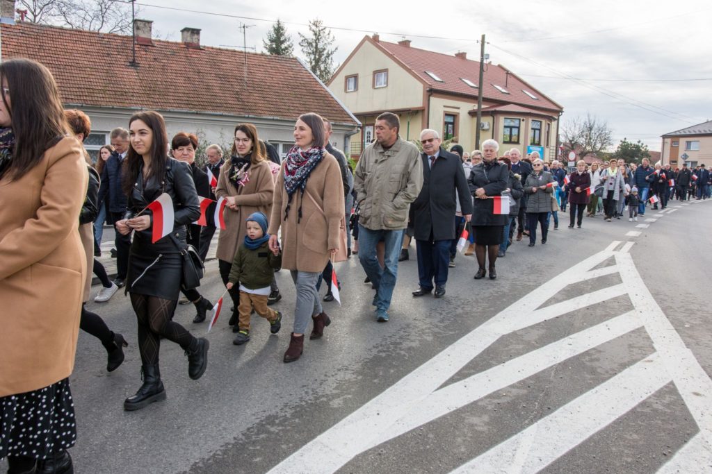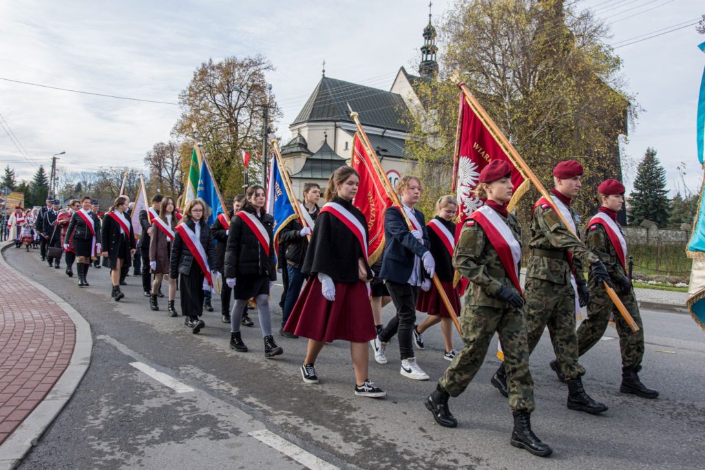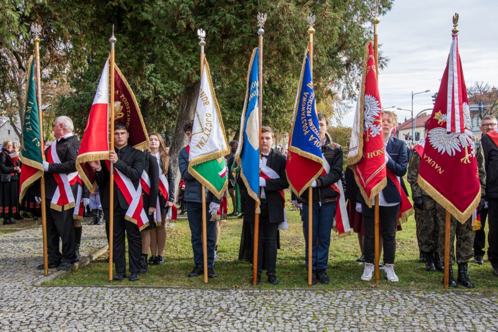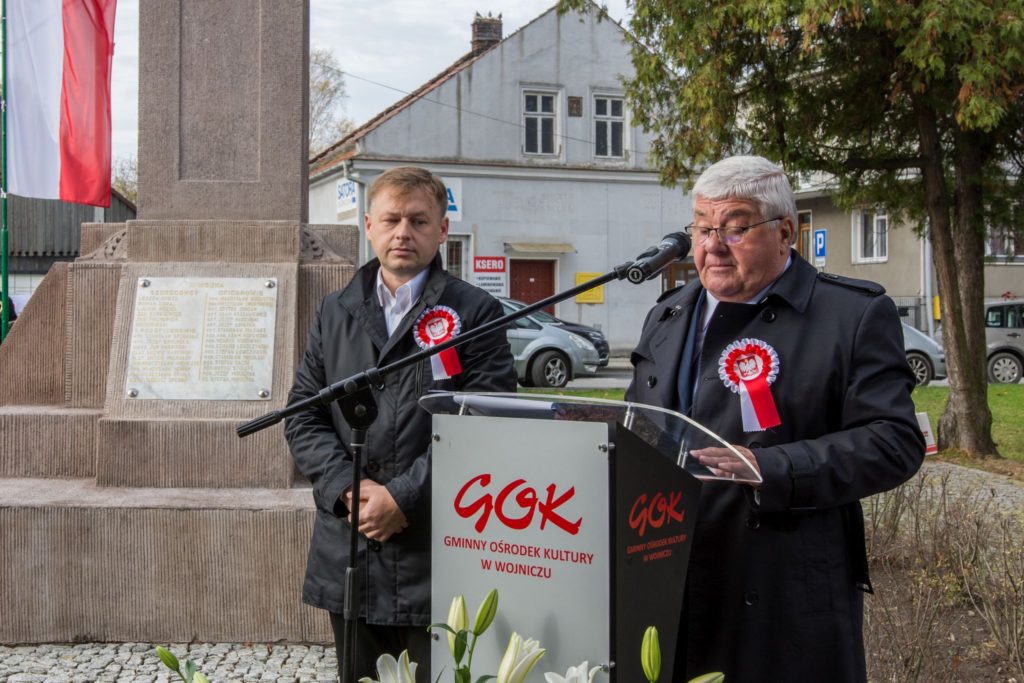 Gminne obchody tego ważnego święta jak co roku zorganizowane zostały przy Pomniku Niepodległości na wojnickich plantach. Uroczystość rozpoczęła msza święta w intencji Ojczyzny, w Kolegiacie Wojnickiej, którą odprawił proboszcz parafii Jan Gębarowski wraz z księdzem Sebastianem Musiałem. Po zakończeniu liturgii poprowadzony został orszak, przez poczty sztandarowe szkół i Ochotniczych Straży Pożarnych, który przemaszerował pod Pomnik Niepodległości, gdzie dyrektor GOK-u Jarosław Bujak powitała zebranych gości na czele ze współgospodarzem uroczystości Burmistrzem Wojnicza Tadeuszem Bąkiem. Swoją obecnością, w tym ważnym dniu, zaszczycili Radni Gminy Wojnicz na czele z przewodniczącą Romanem Chamioło, księża, przedstawiciele straży pożarnej, pracownicy samorządowi, sołtysi, dyrektorzy szkół, nauczyciele i uczniowie, przedstawiciele gminnych organizacji i stowarzyszeń oraz mieszkańcy gminy.