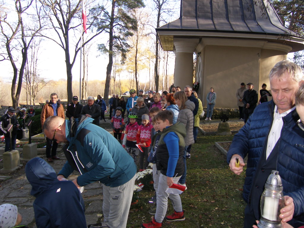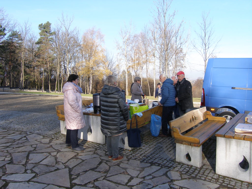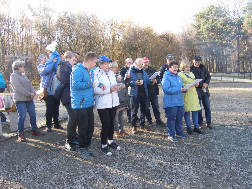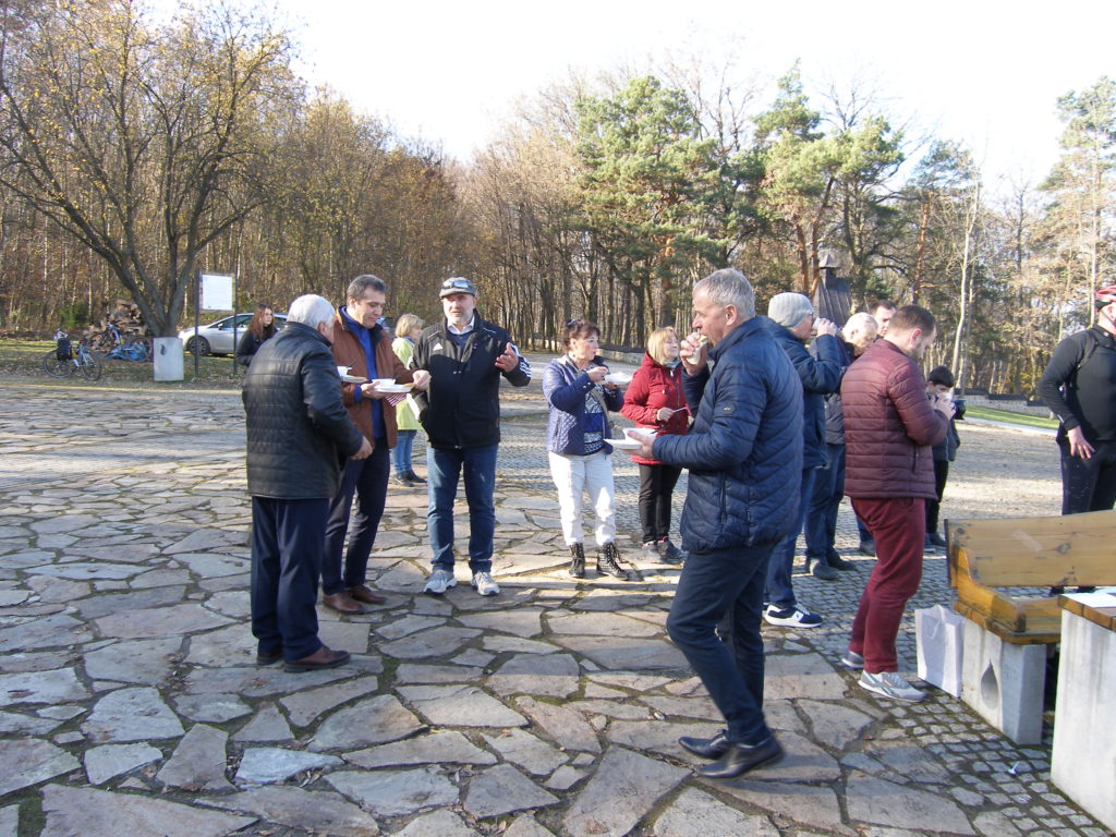 Druga część spotkania odbyła się na parkingu obok cmentarza. Uczestnicy otrzymali z rąk przewodniczącego Rady Miejskiej w Wojniczu Romana Chamioły pamiątkowe medale, a Towarzystwo Przyjaciół Ziemi Wojnickiej zorganizowało poczęstunek. Było smacznie i cieplutko gdyż pogoda, jak na tę porę roku nadzwyczaj nam dopisała. Żurek przygotowany przez Joannę Aloksę-Duman i Antonię Duman smakował wybornie! Spotkanie zakończyliśmy wspólnym śpiewaniem pieśni patriotycznych.