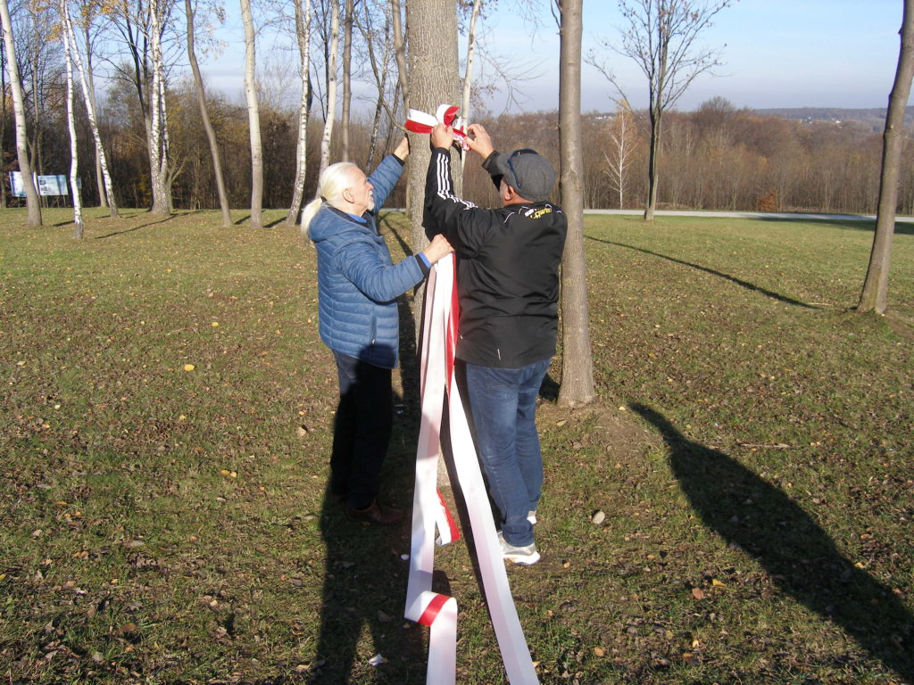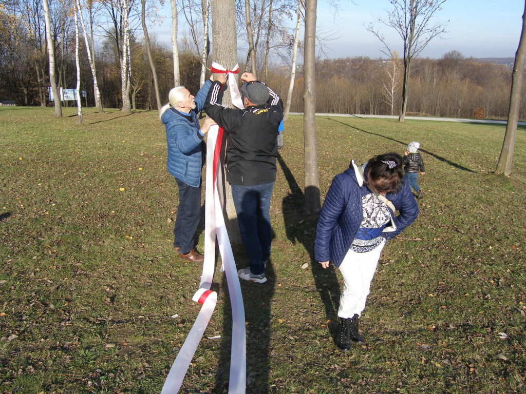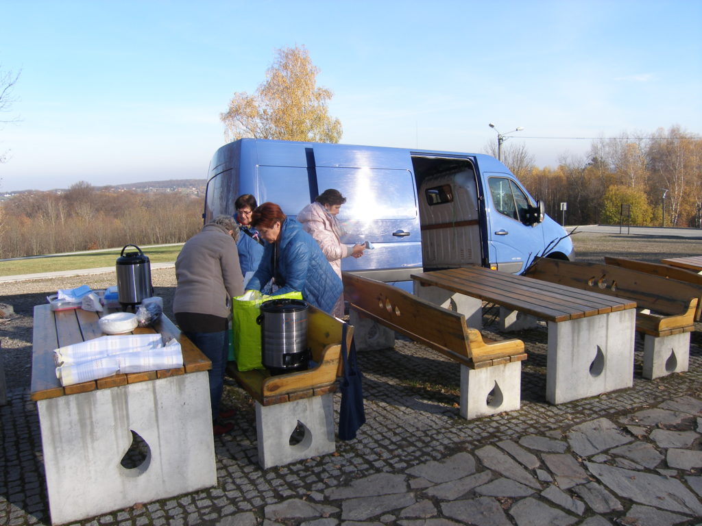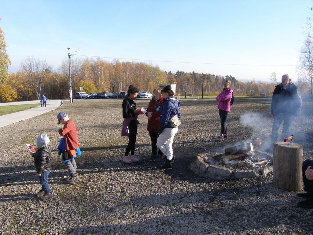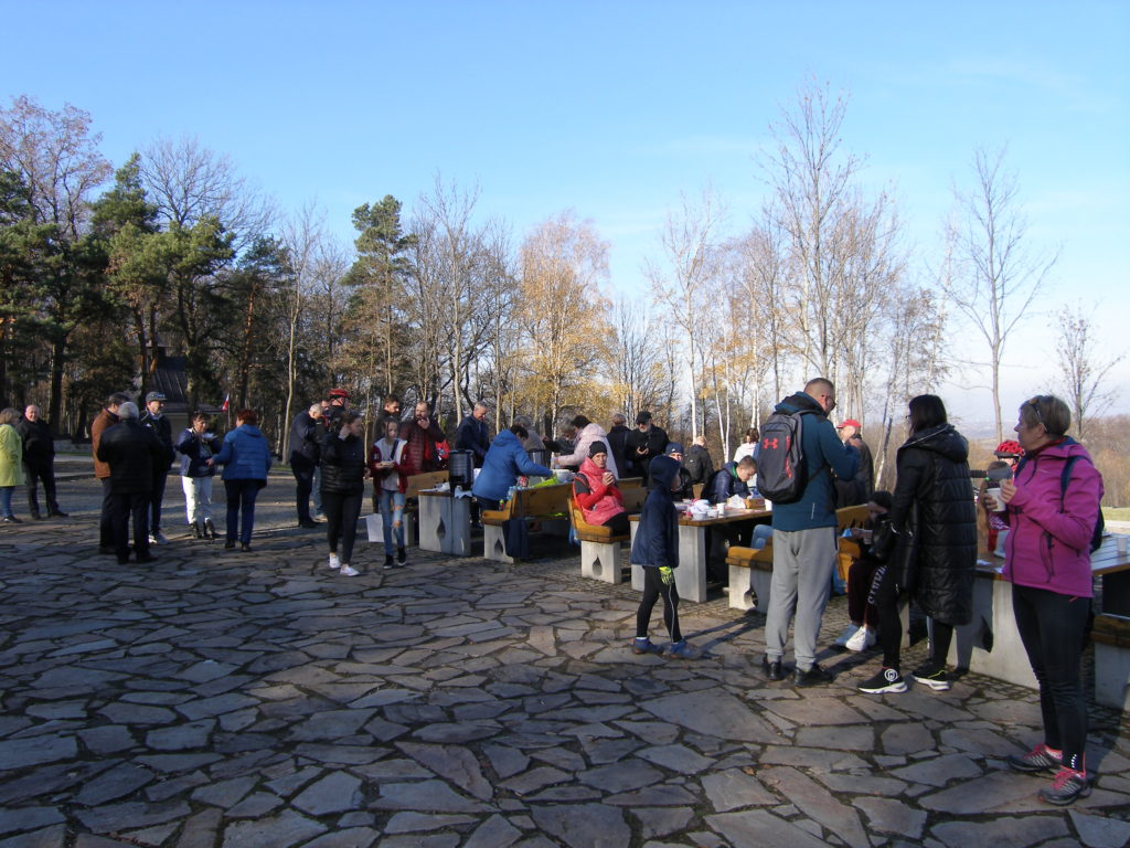 Druga część spotkania odbyła się na parkingu obok cmentarza. Uczestnicy otrzymali z rąk przewodniczącego Rady Miejskiej w Wojniczu Romana Chamioły pamiątkowe medale, a Towarzystwo Przyjaciół Ziemi Wojnickiej zorganizowało poczęstunek. Było smacznie i cieplutko gdyż pogoda, jak na tę porę roku nadzwyczaj nam dopisała. Żurek przygotowany przez Joannę Aloksę-Duman i Antonię Duman smakował wybornie! Spotkanie zakończyliśmy wspólnym śpiewaniem pieśni patriotycznych.